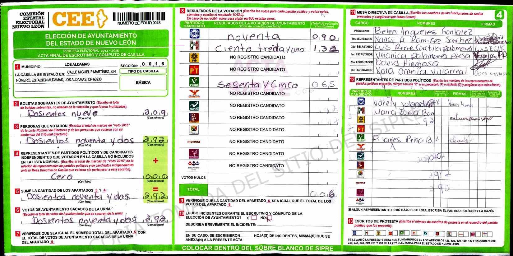 | BASICA (Mas votos de casilla 18 Básica Fusionada, 19 Básica Fusionada) | 21:55 | 90 | 131 | 65 | 0 | 286 | 501 | 57.1 | |||||||||||||||||||||||