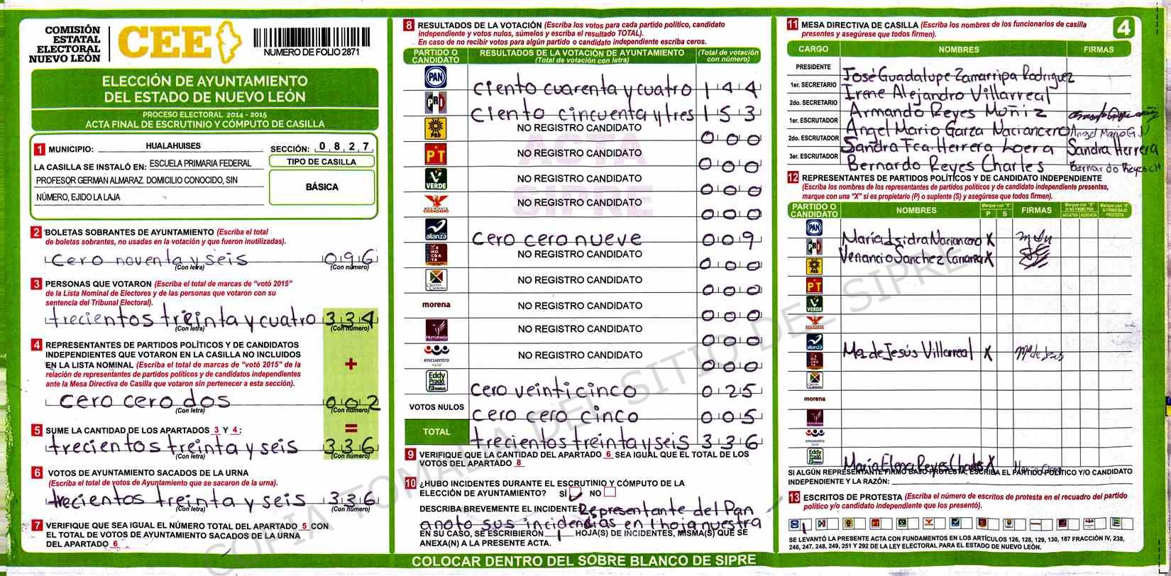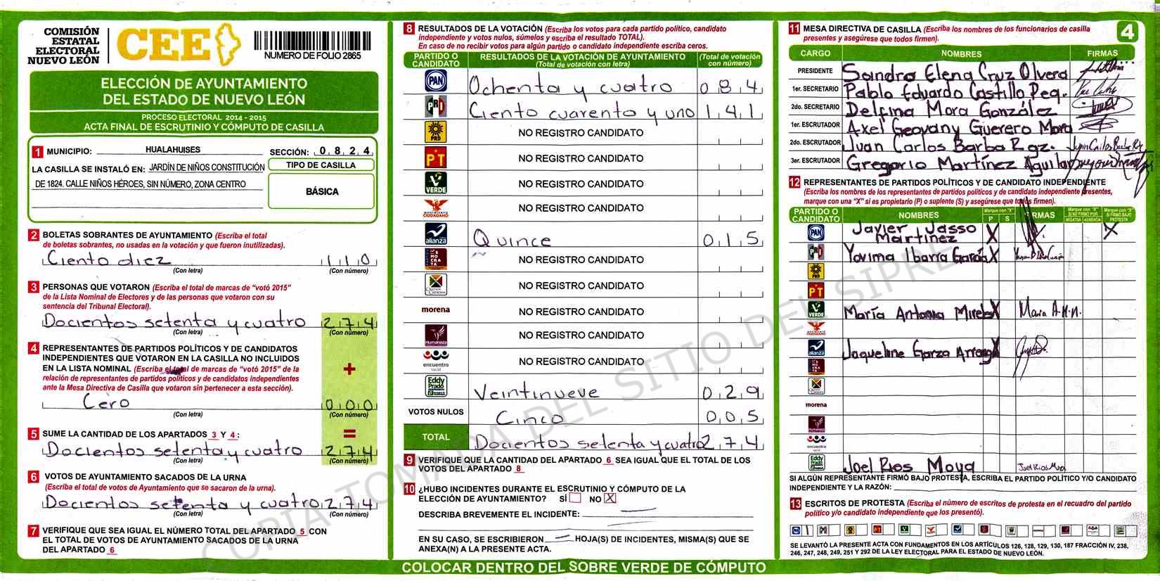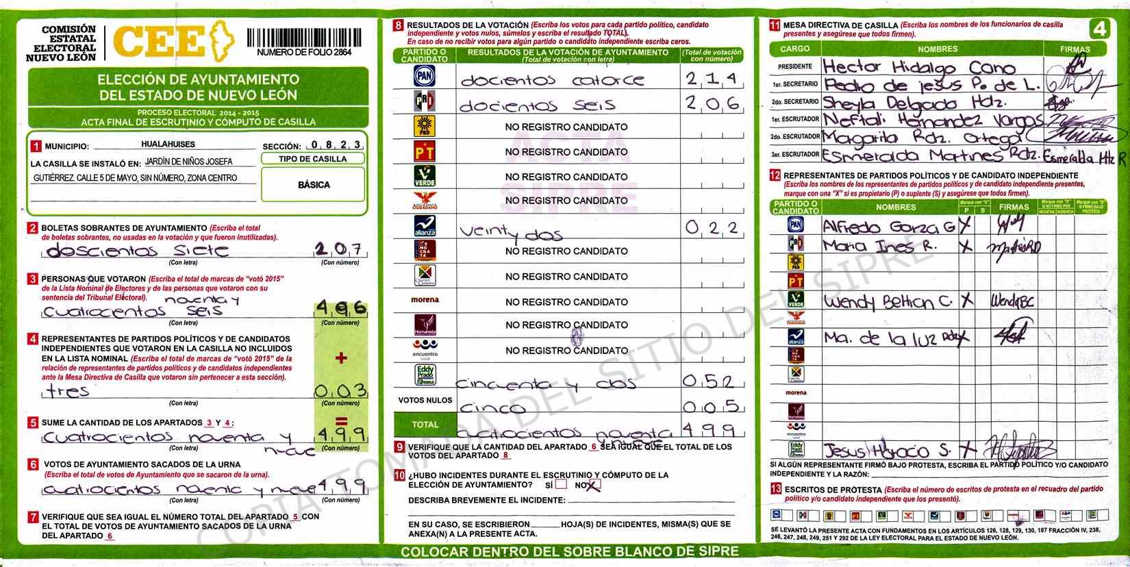 | BASICA (Mas votos de casilla 830 Básica Fusionada) | 01:51 | 184 | 227 | 33 | 53 | 6 | 503 | 781 | 64.4 | ||||||||||||||||||||||