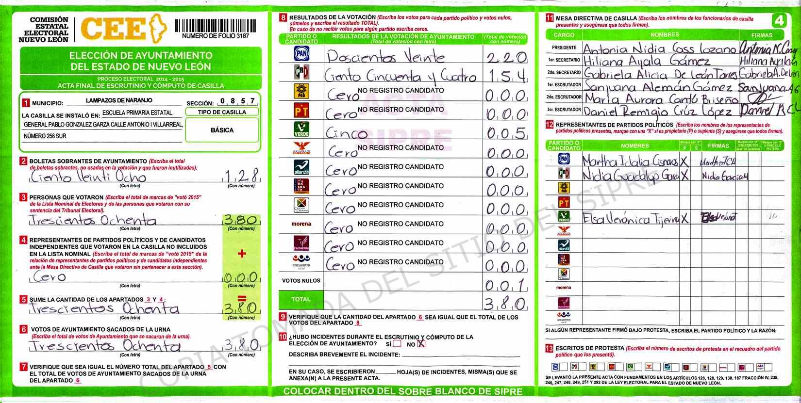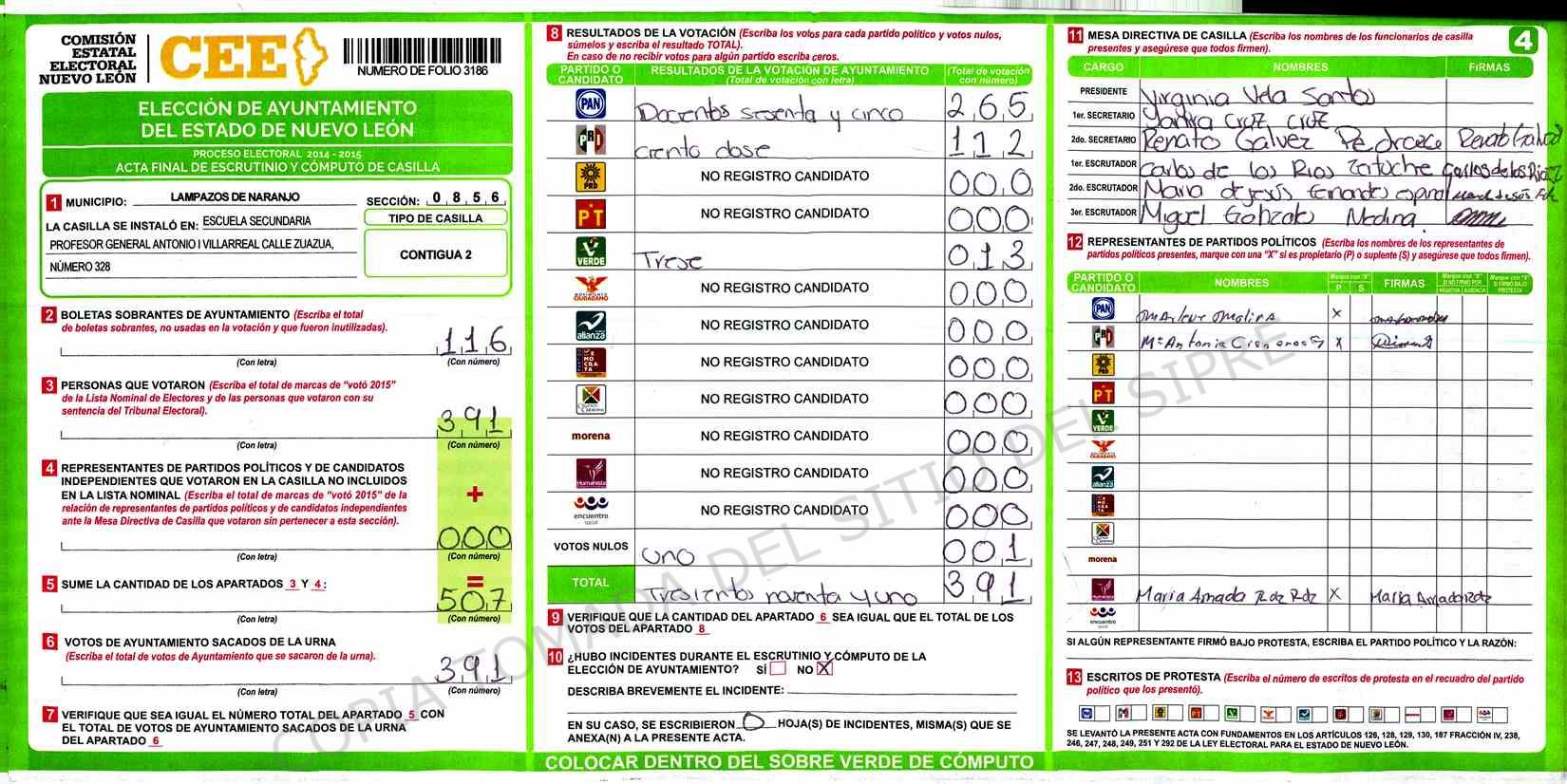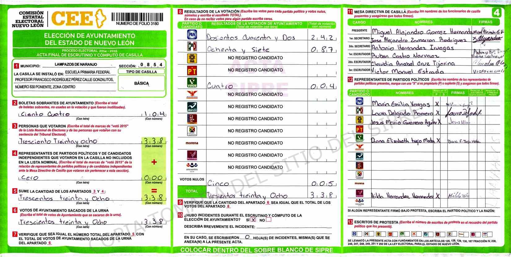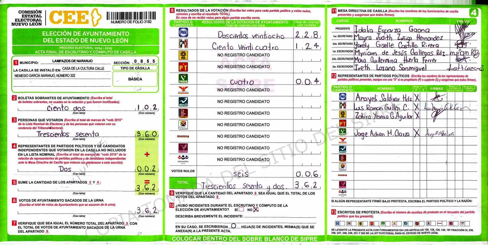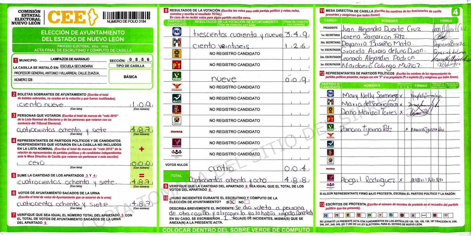 | BASICA (Mas votos de casilla 858 Básica Fusionada) | 00:08 | 349 | 126 | 9 | 4 | 488 | 628 | 77.7 | |||||||||||||||||||||||