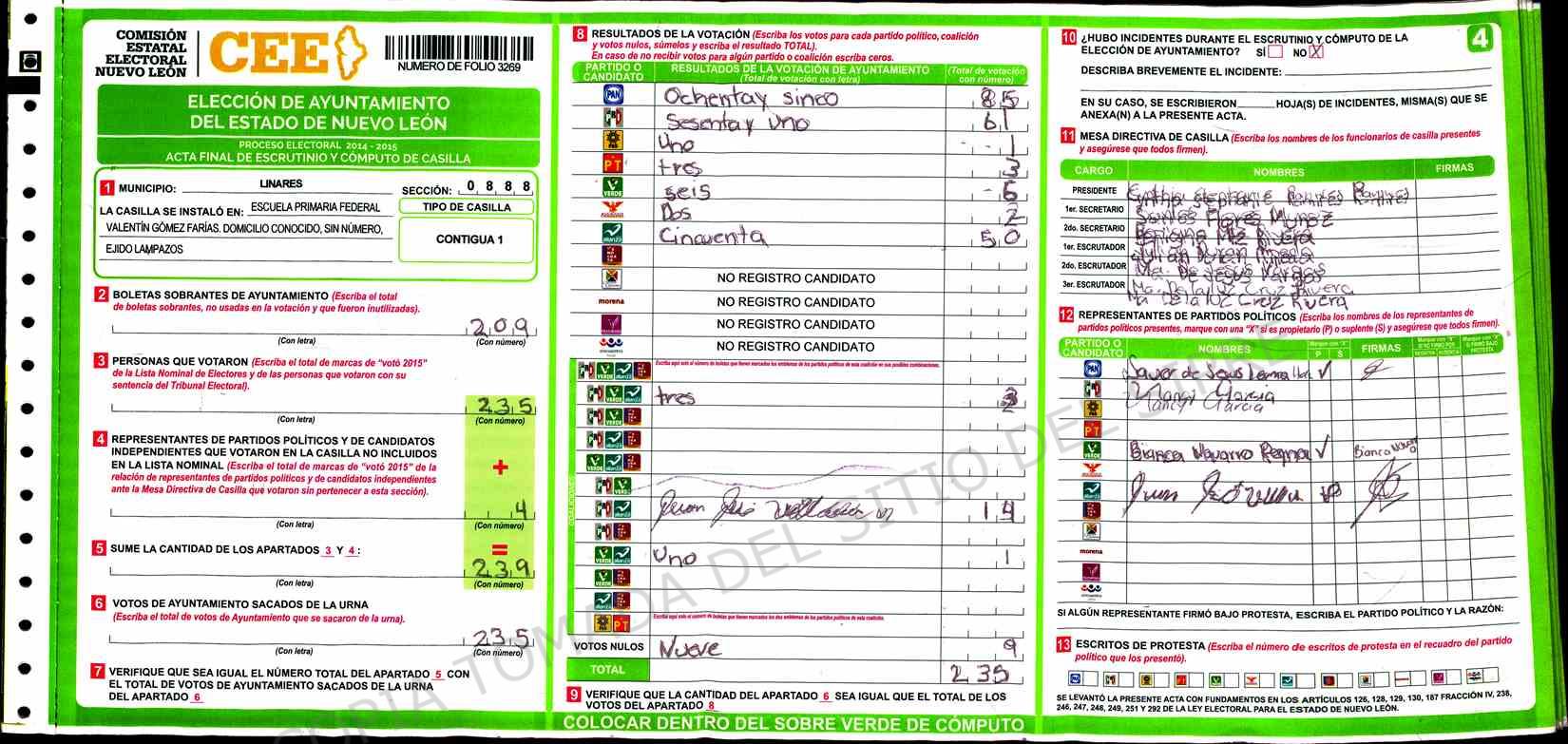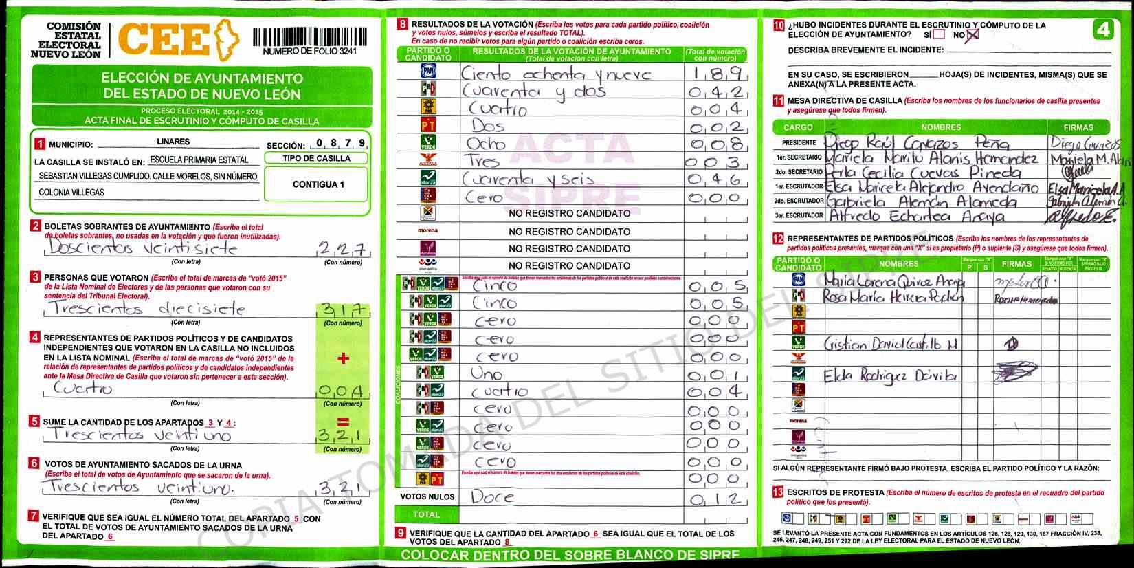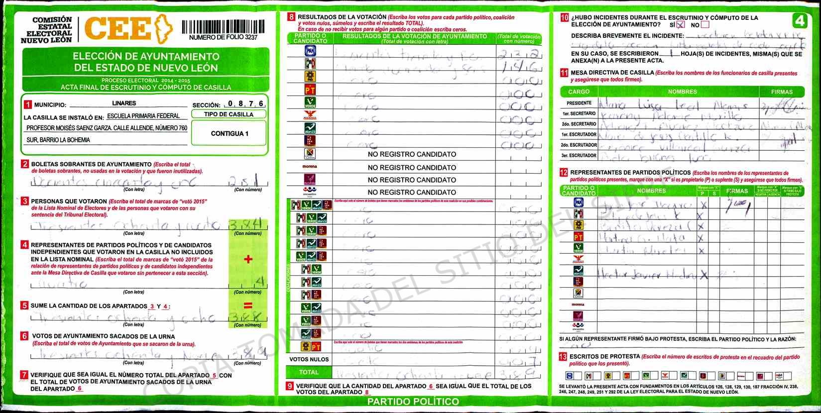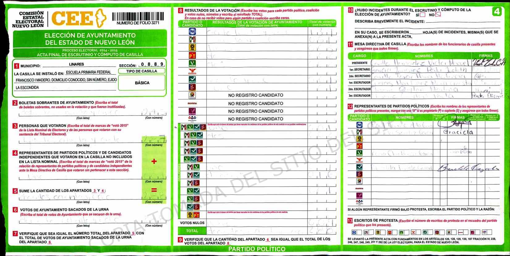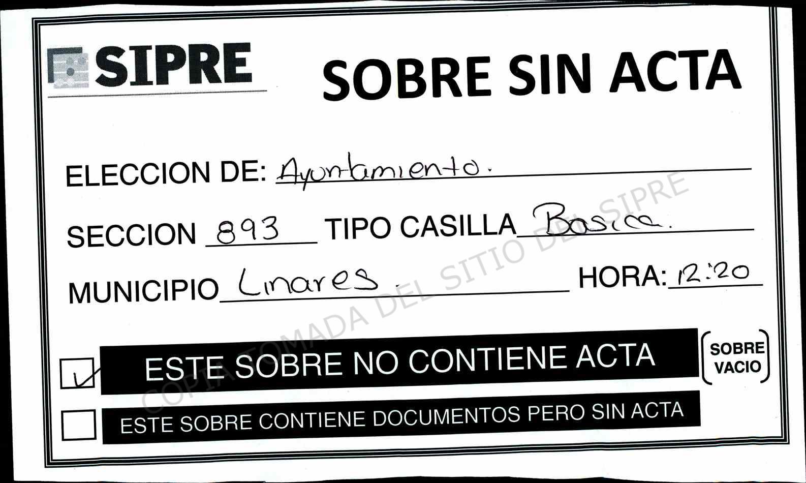 | Sección | Casilla | Hora | ![]() |