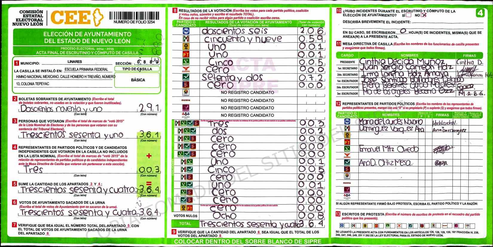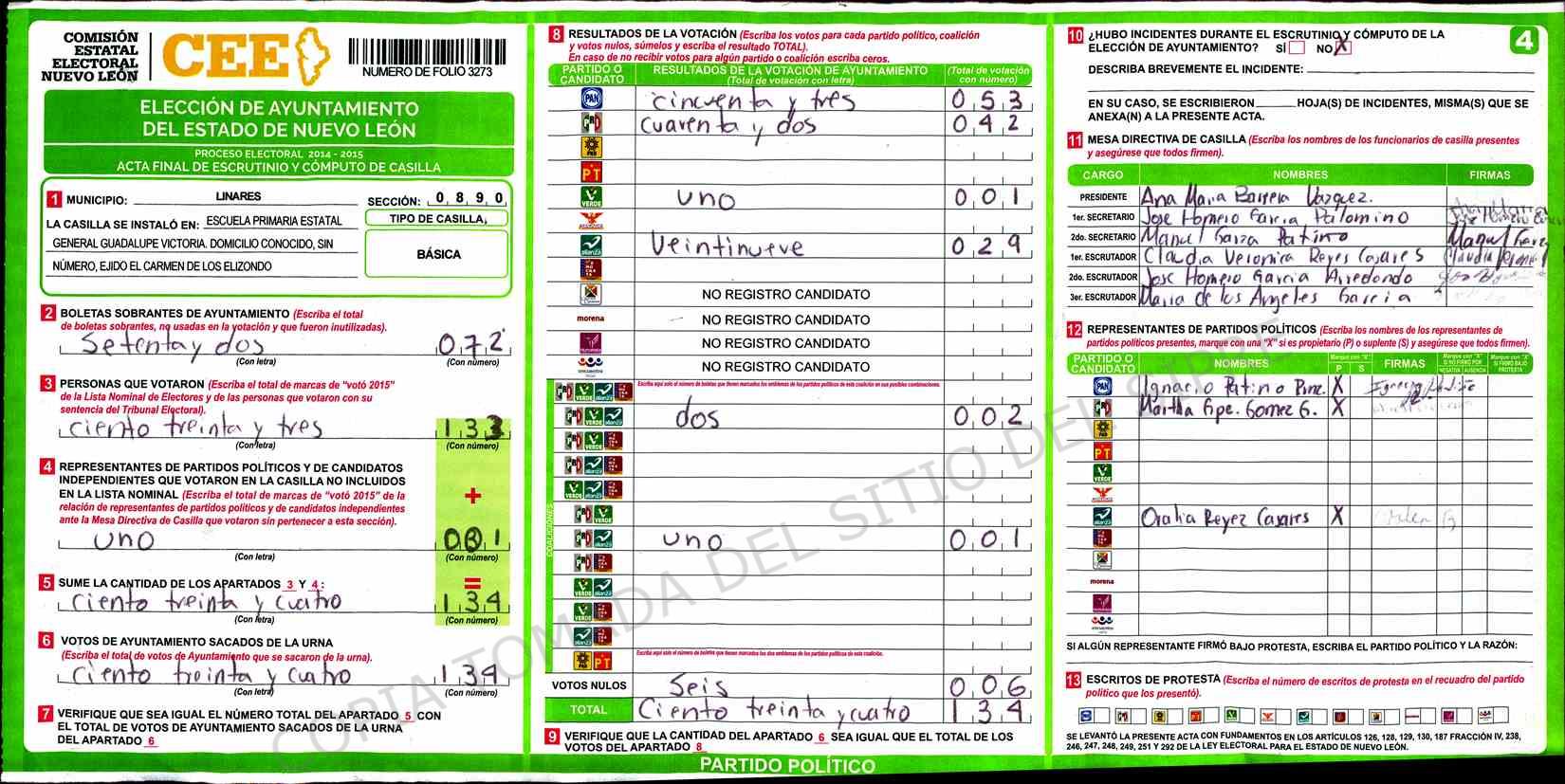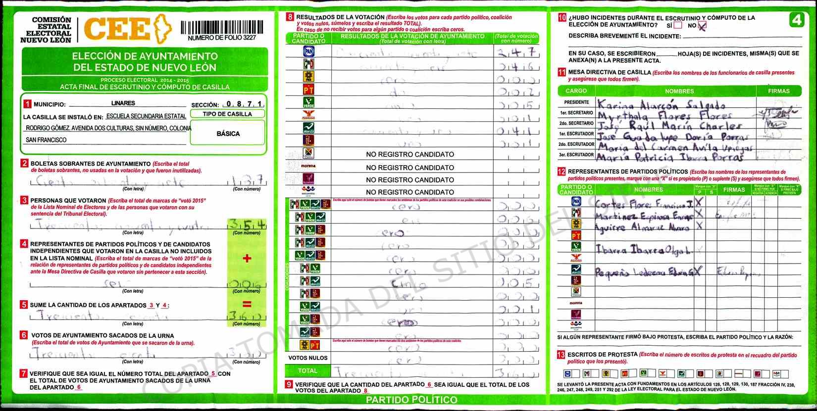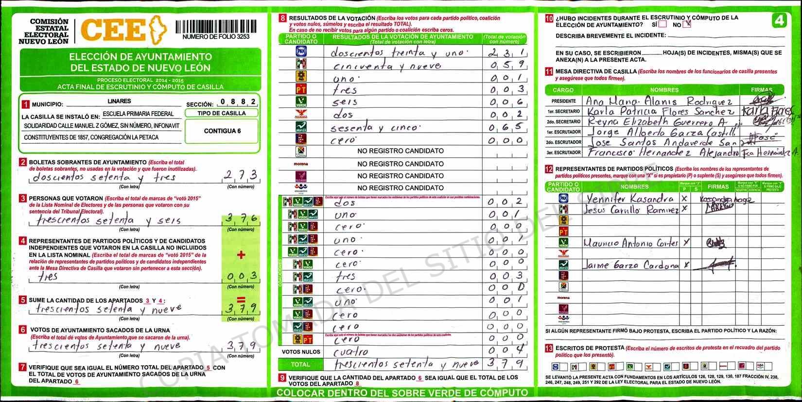 | Sección | Casilla | Hora | ![]() |