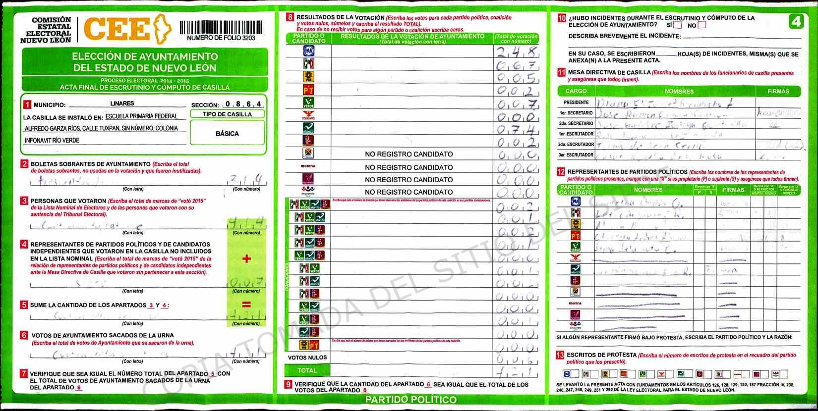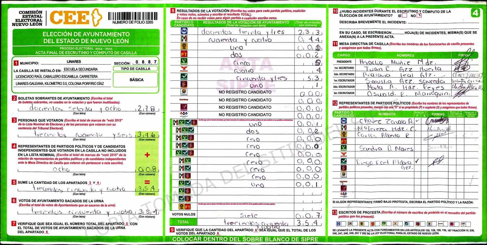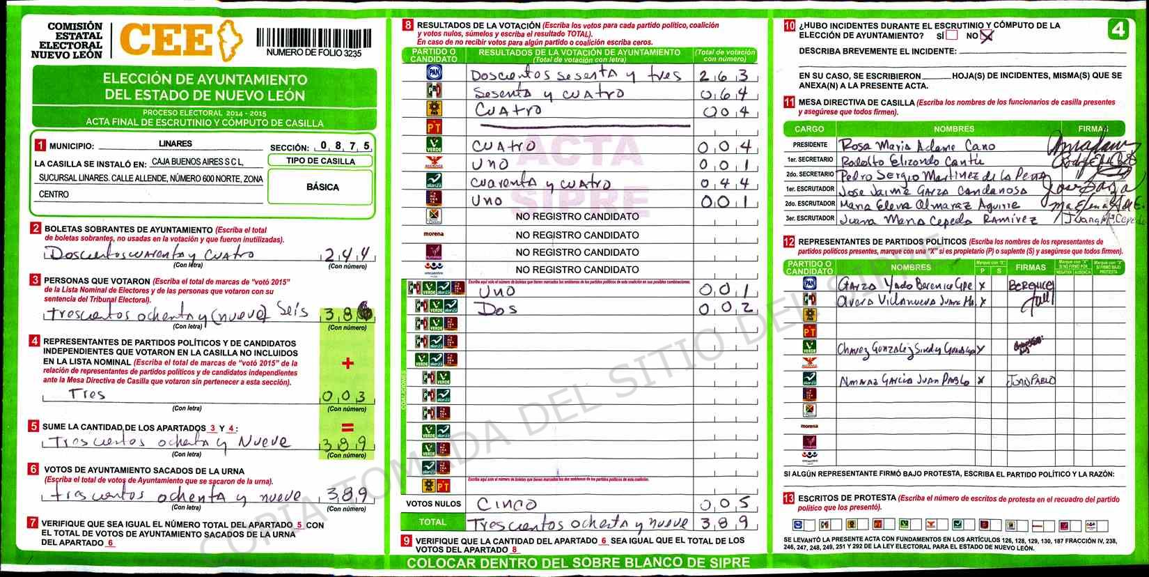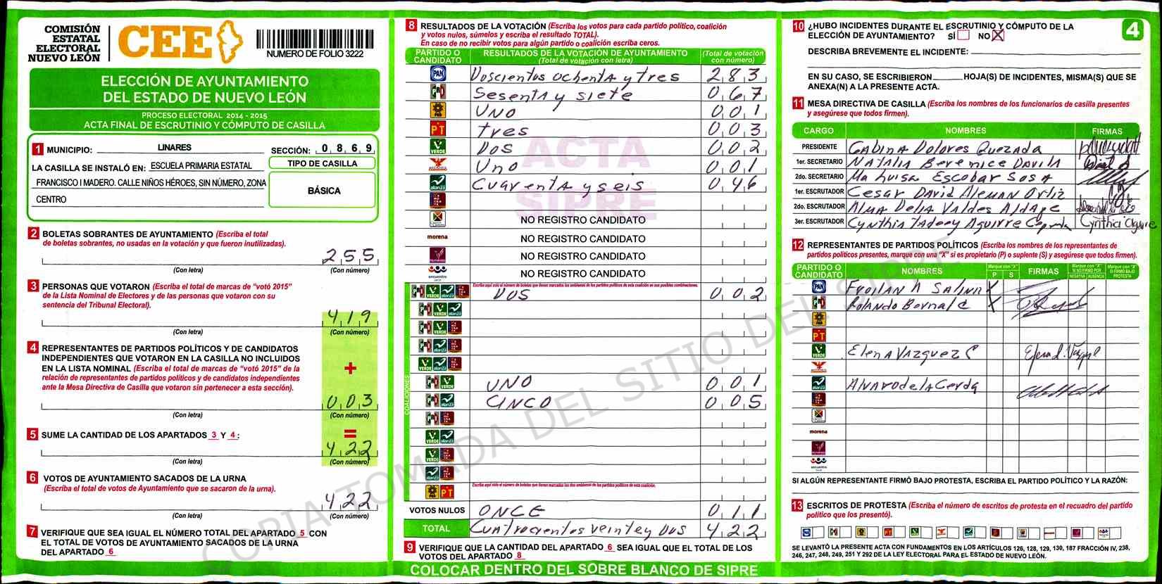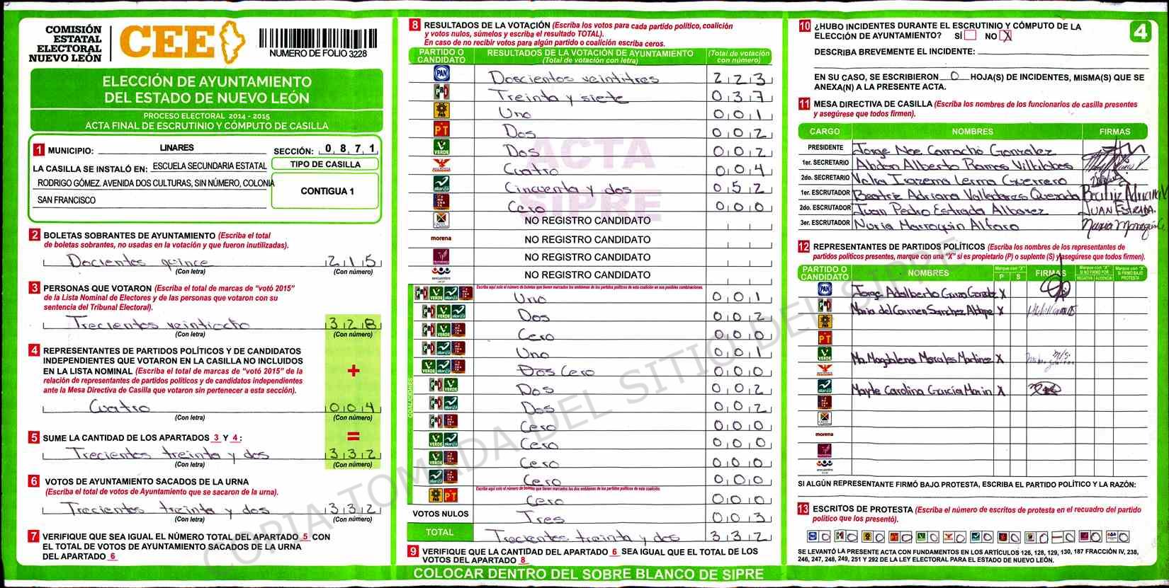 | Sección | Casilla | Hora | ![]() |
