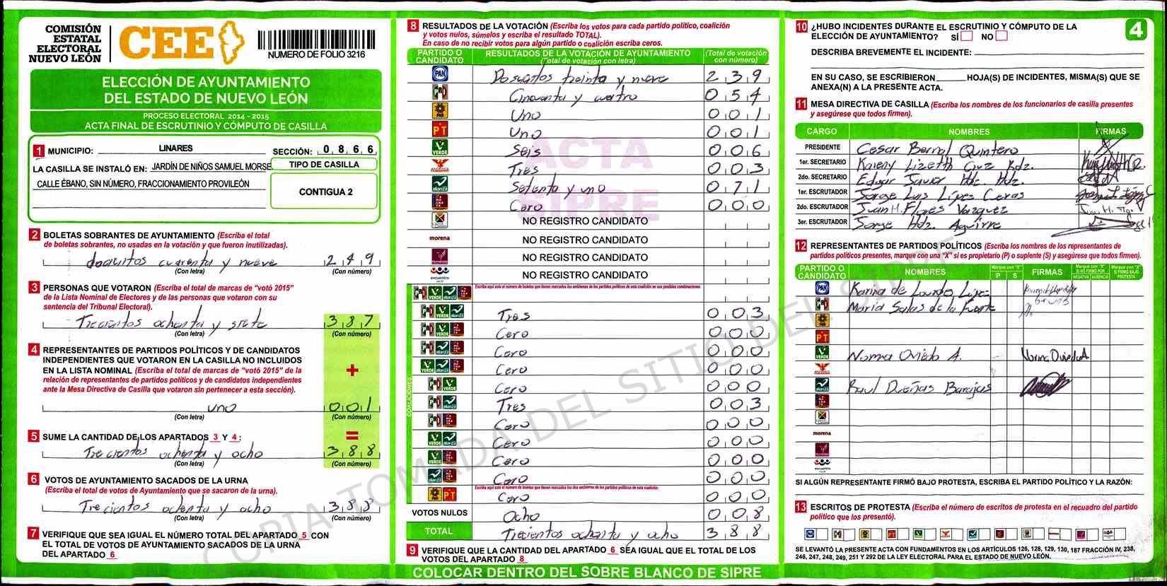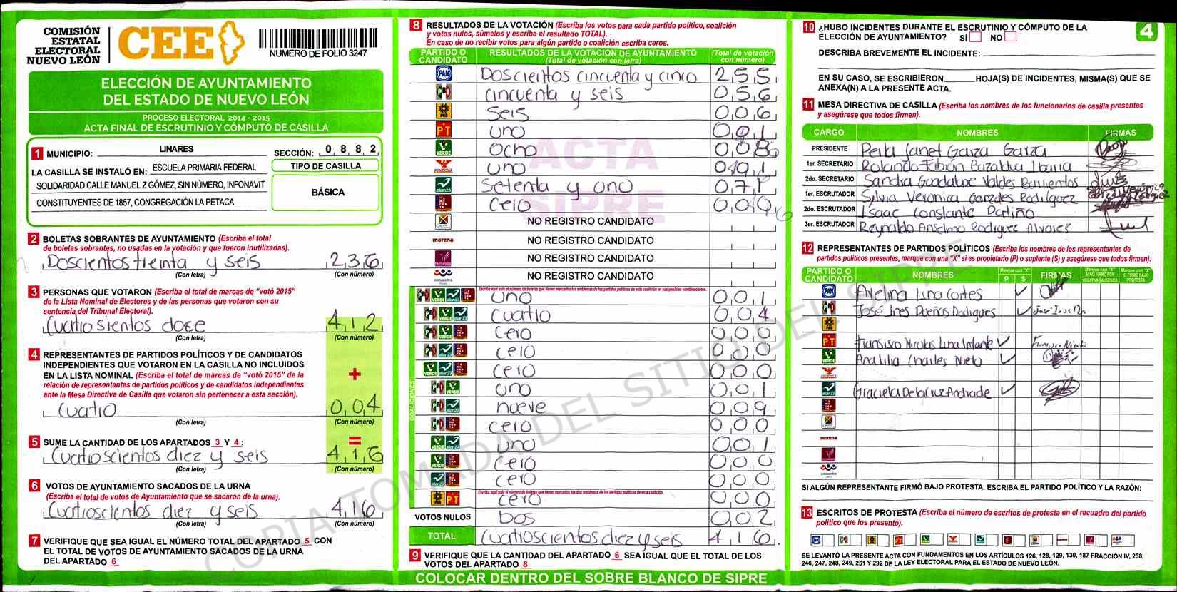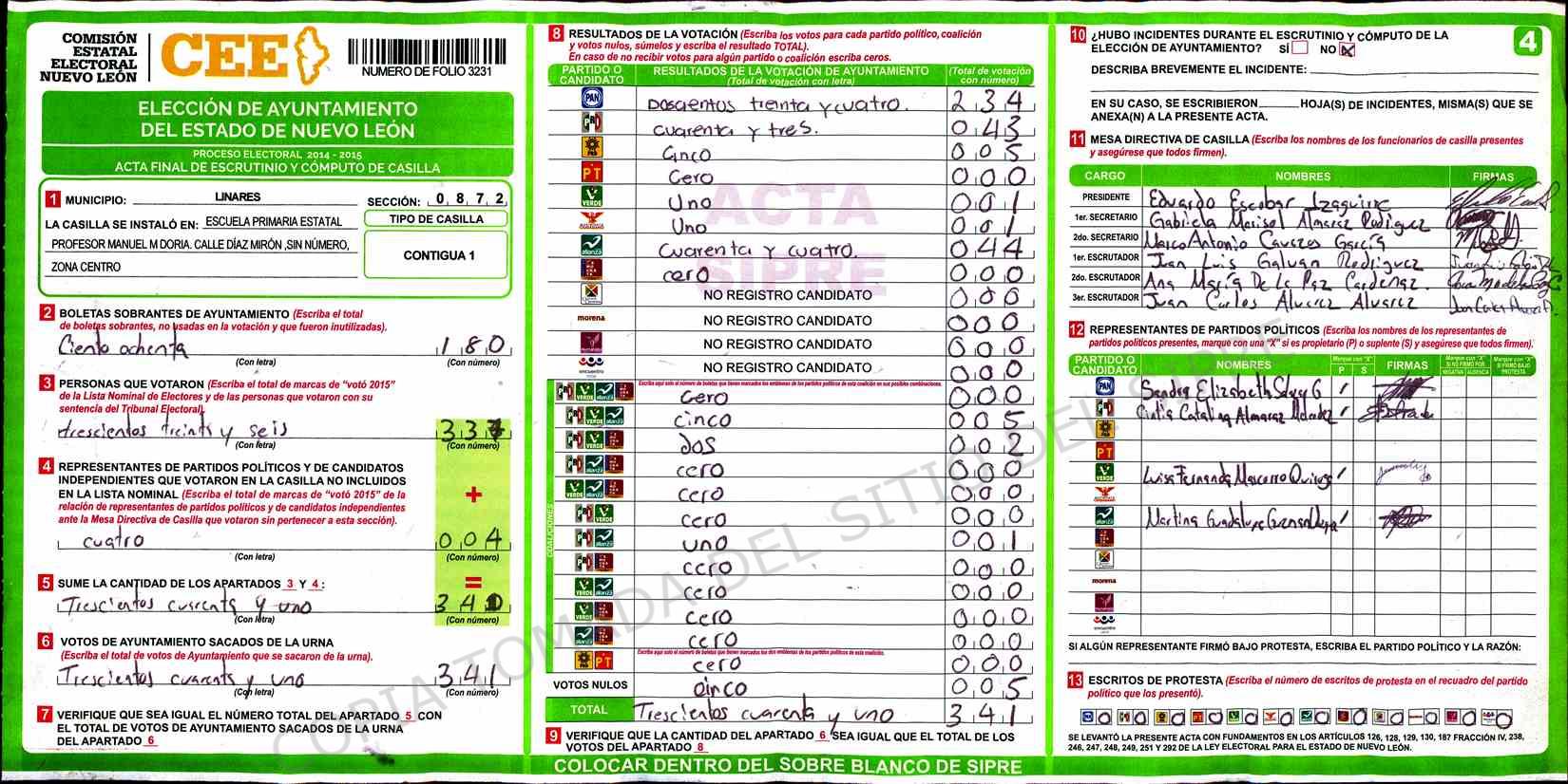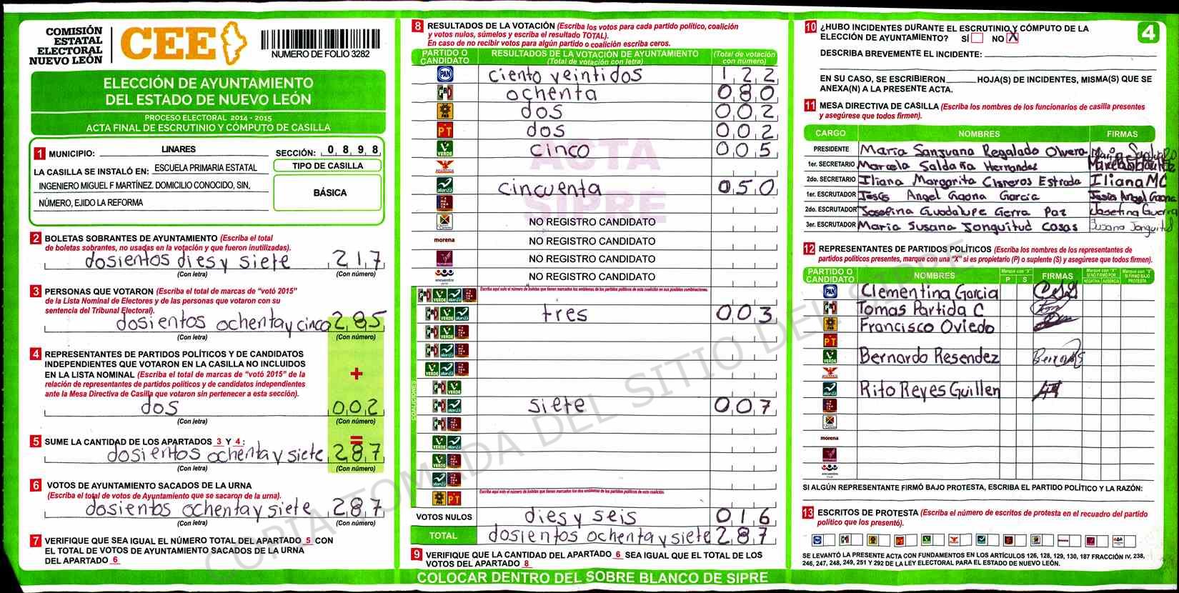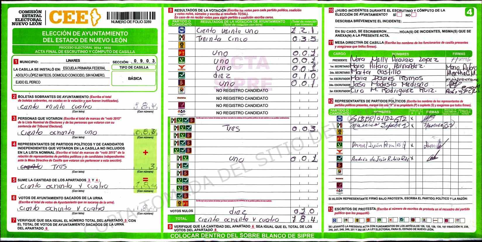 | Sección | Casilla | Hora | ![]() |