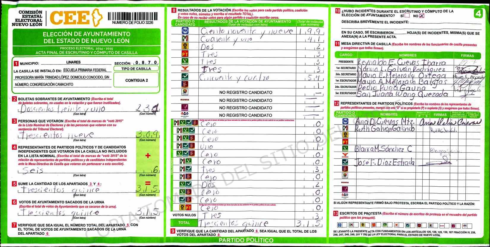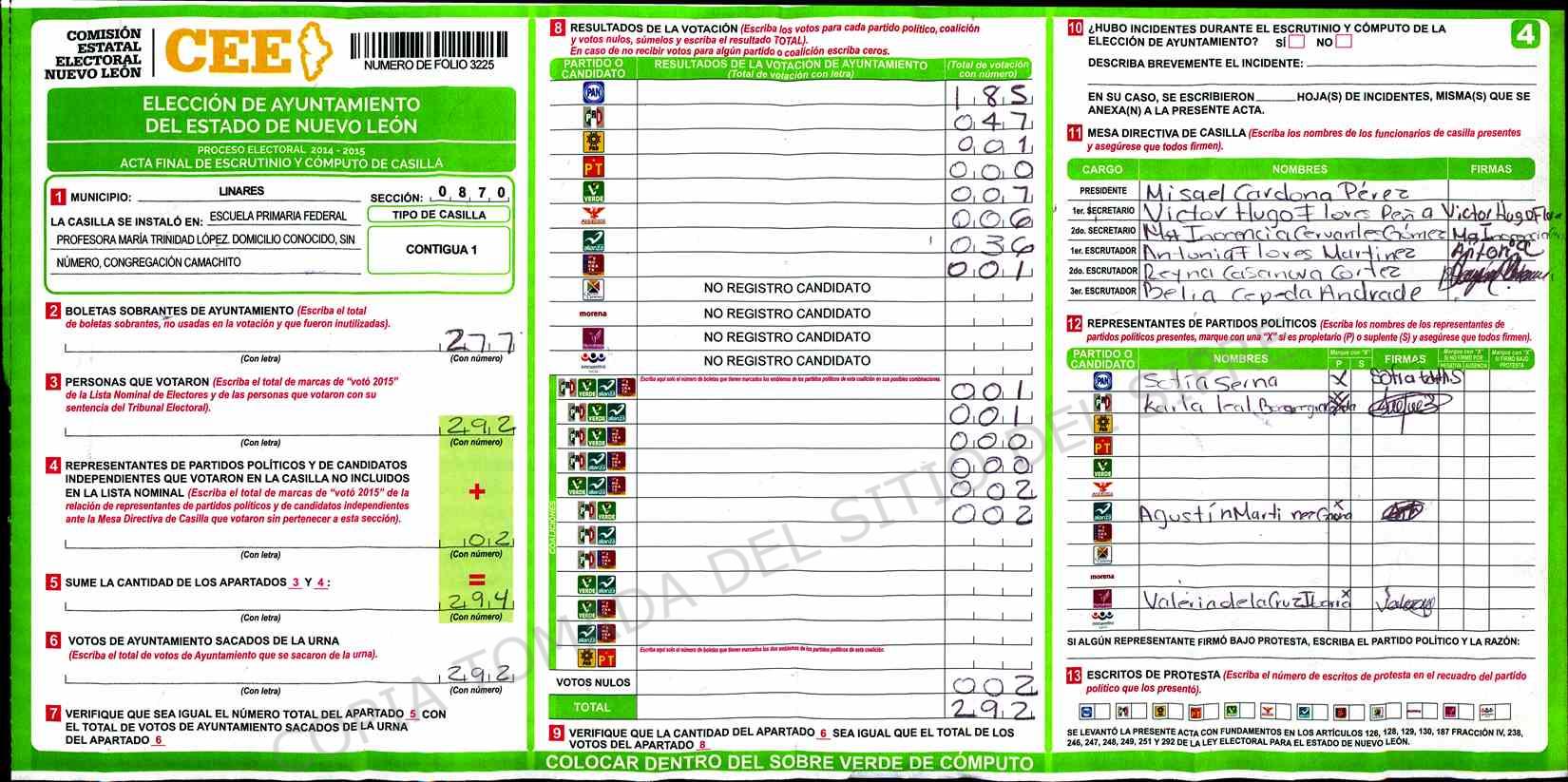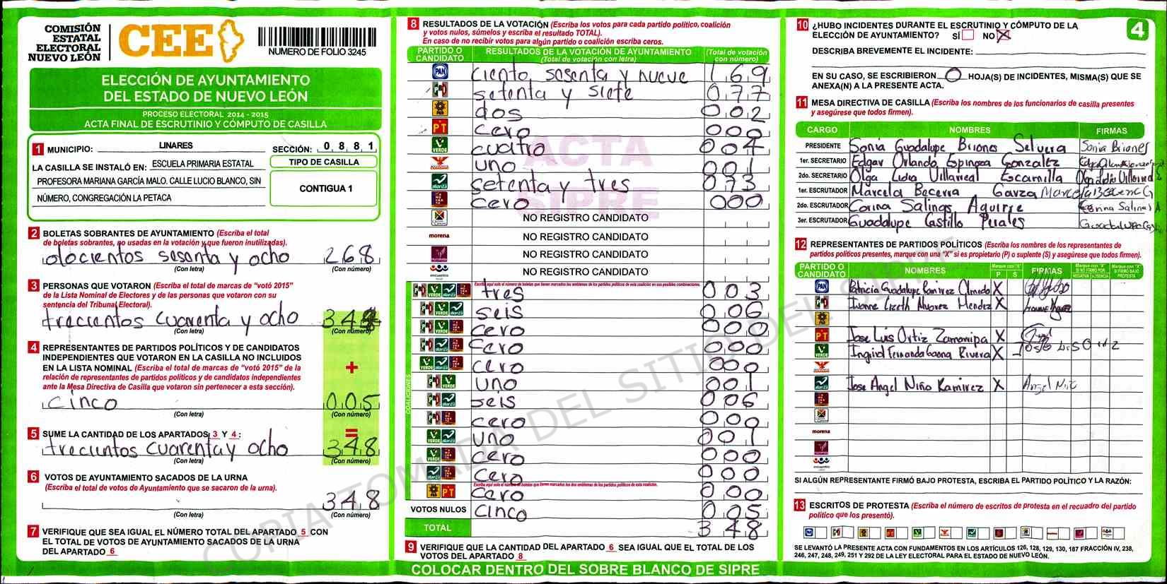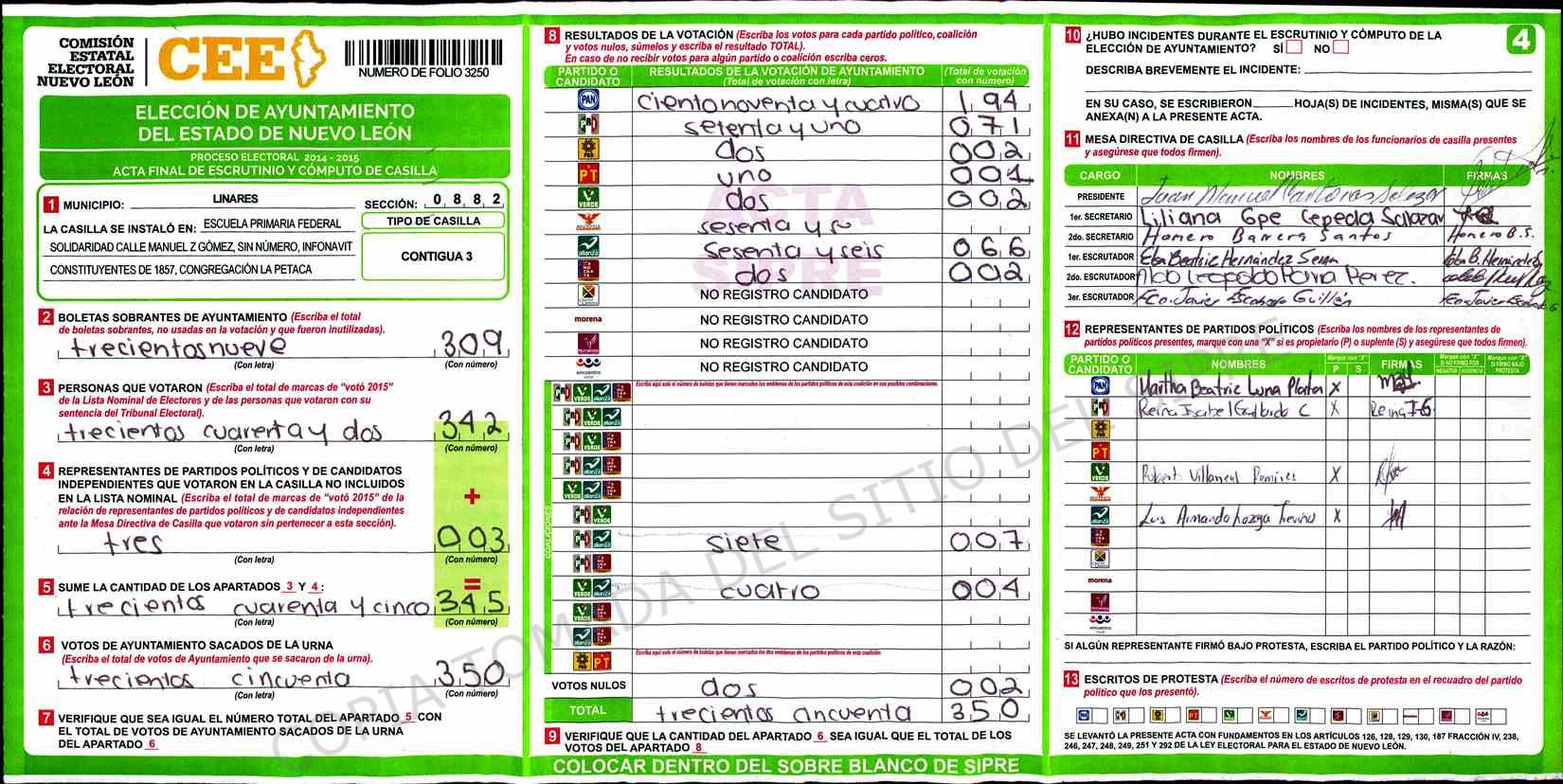 | Sección | Casilla | Hora | ![]() |
