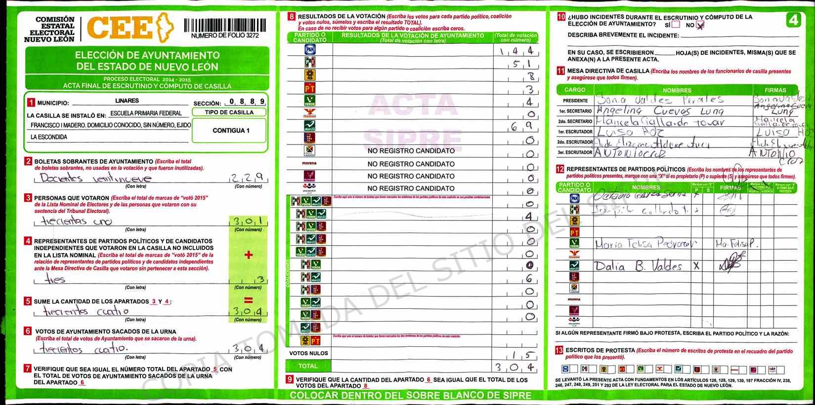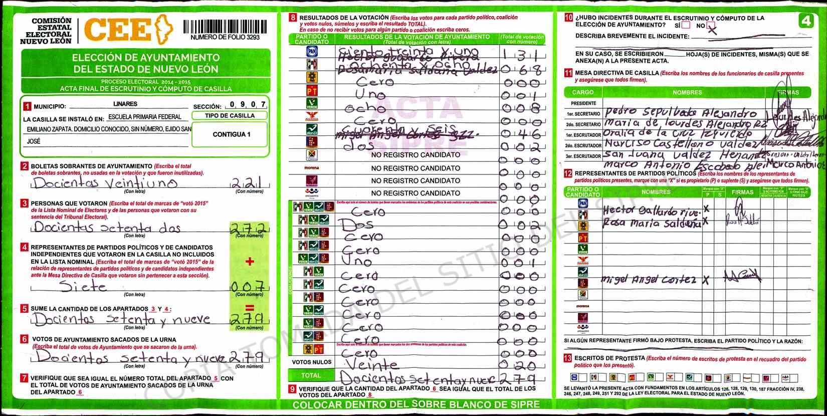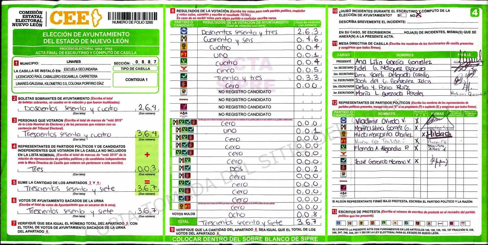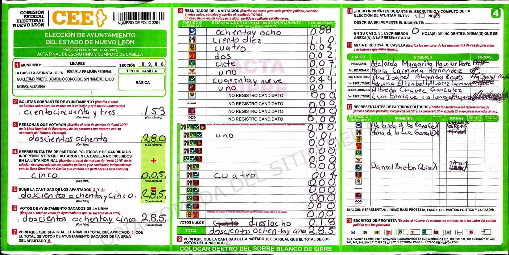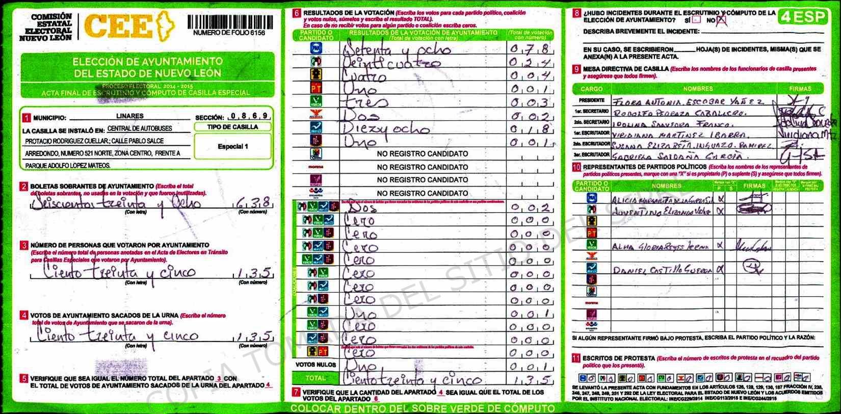 | Sección | Casilla | Hora | ![]() |