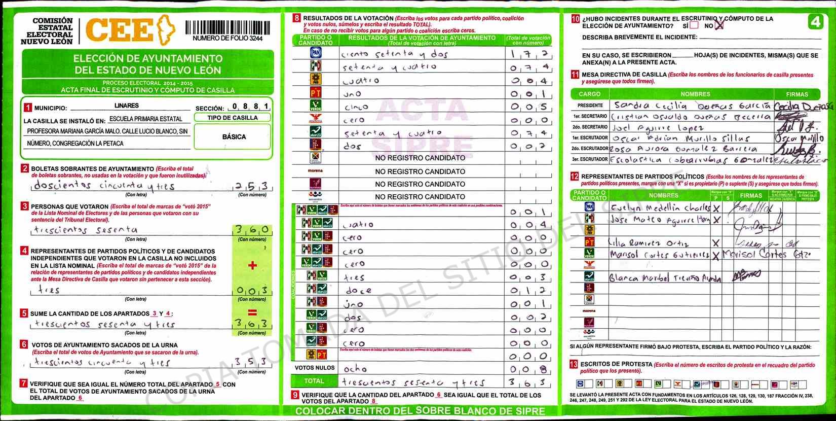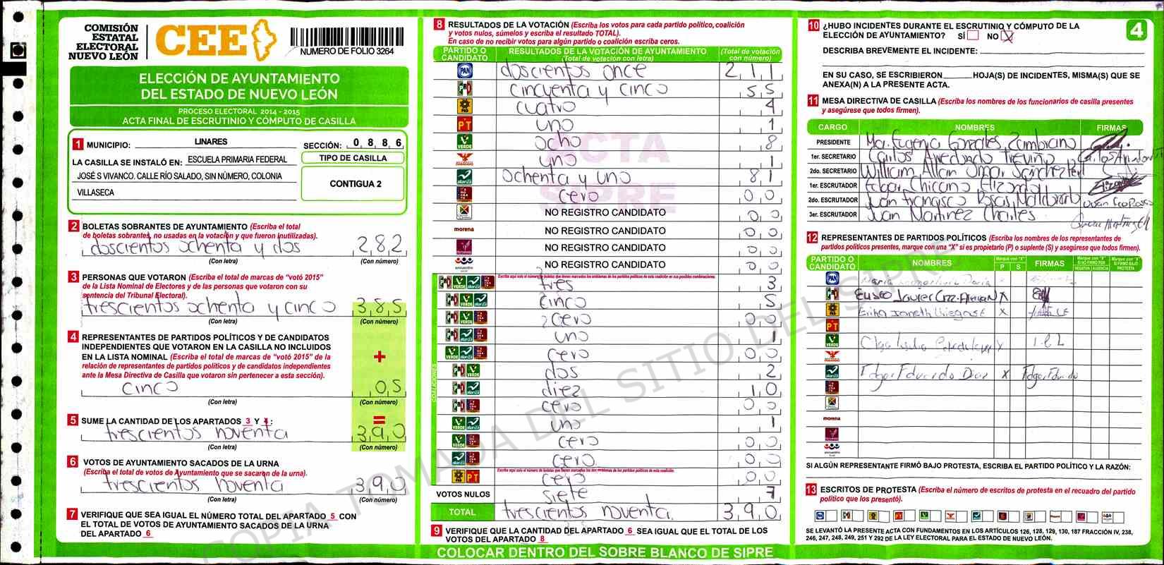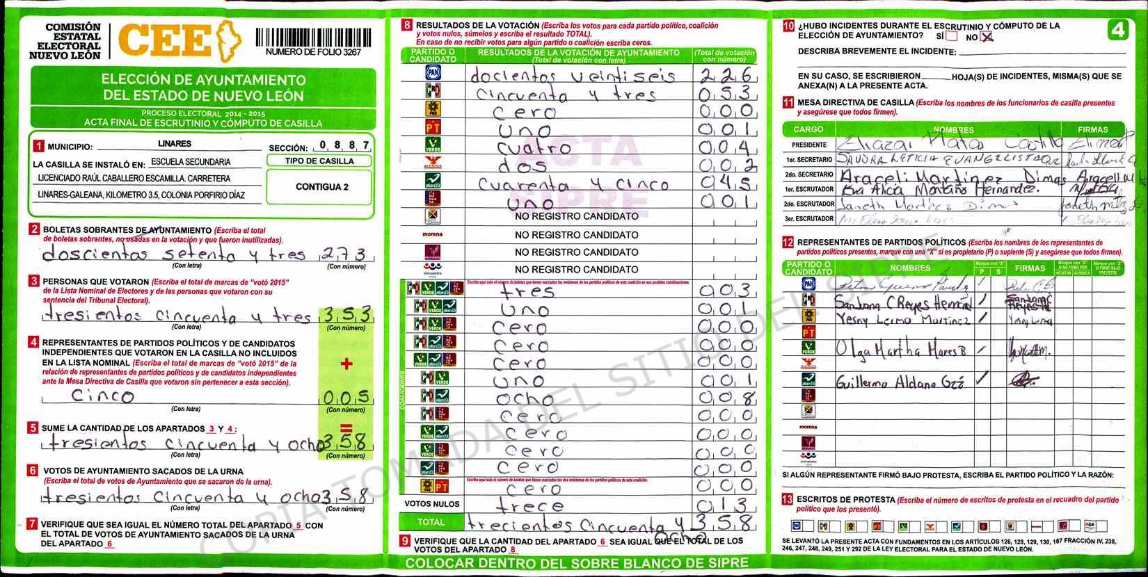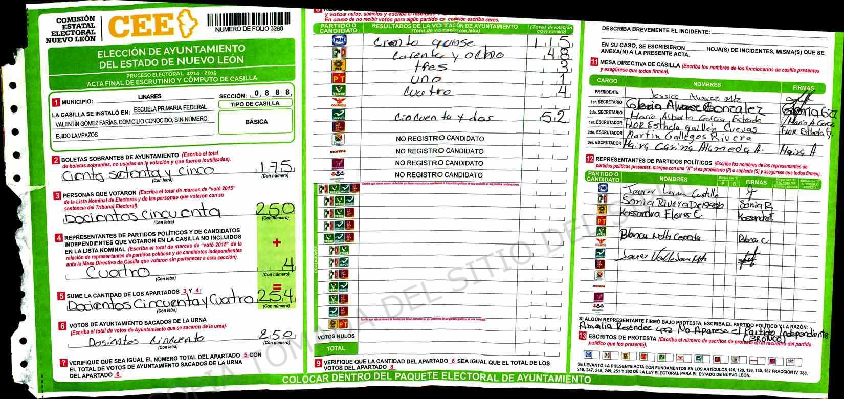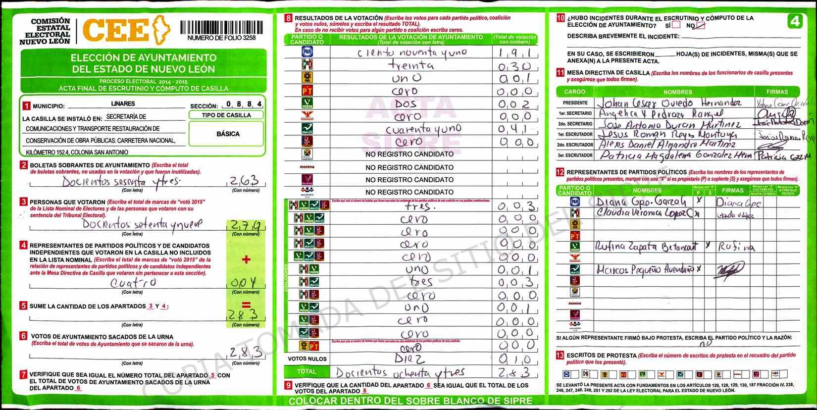 | Sección | Casilla | Hora | ![]() |