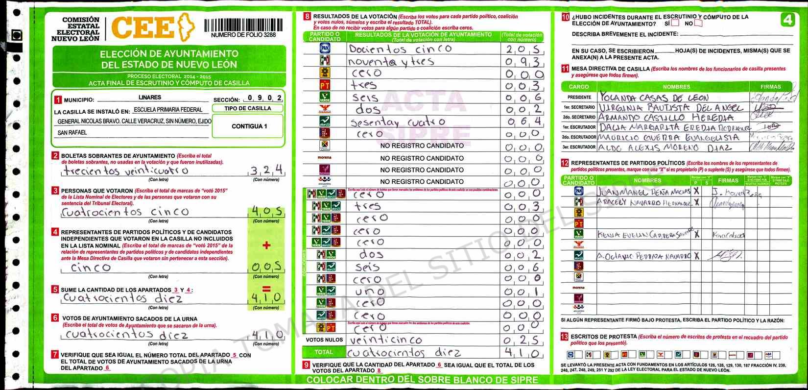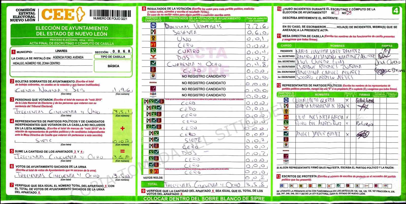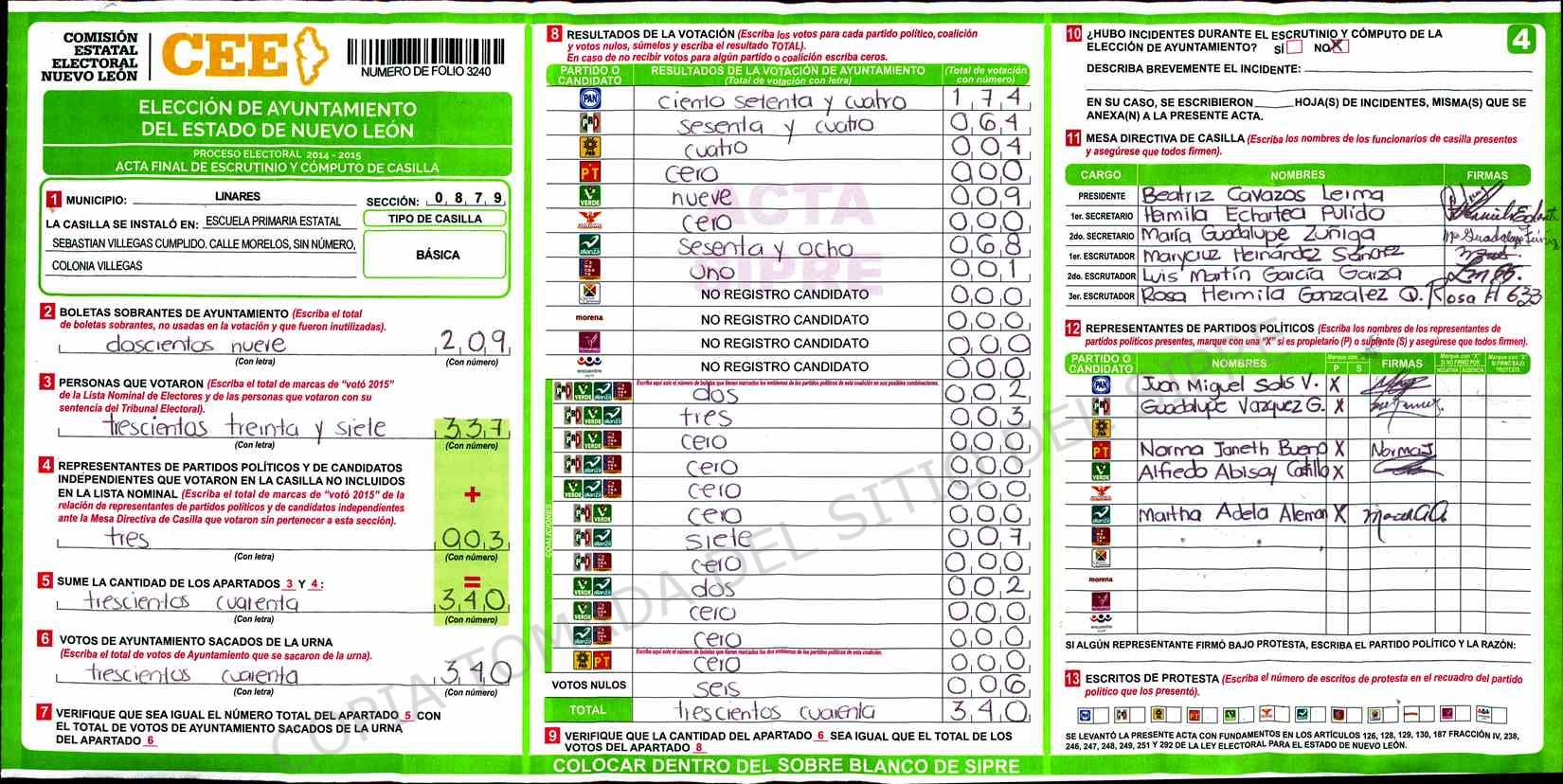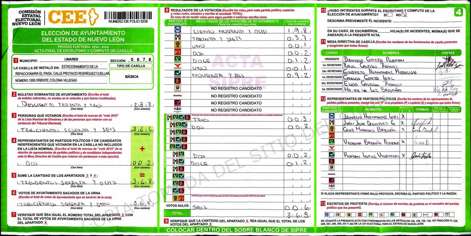 | Sección | Casilla | Hora | ![]() |
