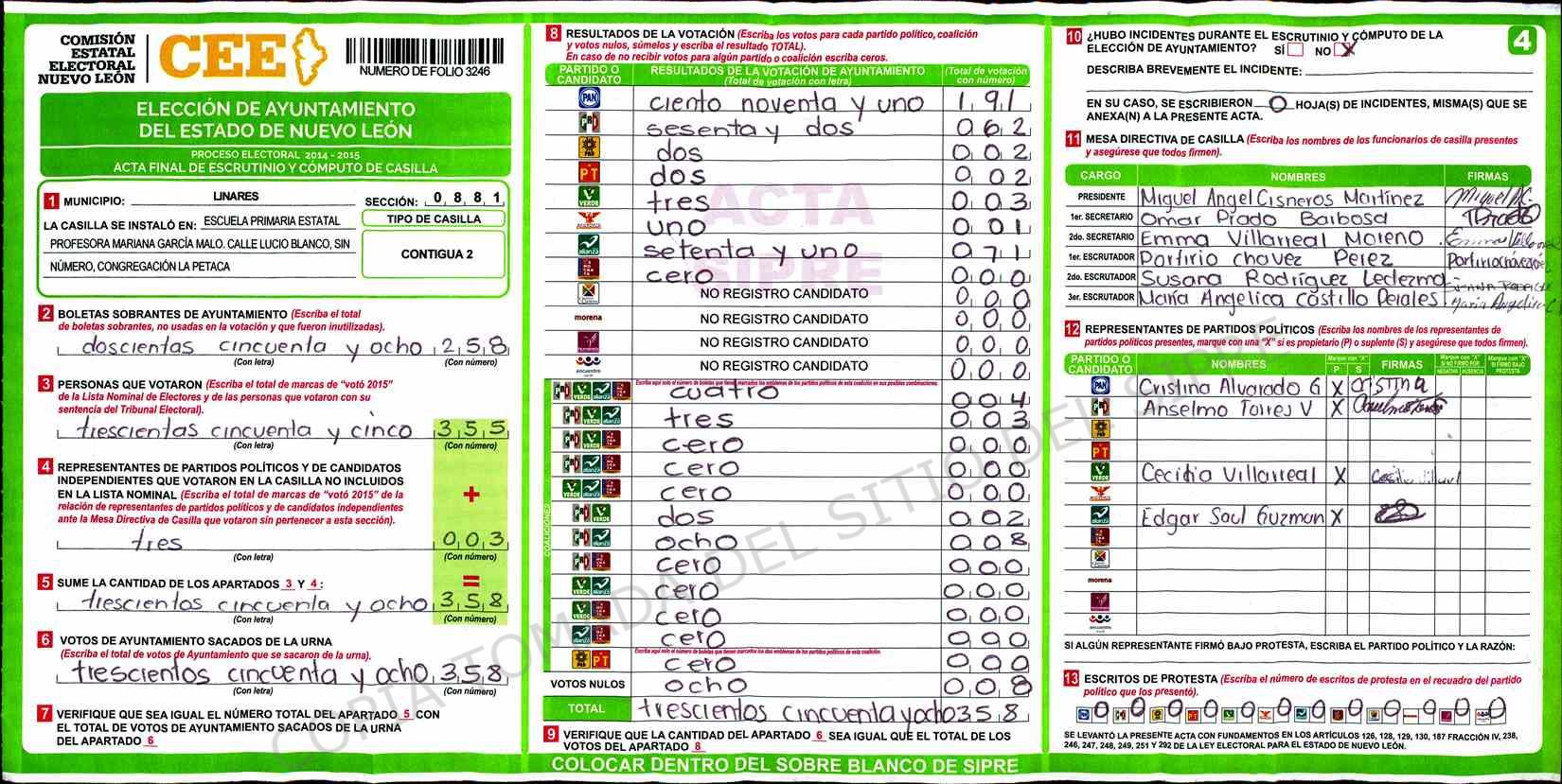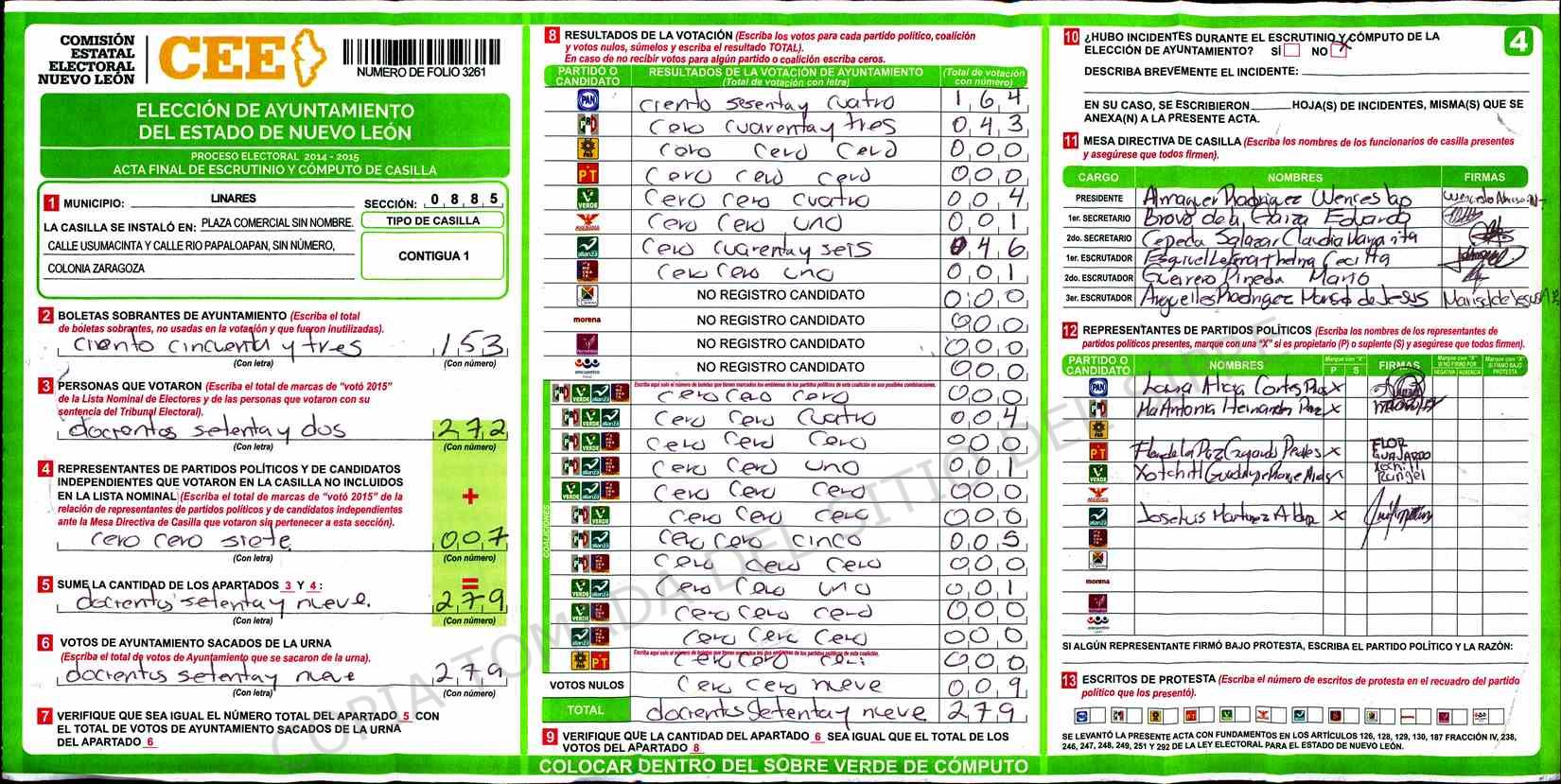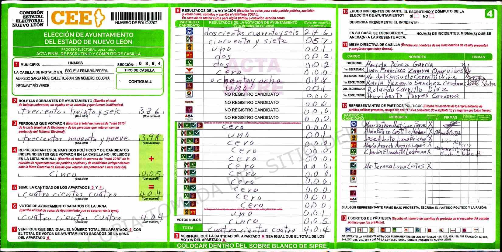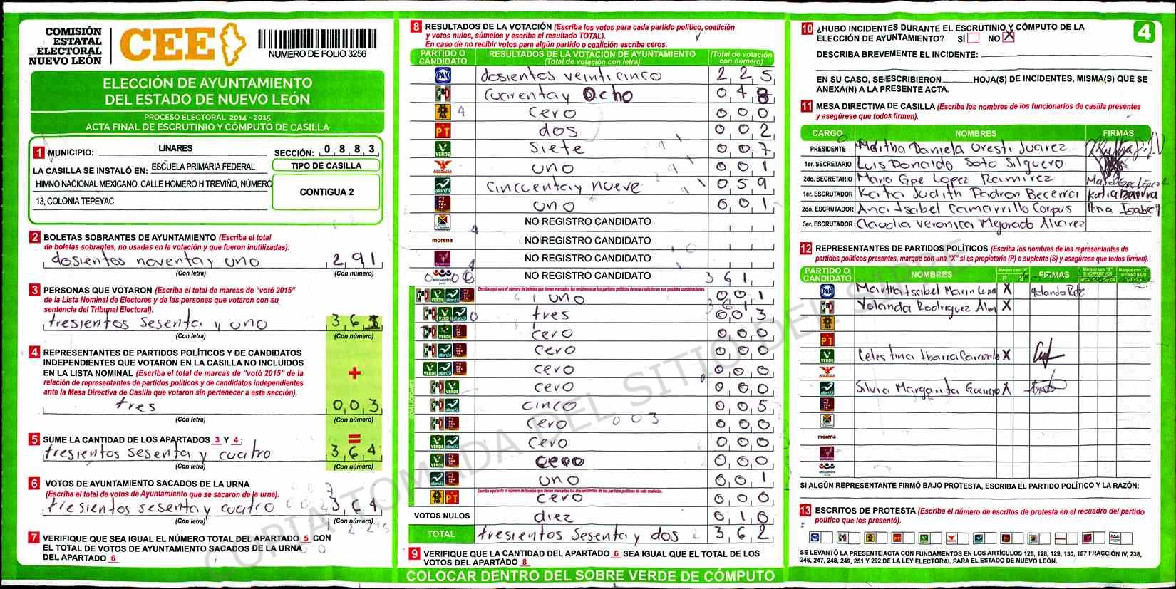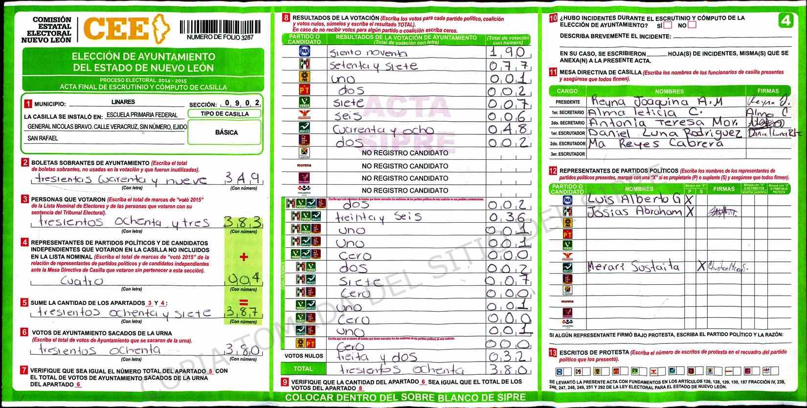 | Sección | Casilla | Hora | ![]() |