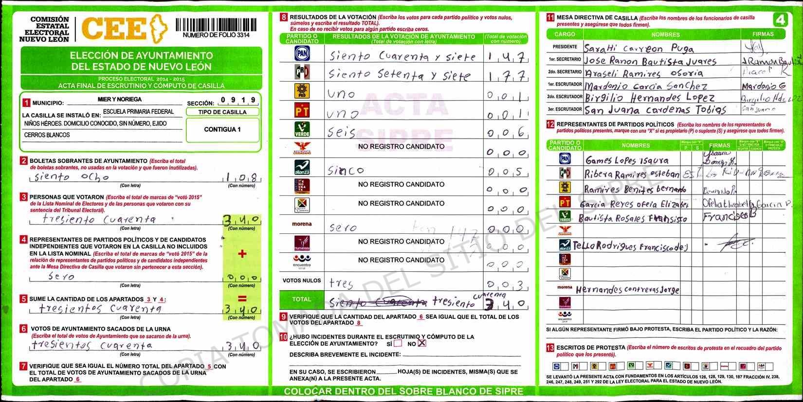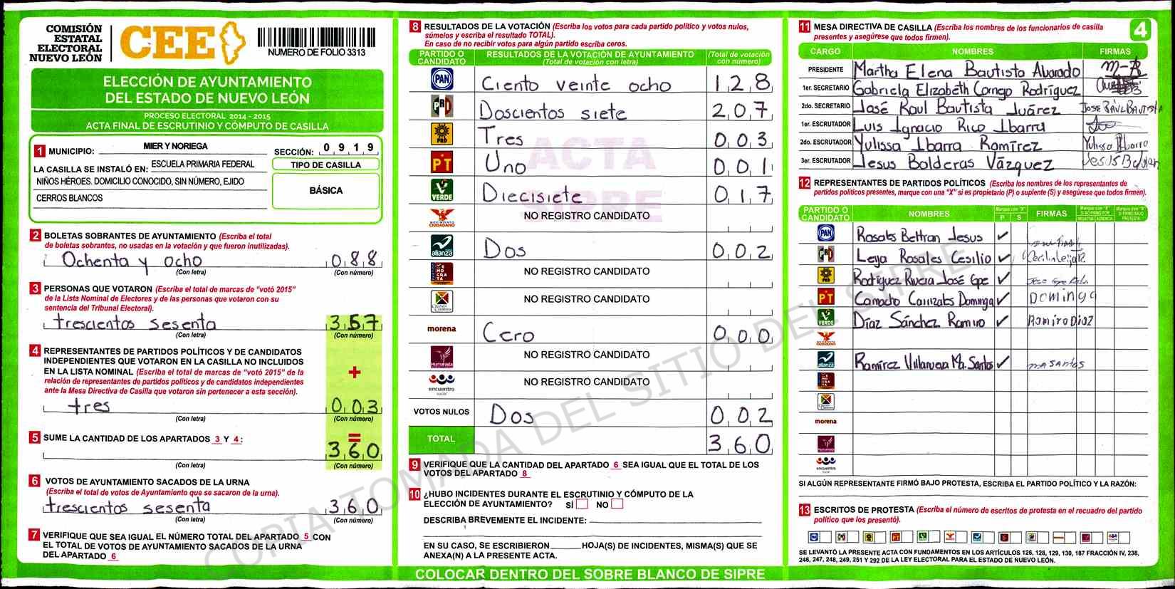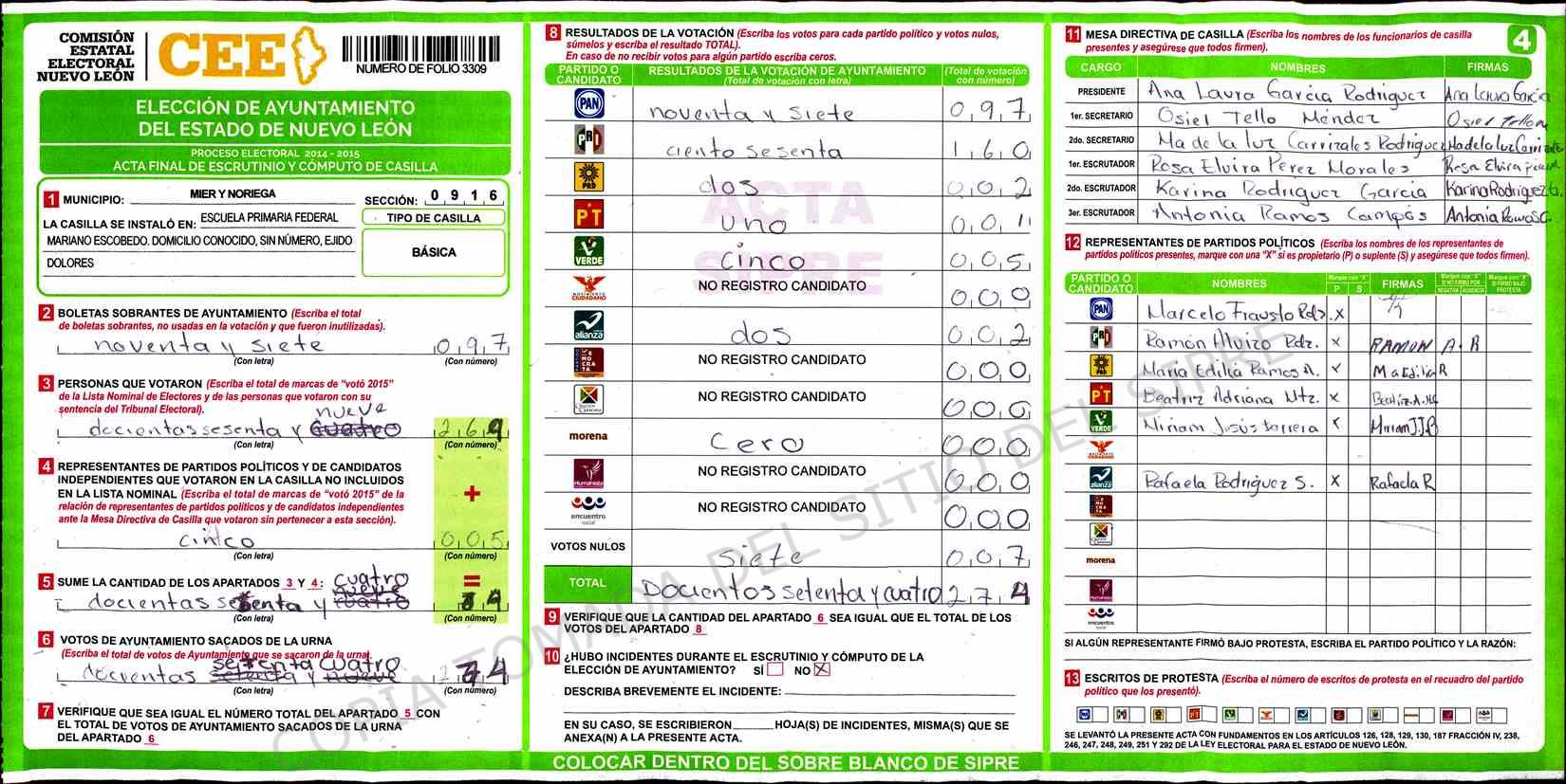 | BASICA (Mas votos de casilla 921 Básica Fusionada, 923 Básica Fusionada) | 22:46 | 128 | 136 | 0 | 1 | 7 | 1 | 0 | 3 | 276 | 346 | 79.8 | |||||||||||||||||||