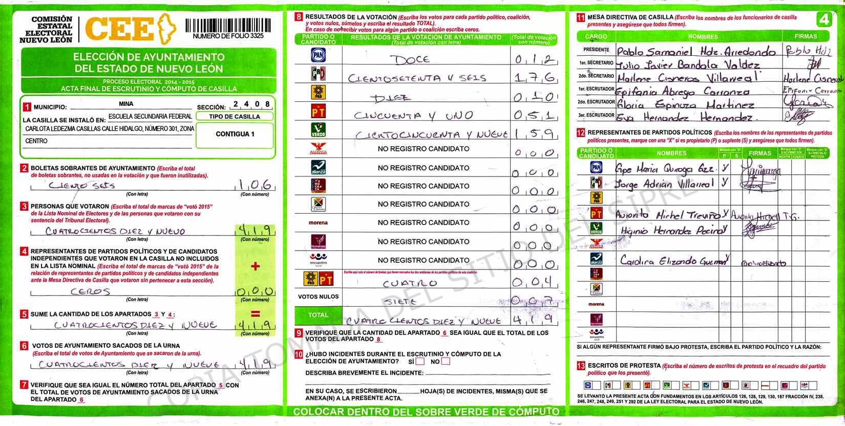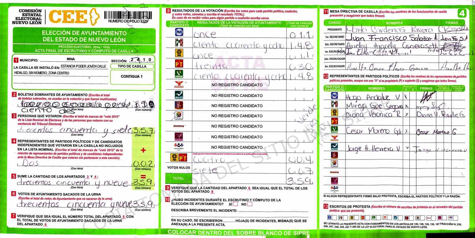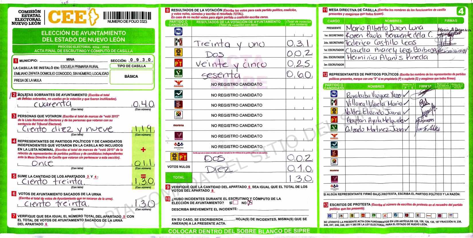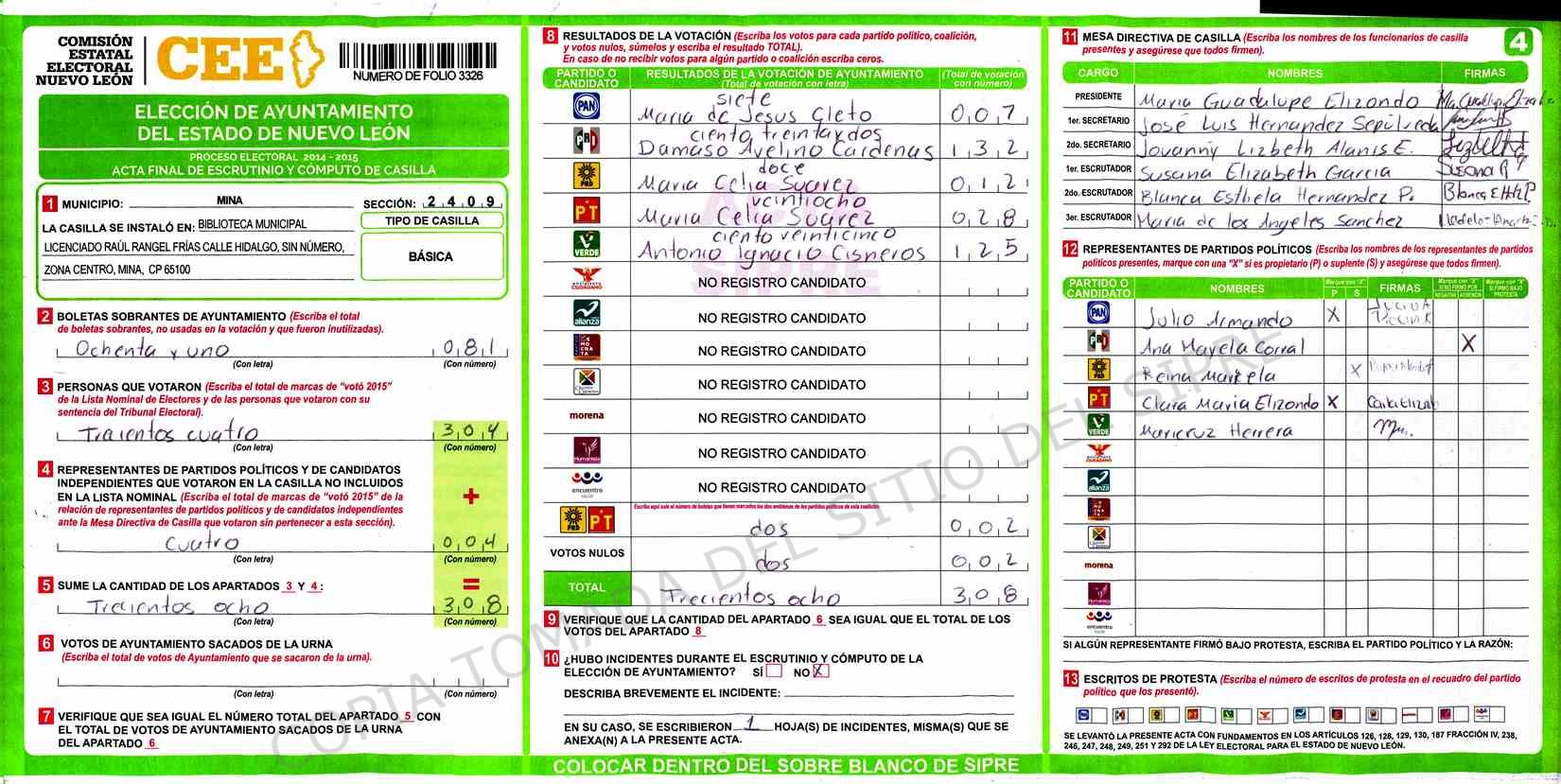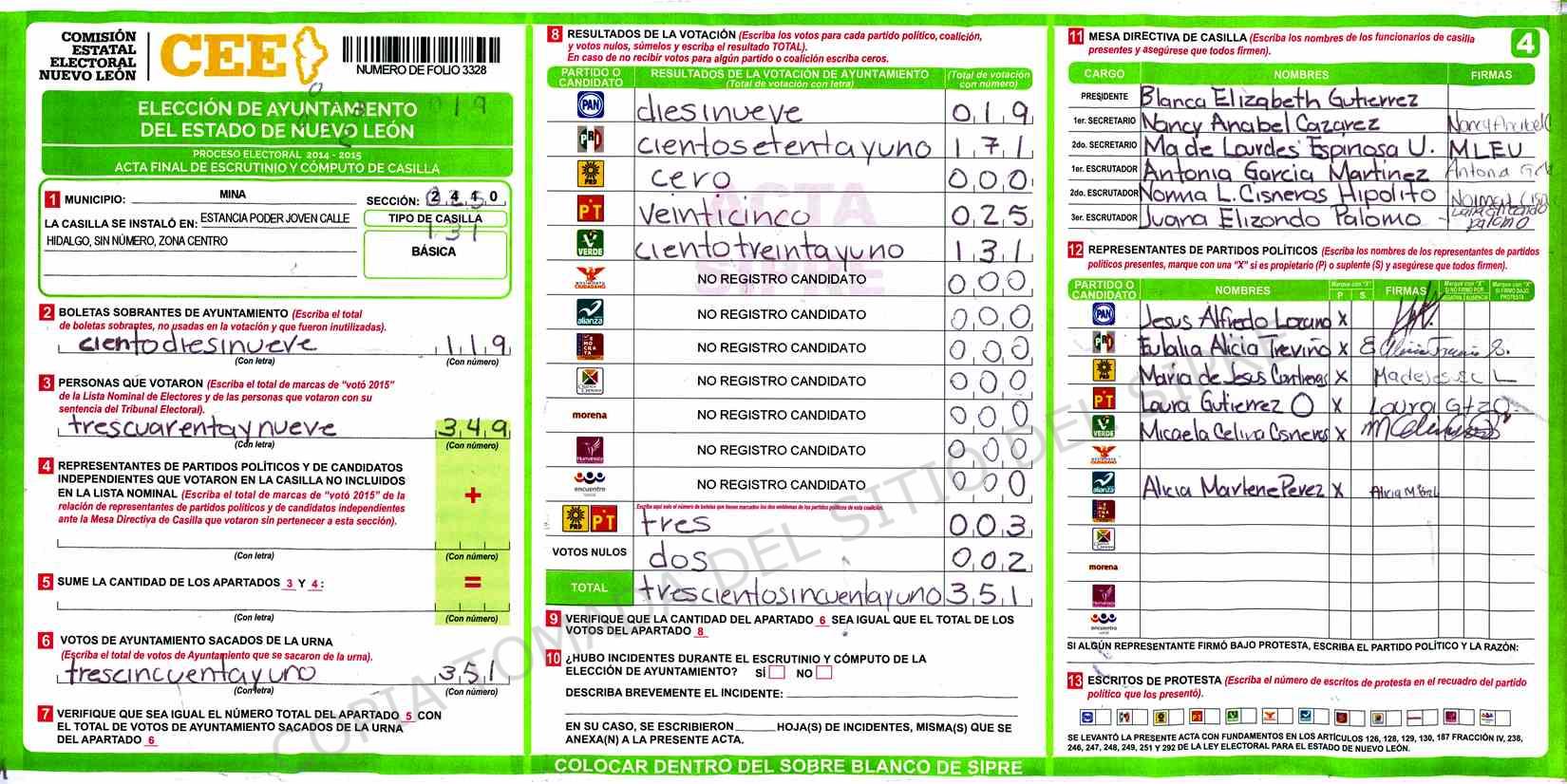 | Sección | Casilla | Hora | ![]() |