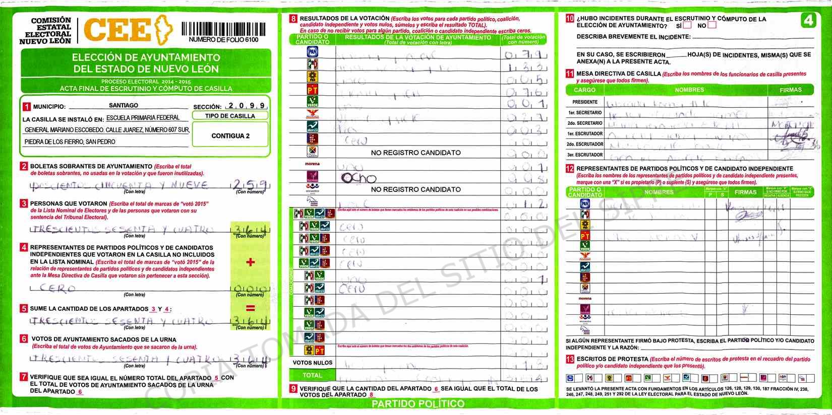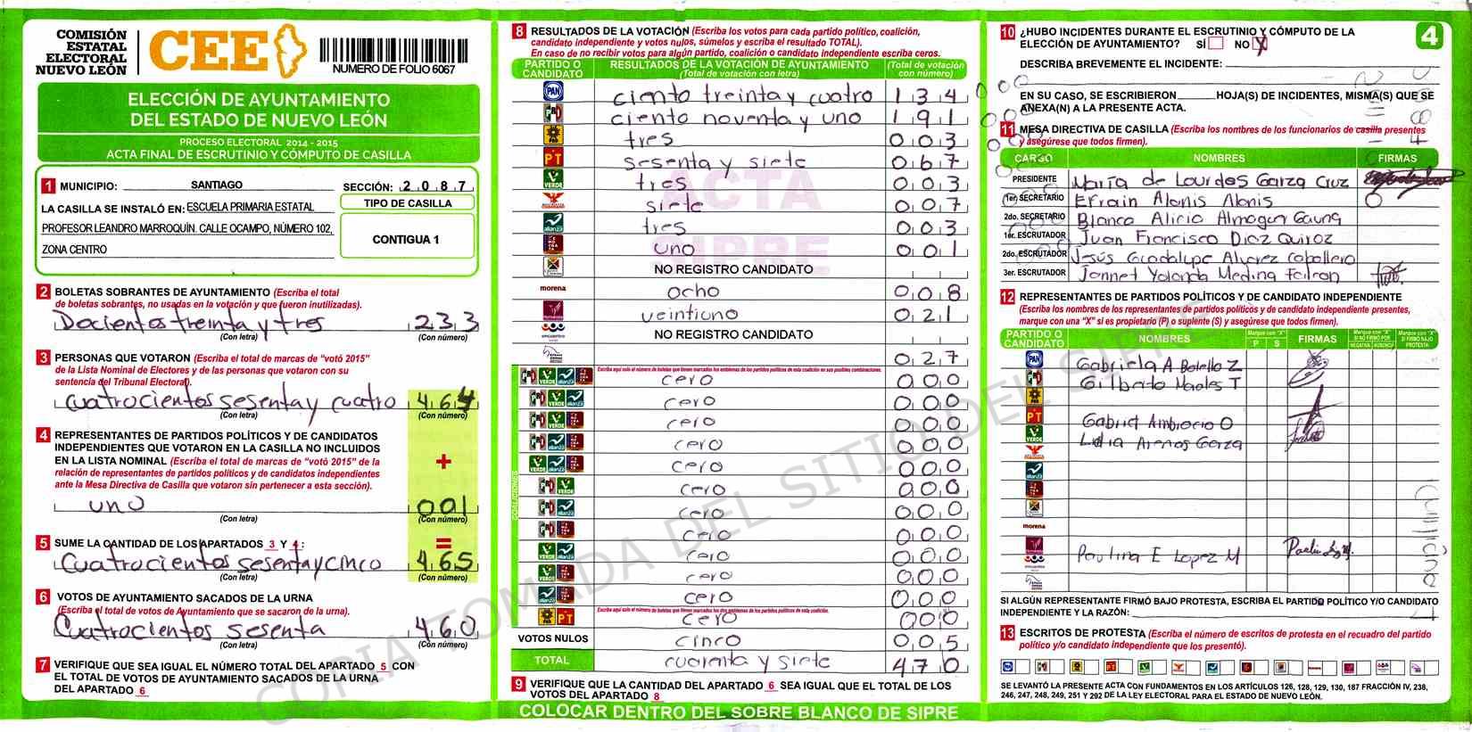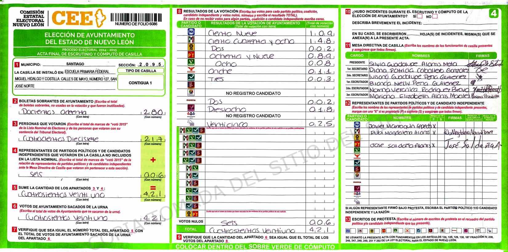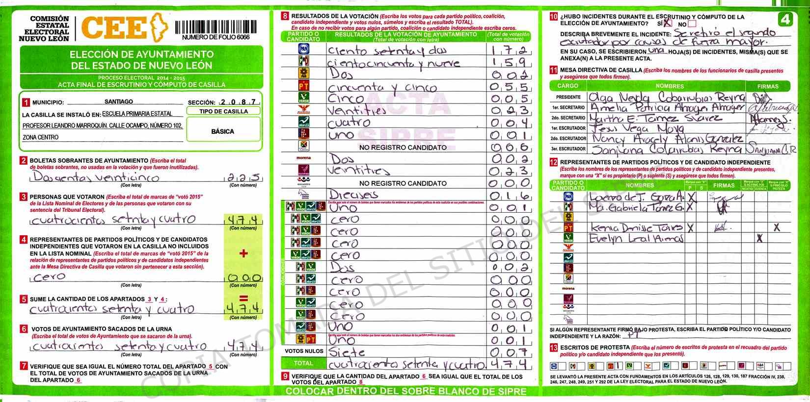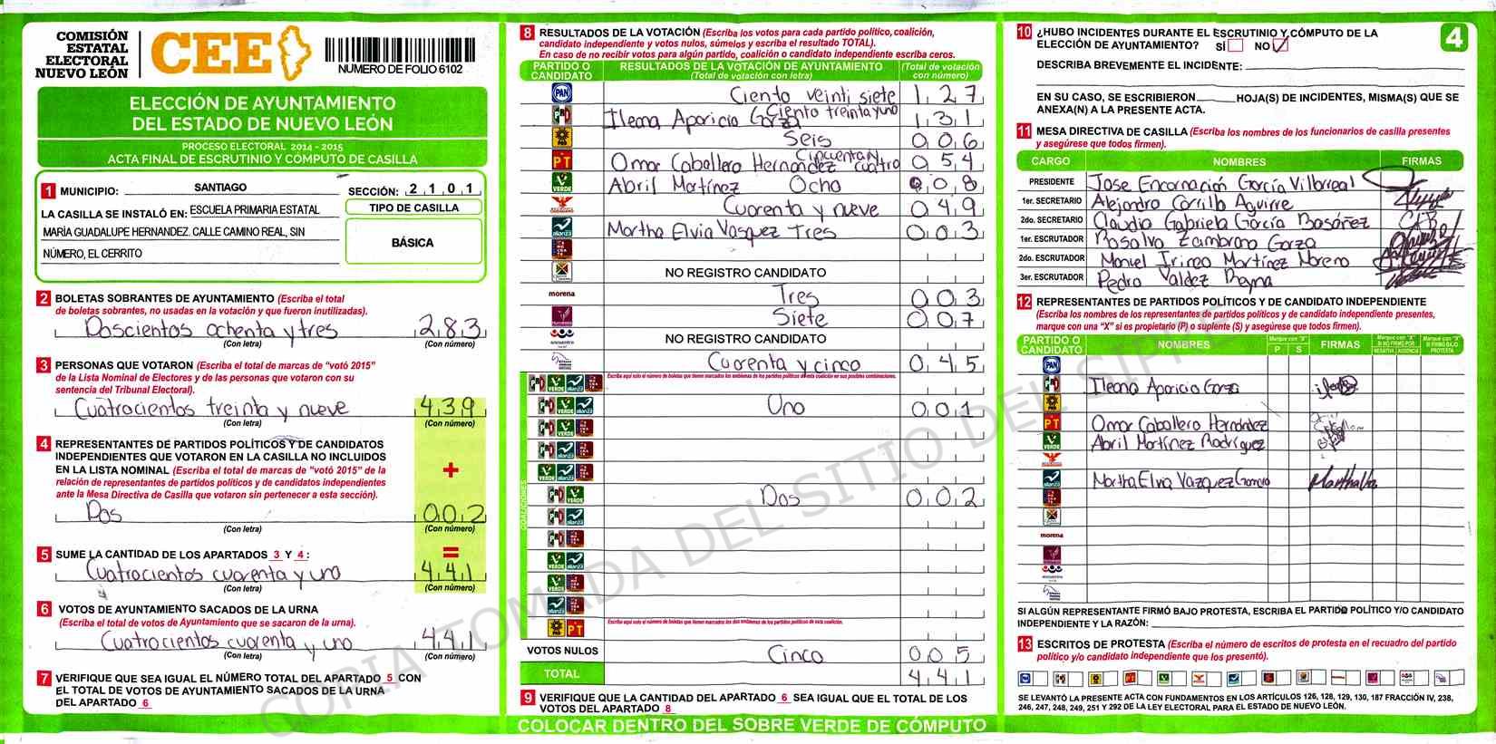 | Claves de Incidencia: | (1) Ilegible, (2) Mutilada, (3) Presenta Correcciones, (4) Presenta Borrones, (5) En Blanco, (6) Cifras Remarcadas, (7) Cifras de Mas, (8) Copiado Movido, (9) Con Signos Inválidos, (10) Excede Lista Nominal, (11) Otra |