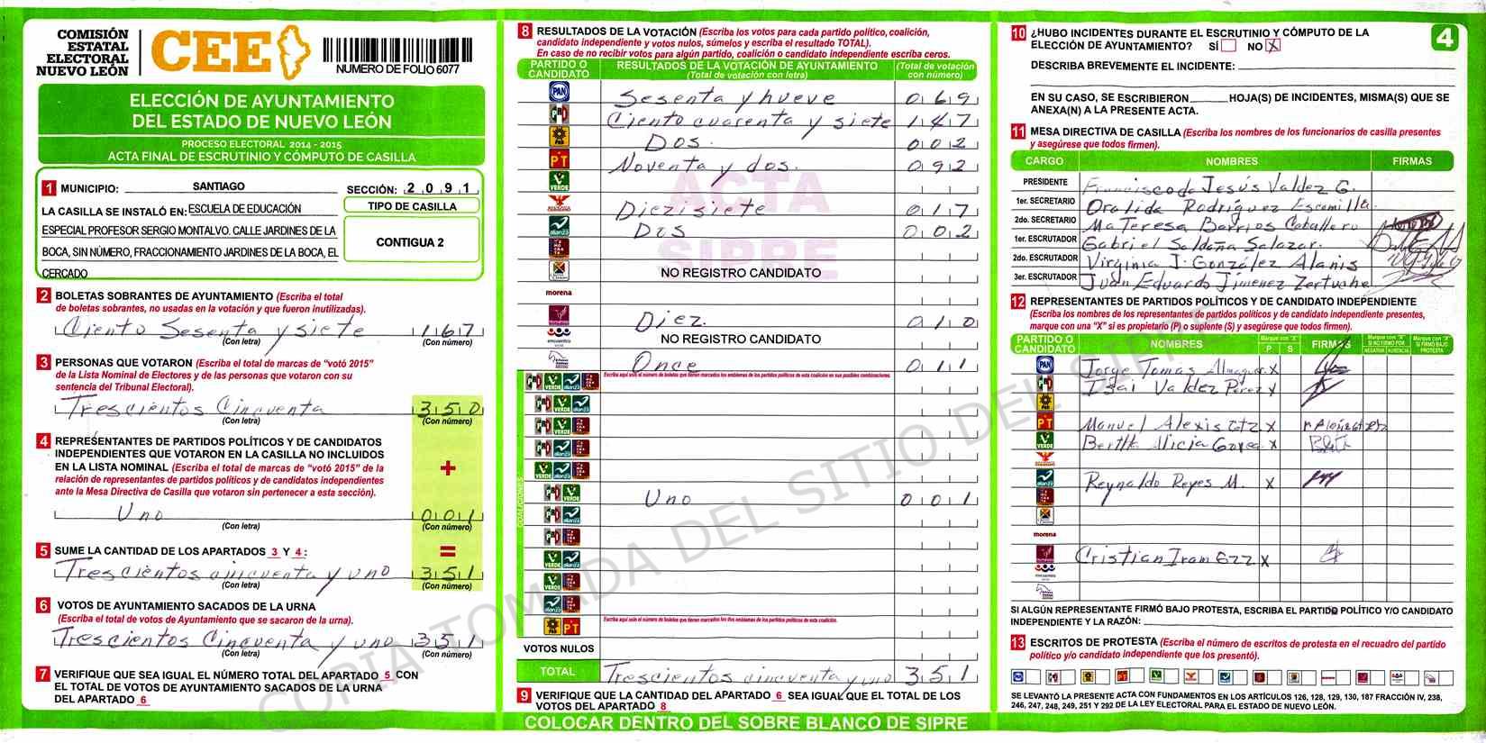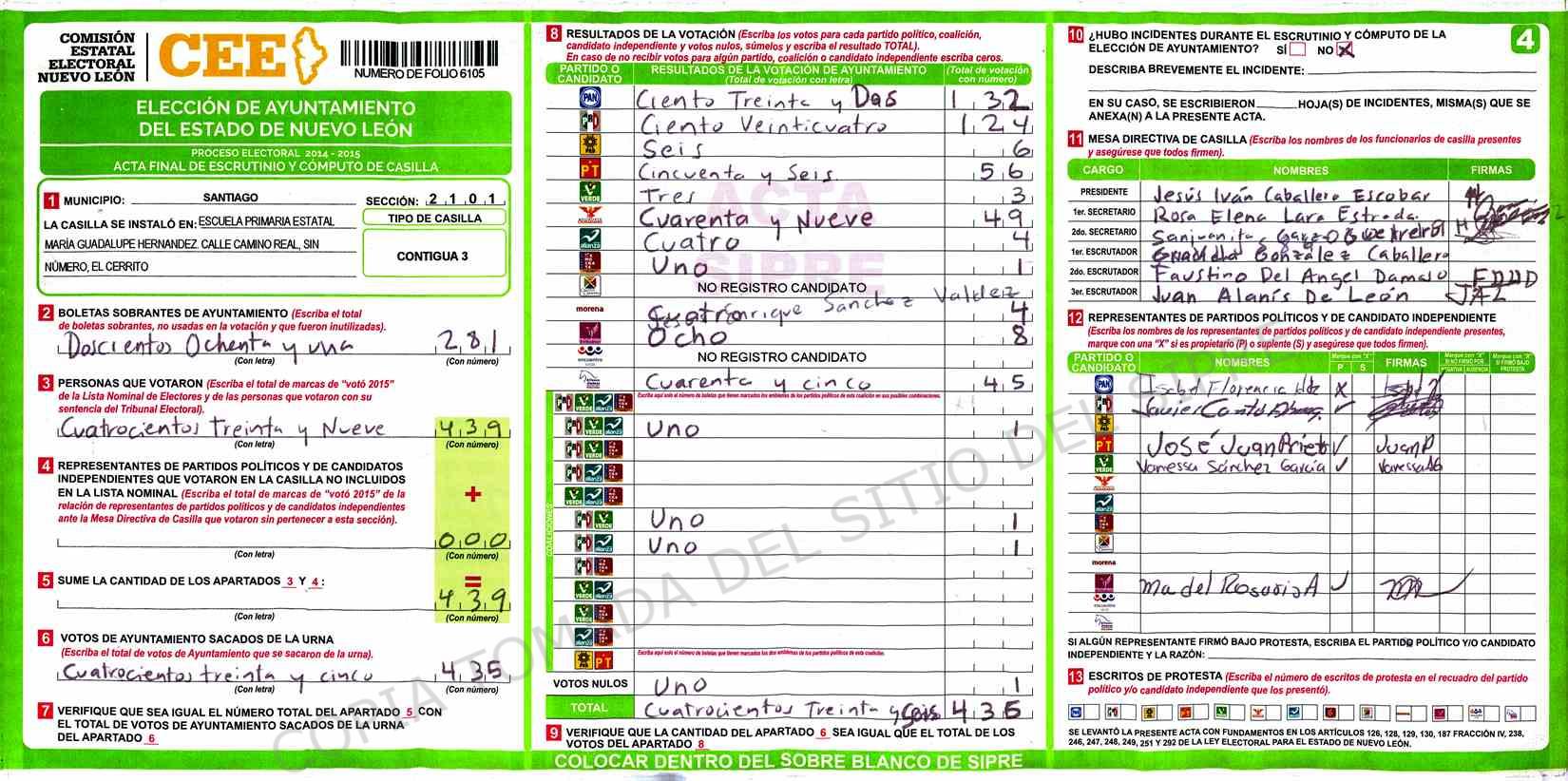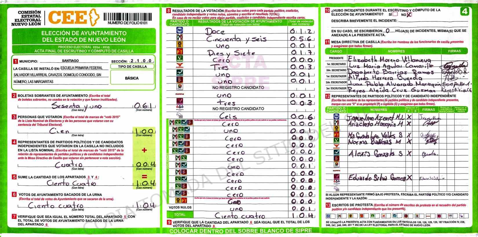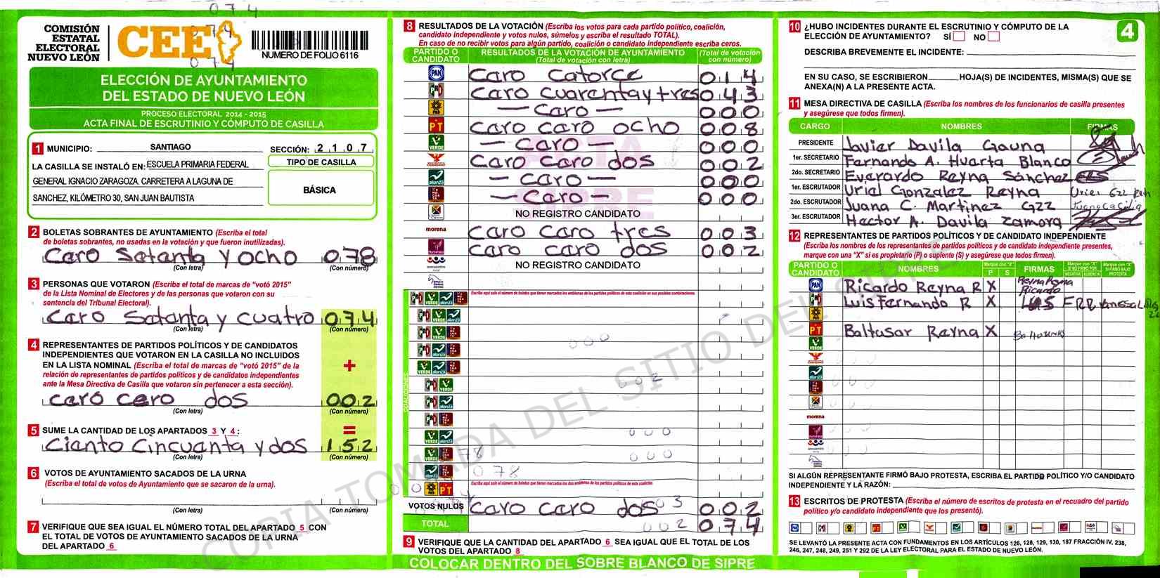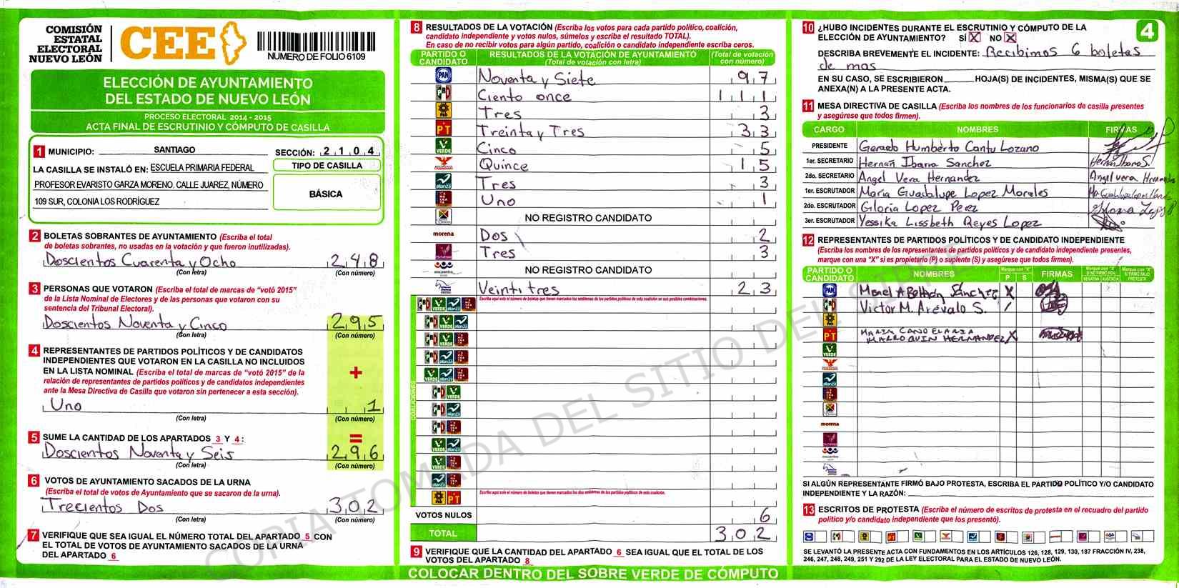 | Claves de Incidencia: | (1) Ilegible, (2) Mutilada, (3) Presenta Correcciones, (4) Presenta Borrones, (5) En Blanco, (6) Cifras Remarcadas, (7) Cifras de Mas, (8) Copiado Movido, (9) Con Signos Inválidos, (10) Excede Lista Nominal, (11) Otra |