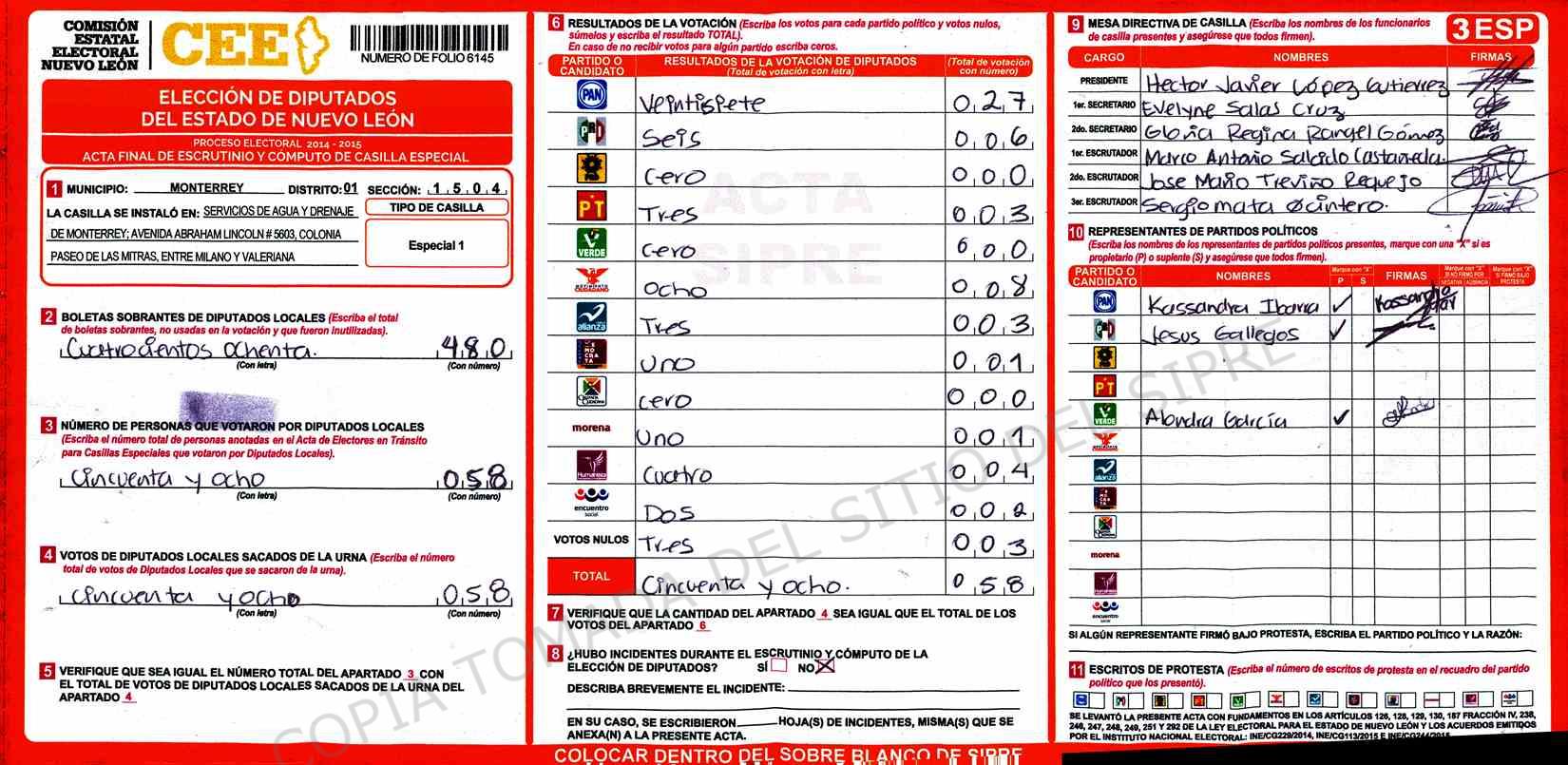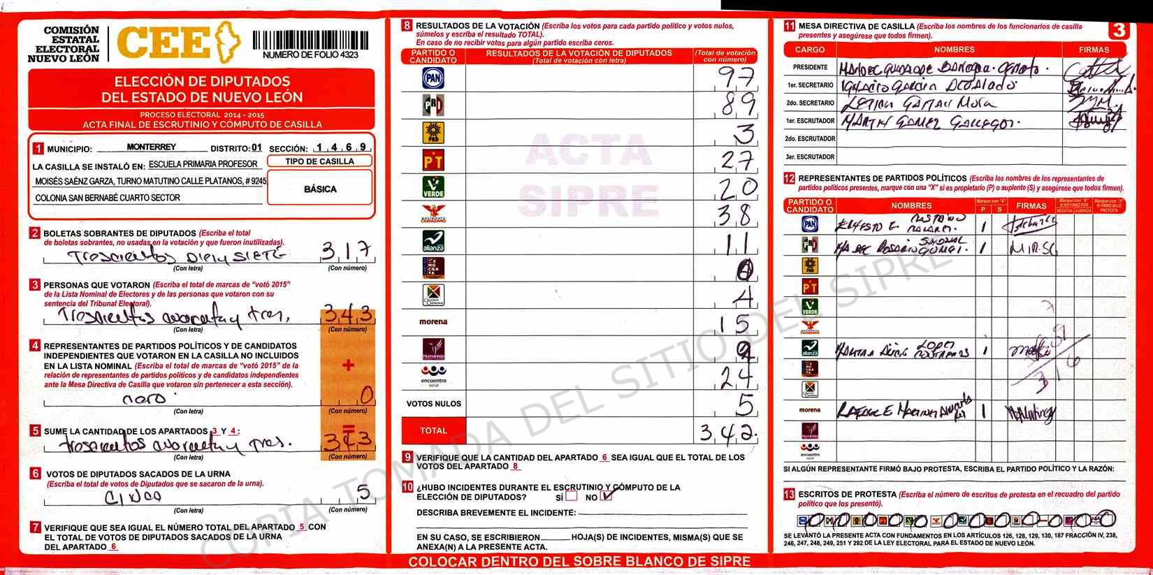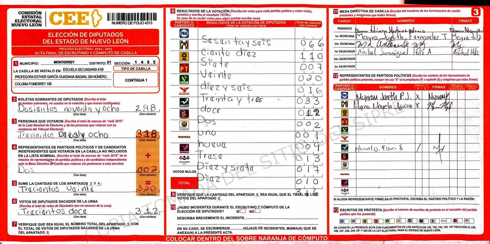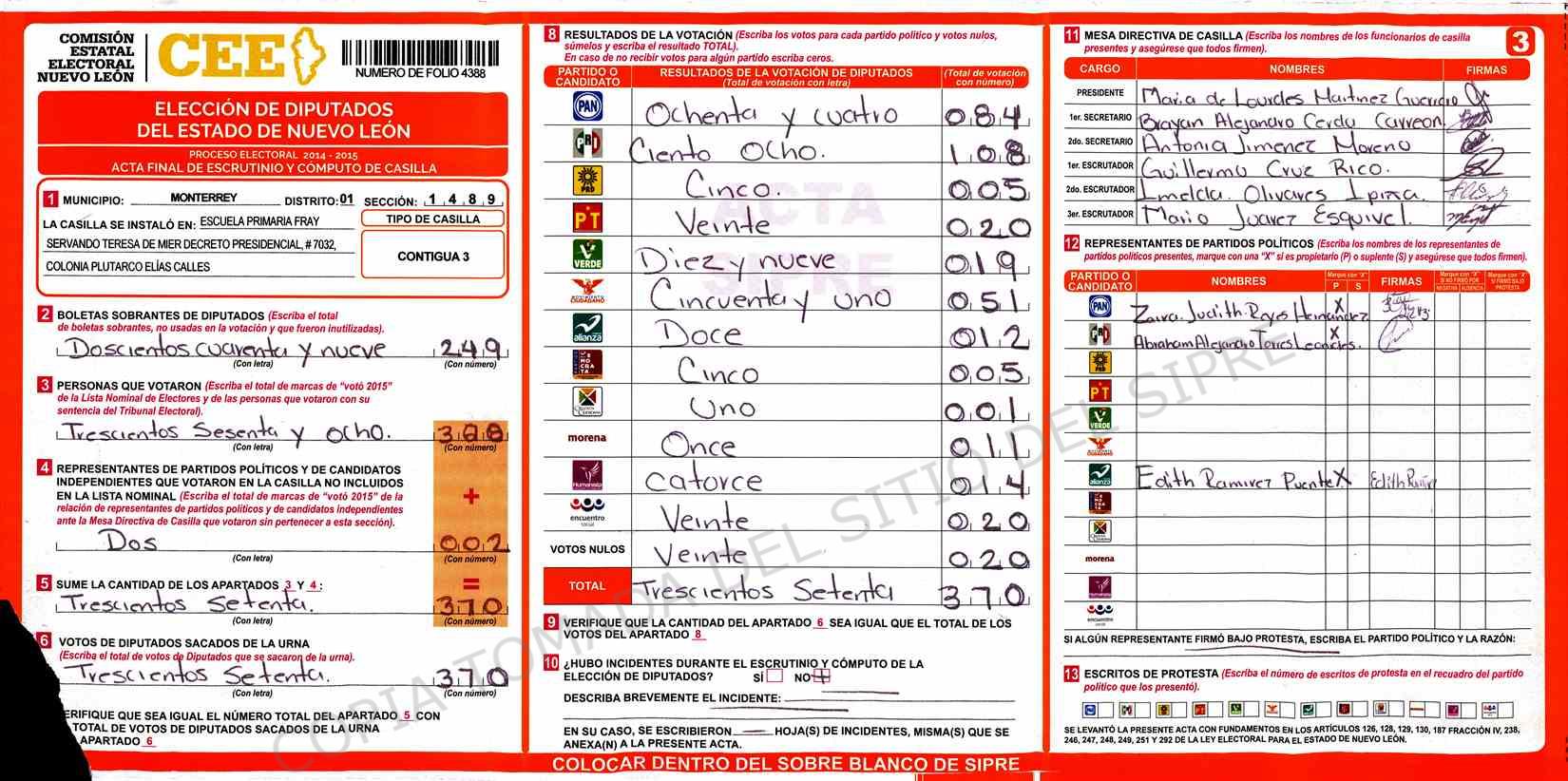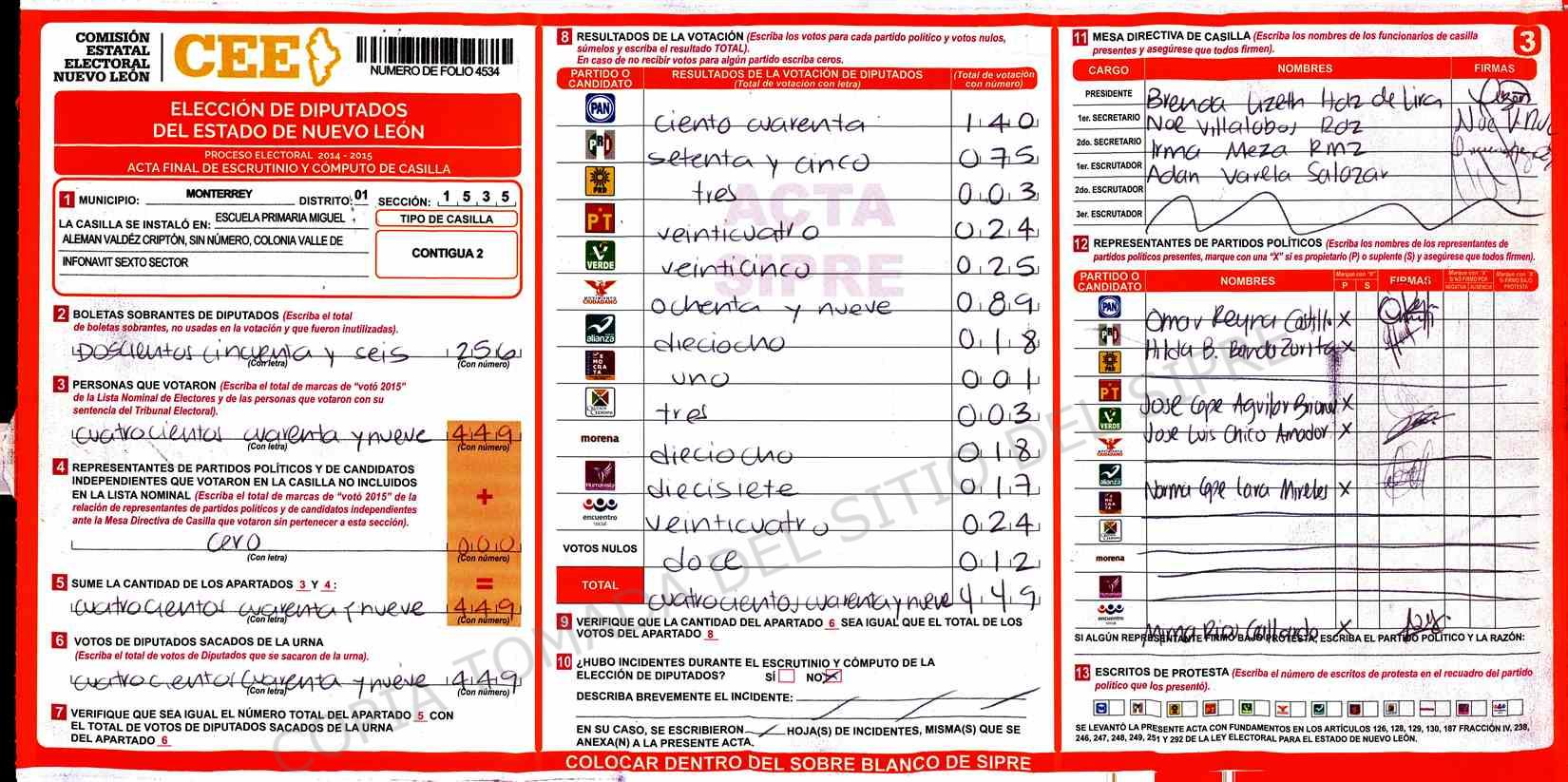 | Claves de Incidencia: | (1) Ilegible, (2) Mutilada, (3) Presenta Correcciones, (4) Presenta Borrones, (5) En Blanco, (6) Cifras Remarcadas, (7) Cifras de Mas, (8) Copiado Movido, (9) Con Signos Inválidos, (10) Excede Lista Nominal, (11) Otra |