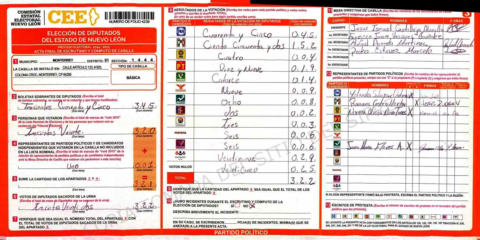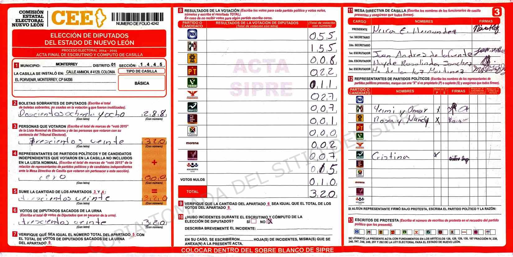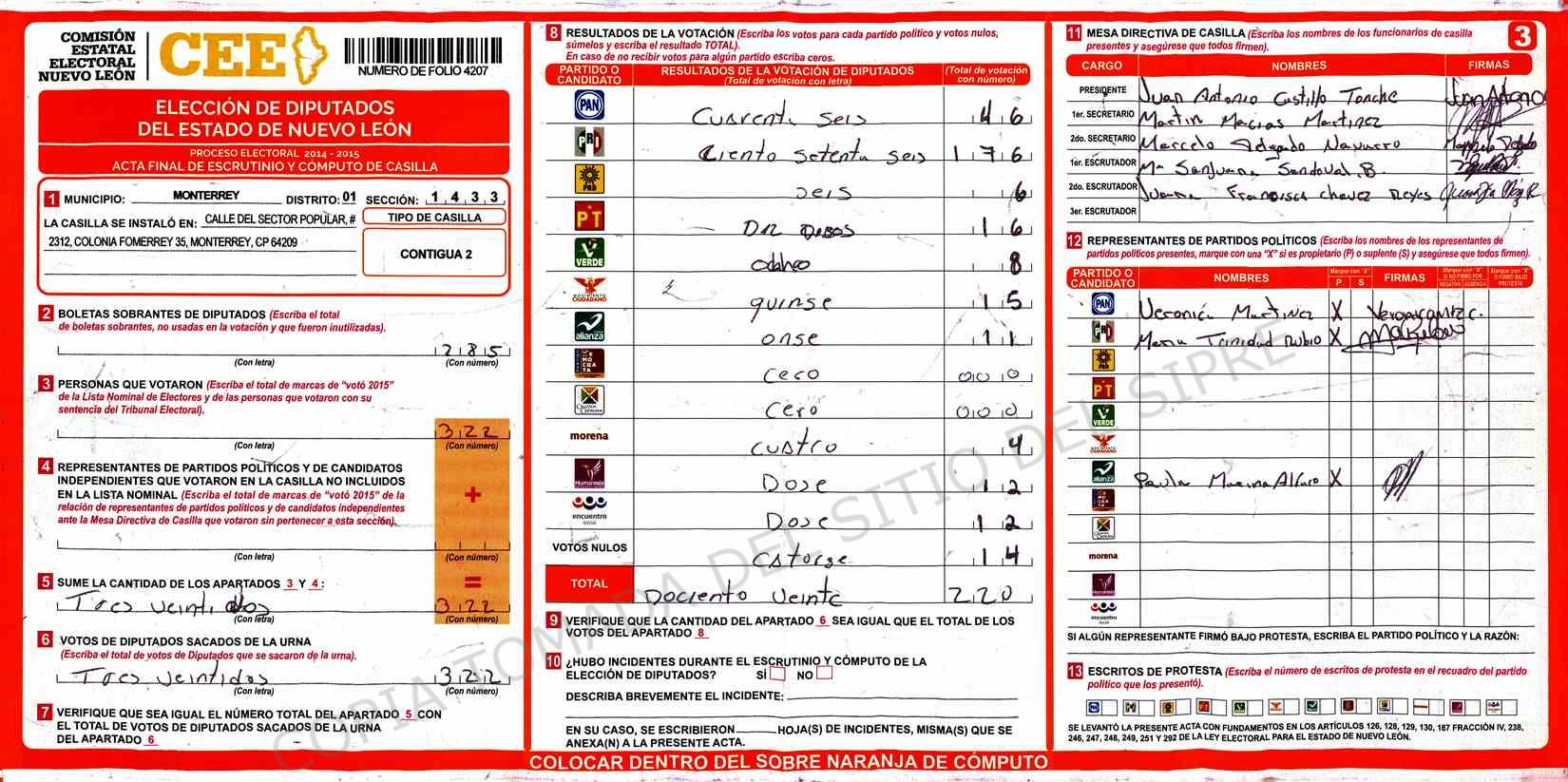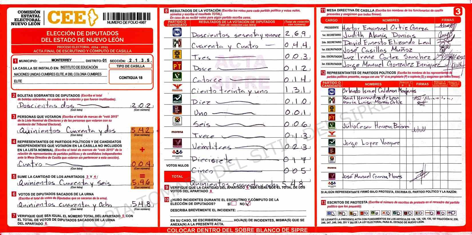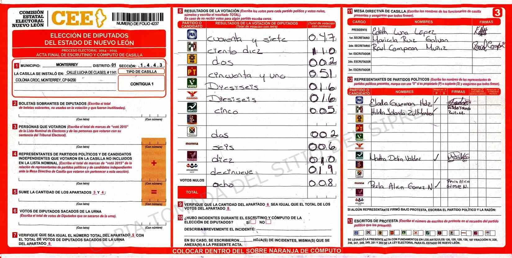 | Sección | Casilla | Hora | ![]() |