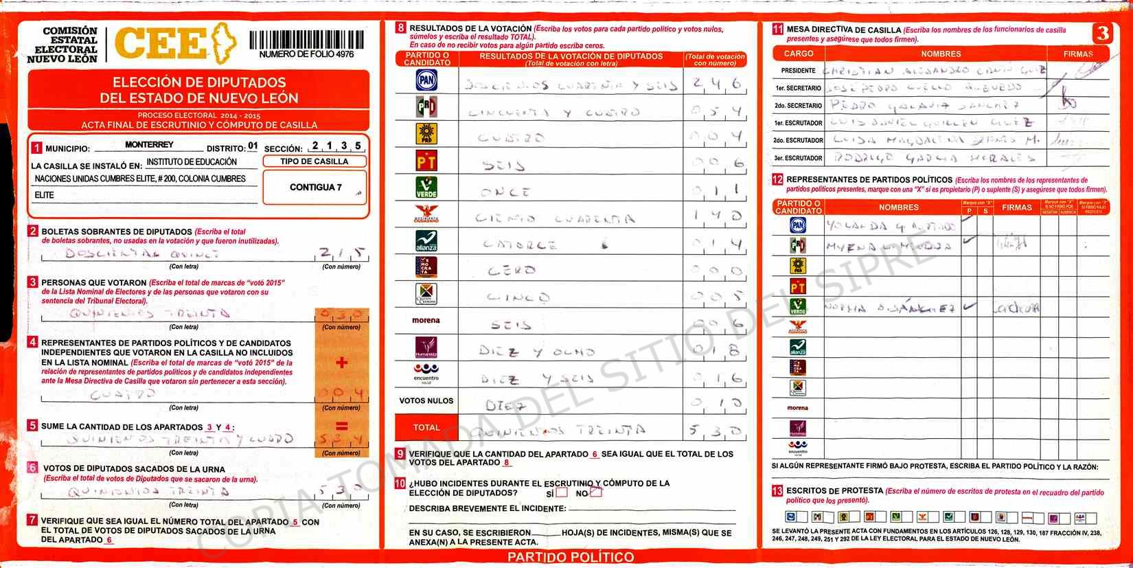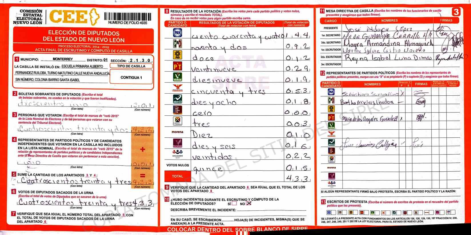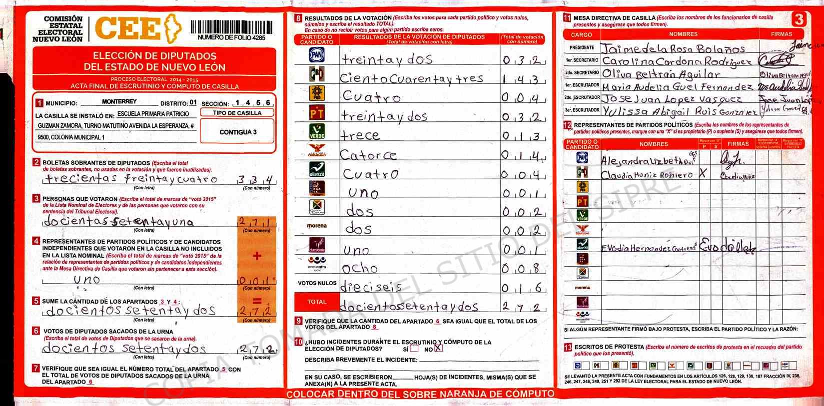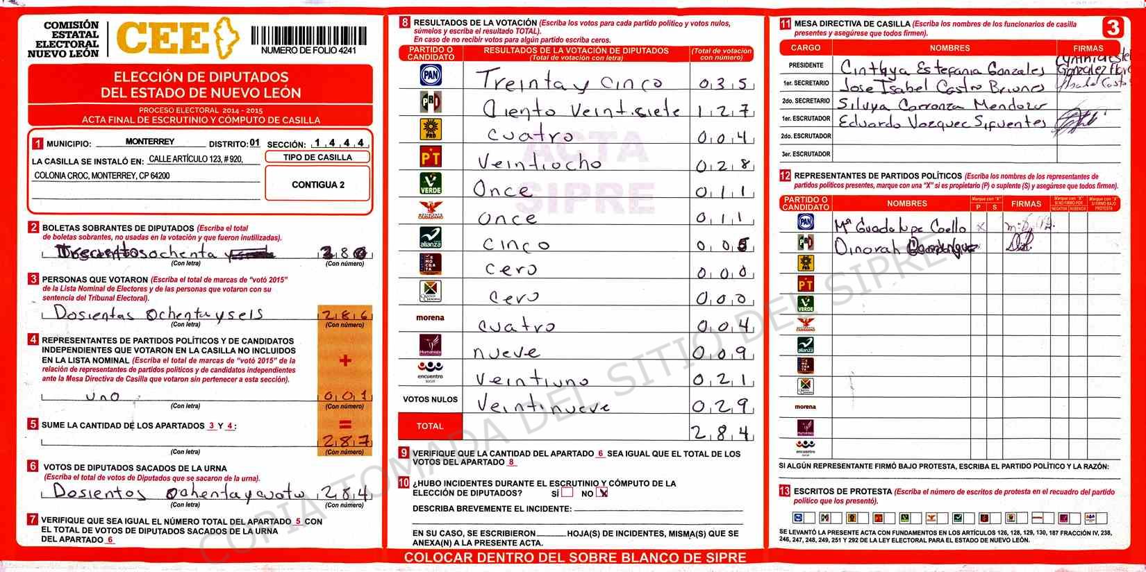 | Sección | Casilla | Hora | ![]() |