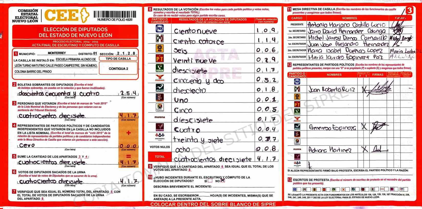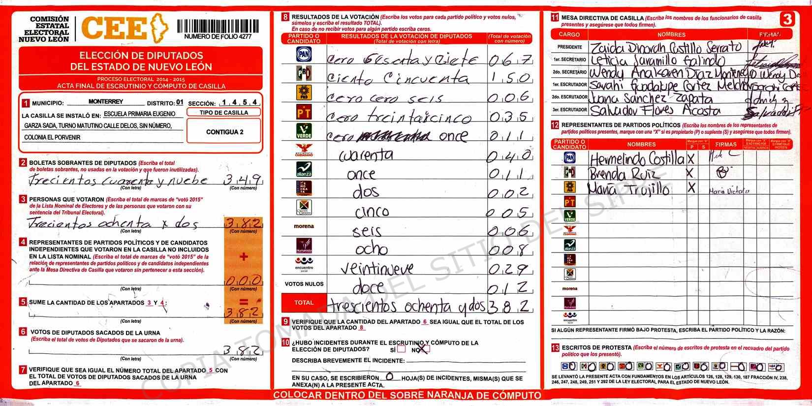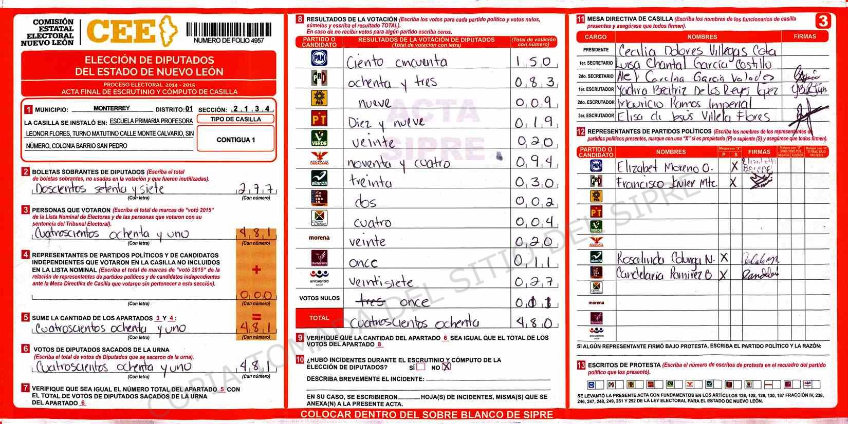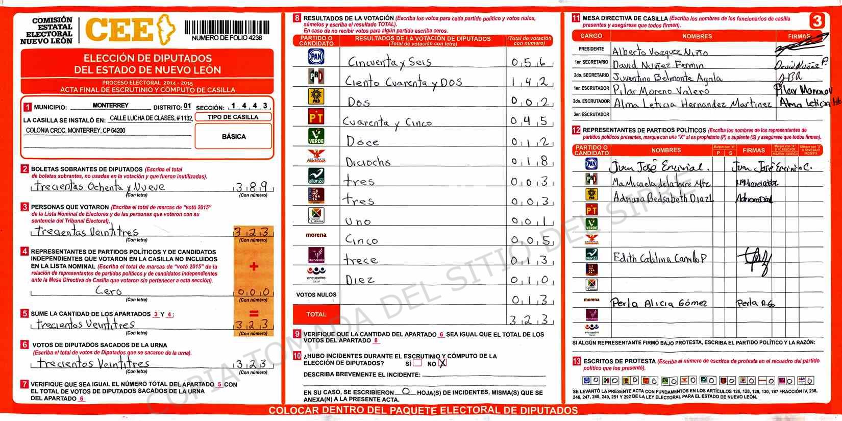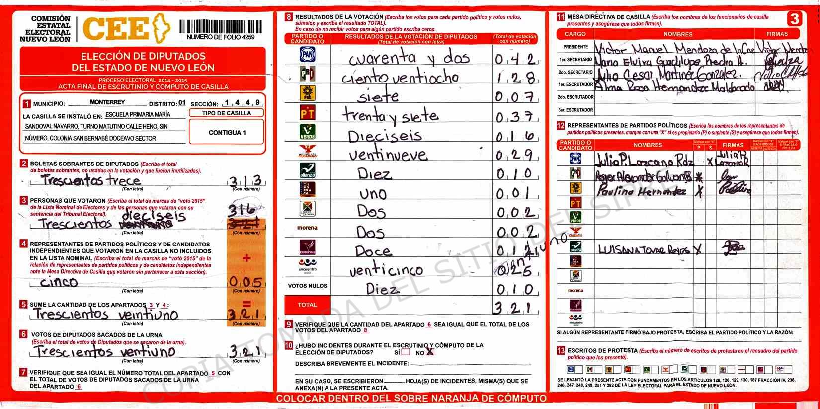 | Sección | Casilla | Hora | ![]() |