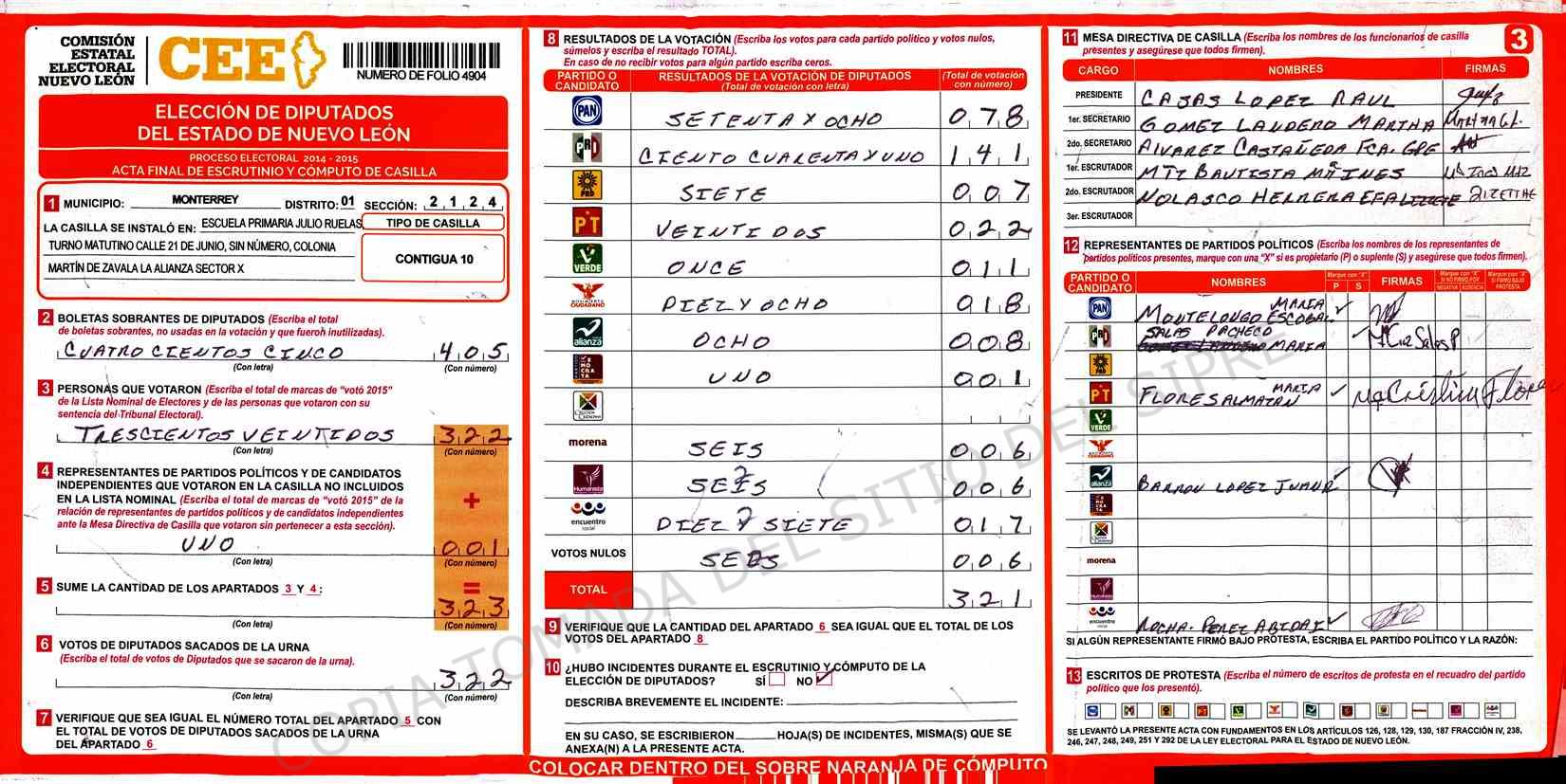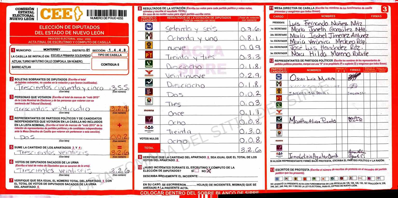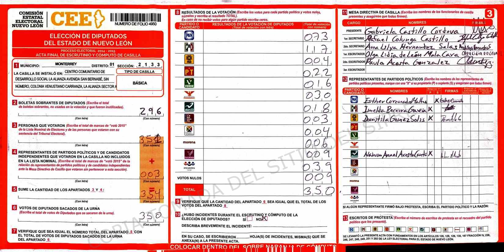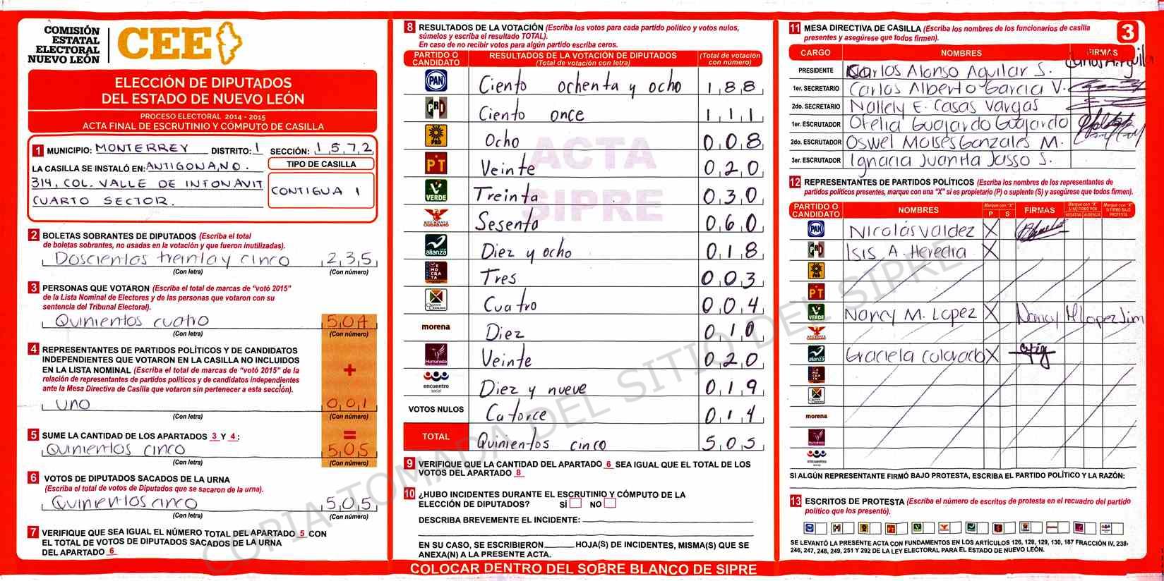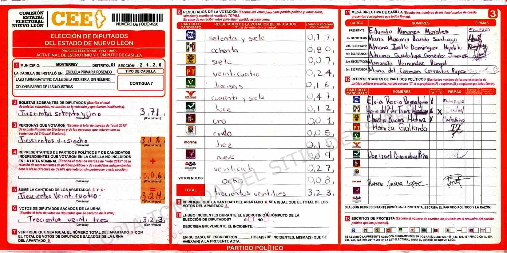 | Sección | Casilla | Hora | ![]() |