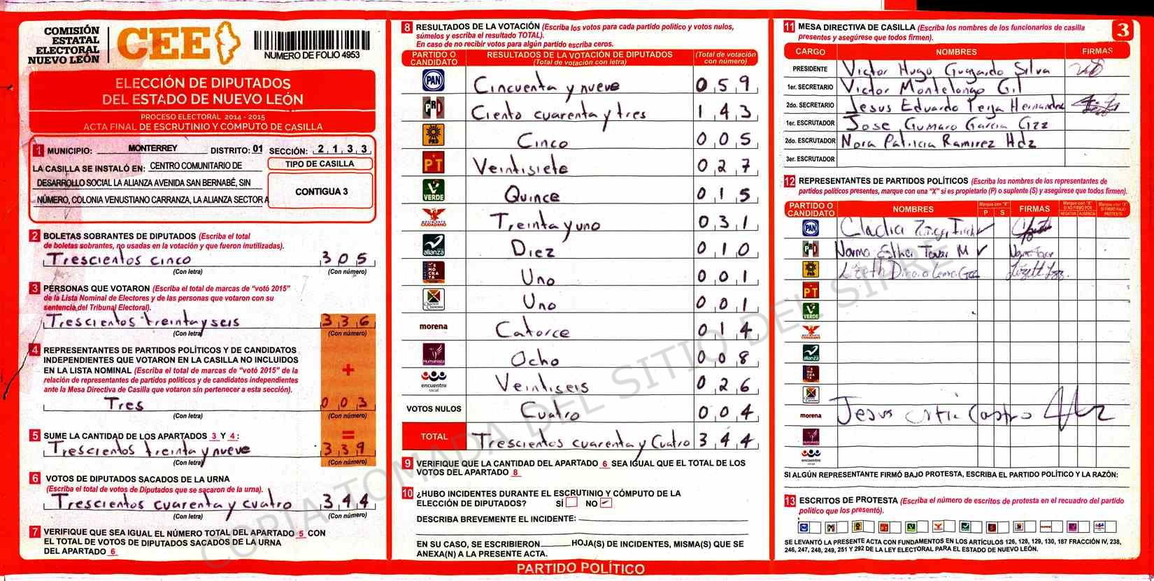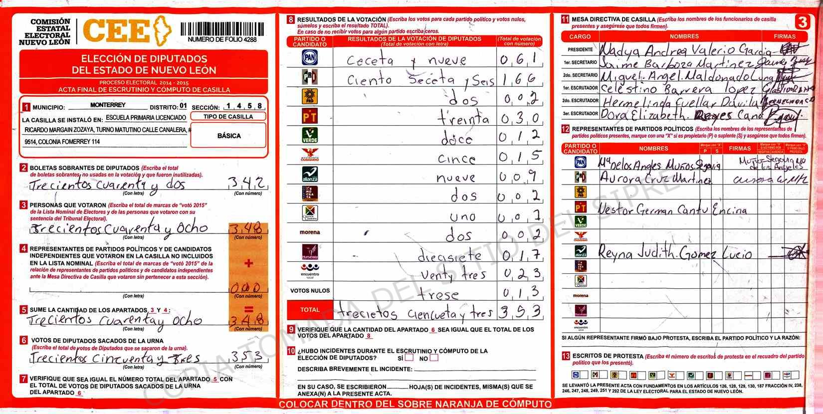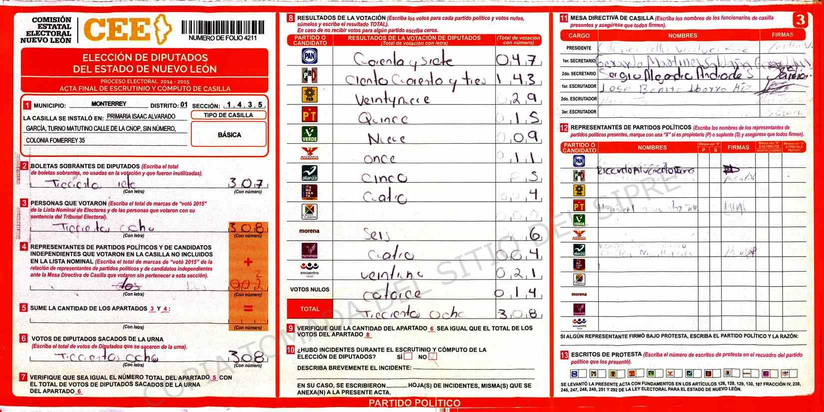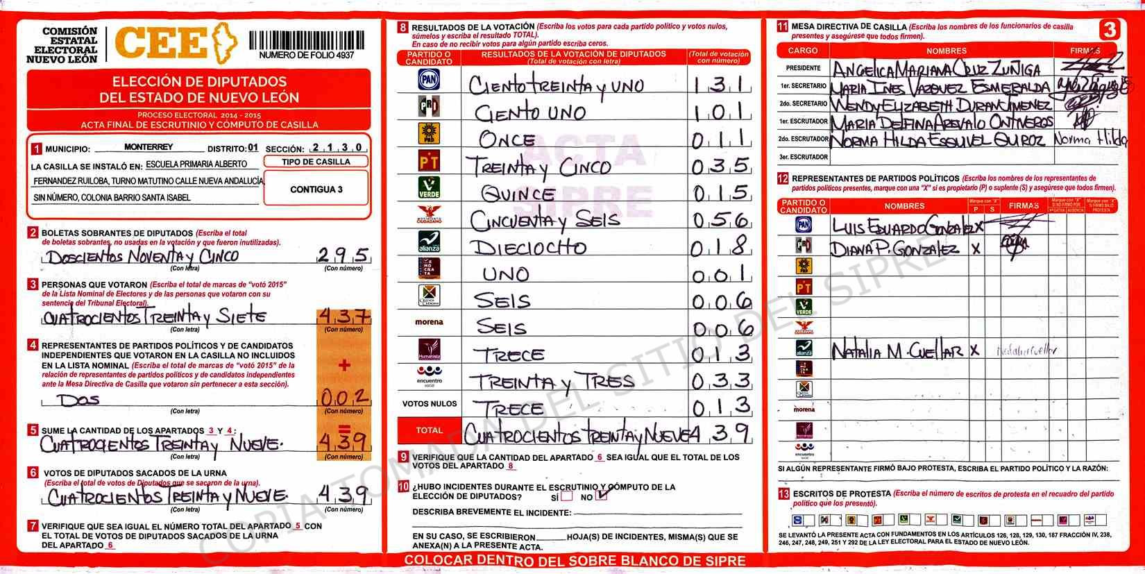 | Sección | Casilla | Hora | ![]() |