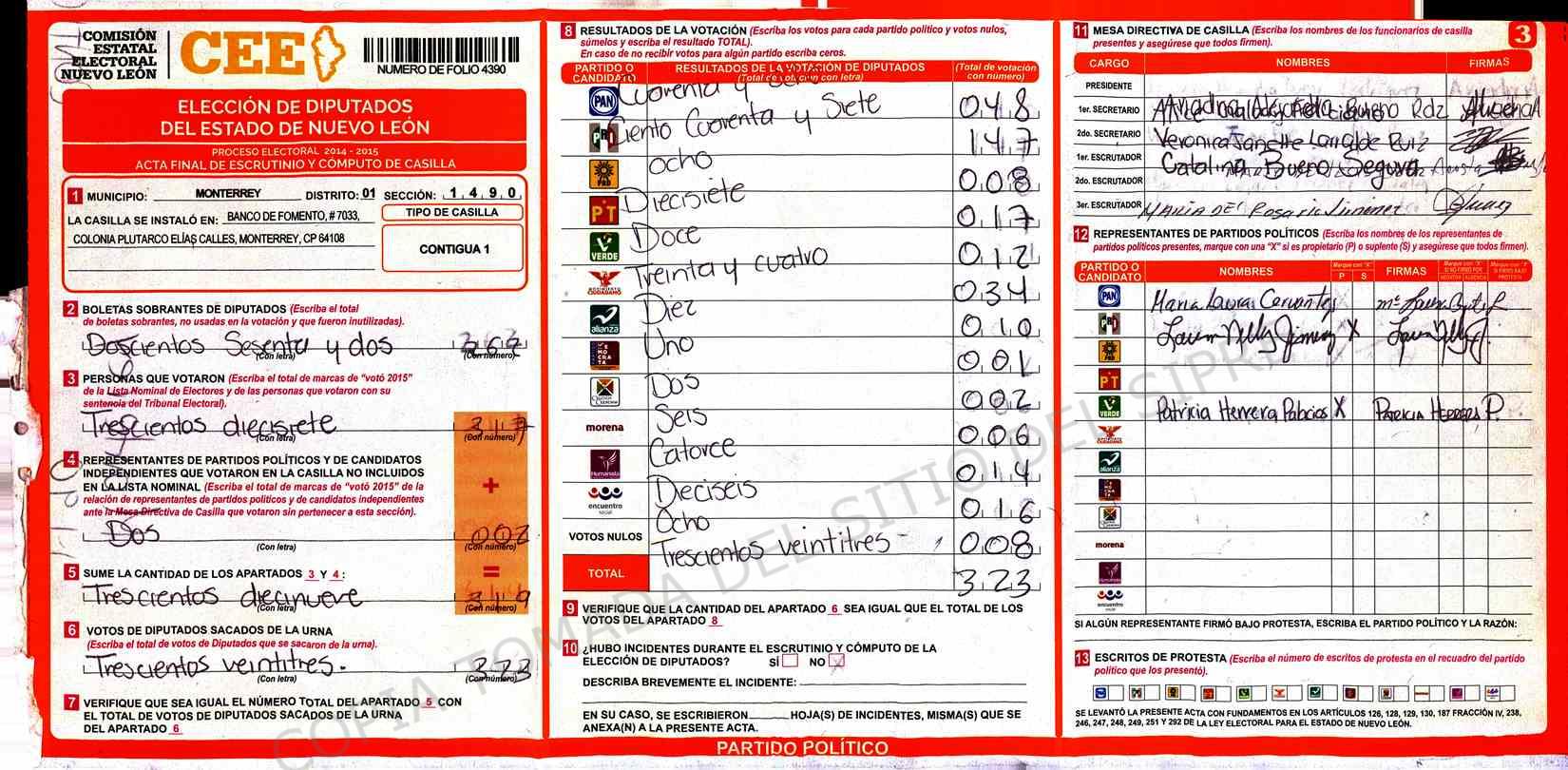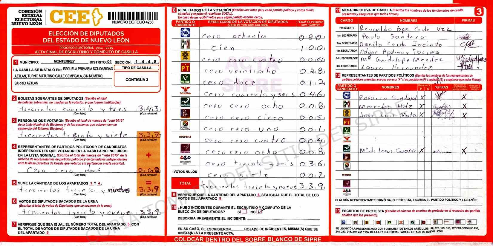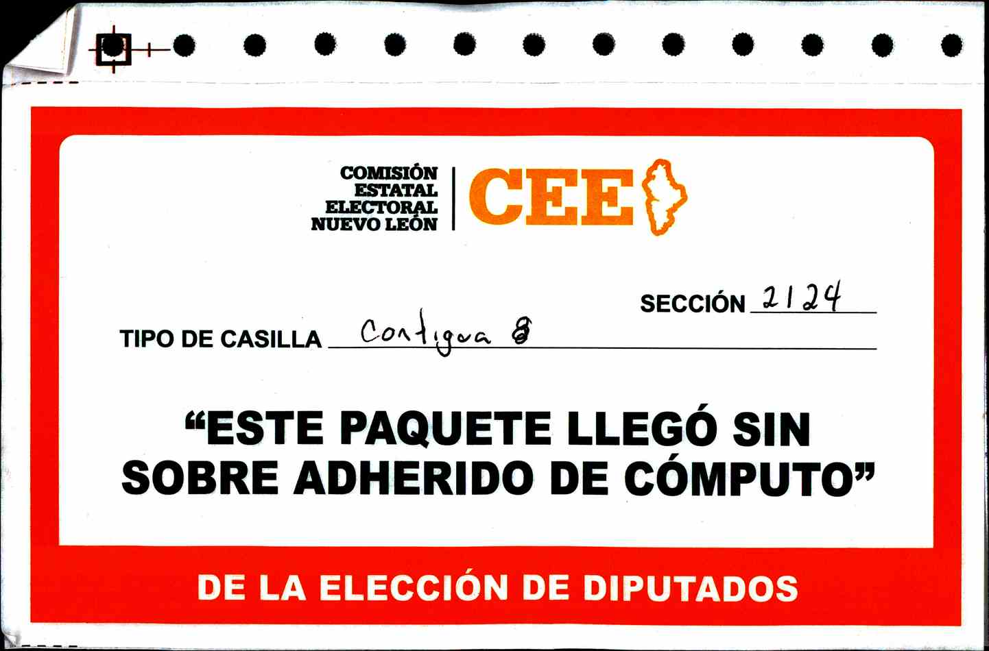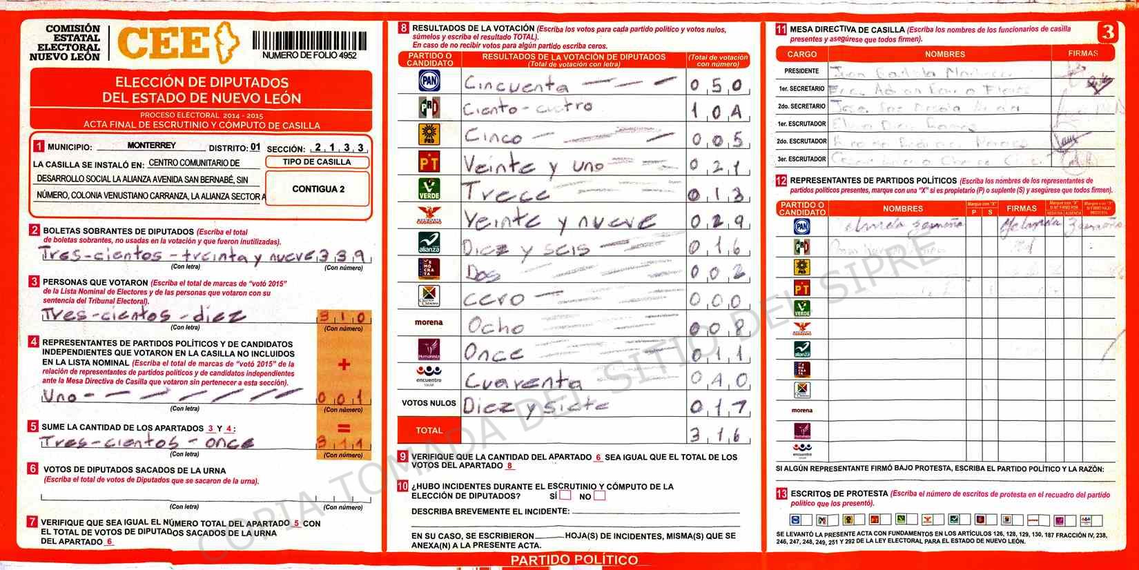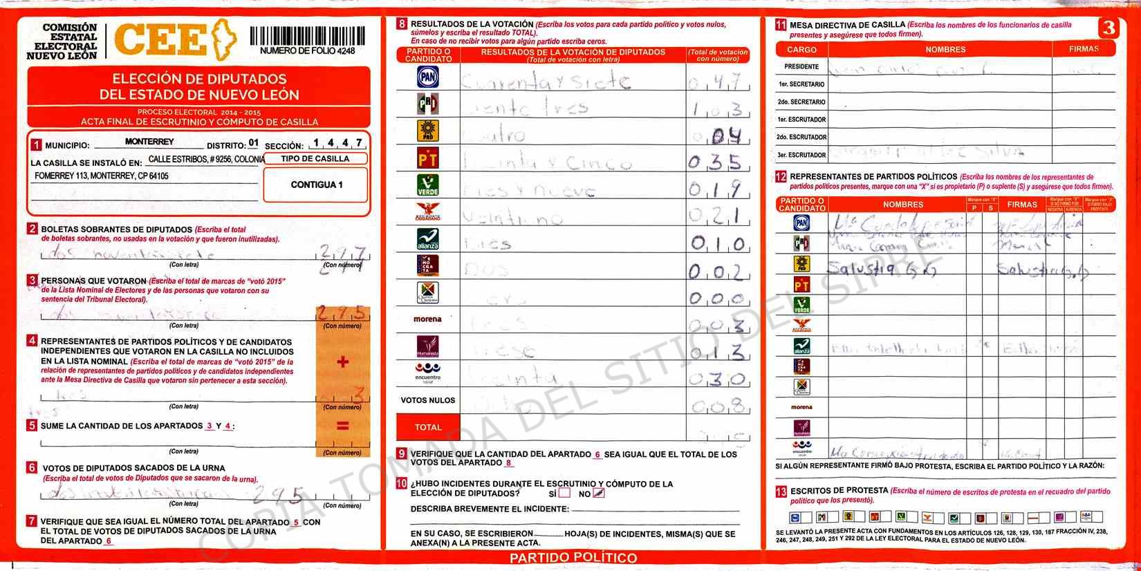 | Sección | Casilla | Hora | ![]() |