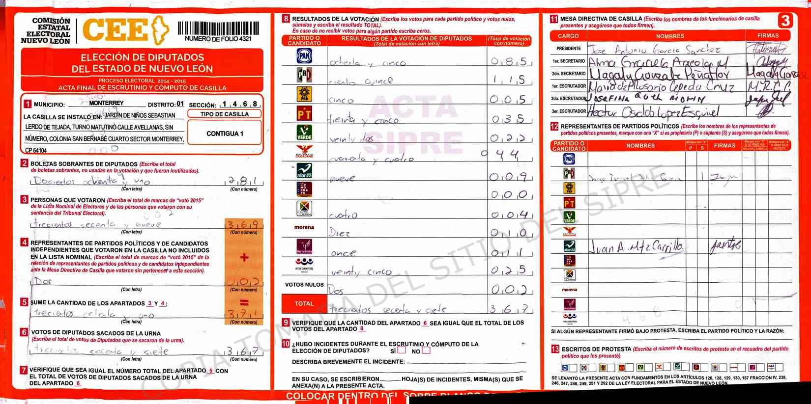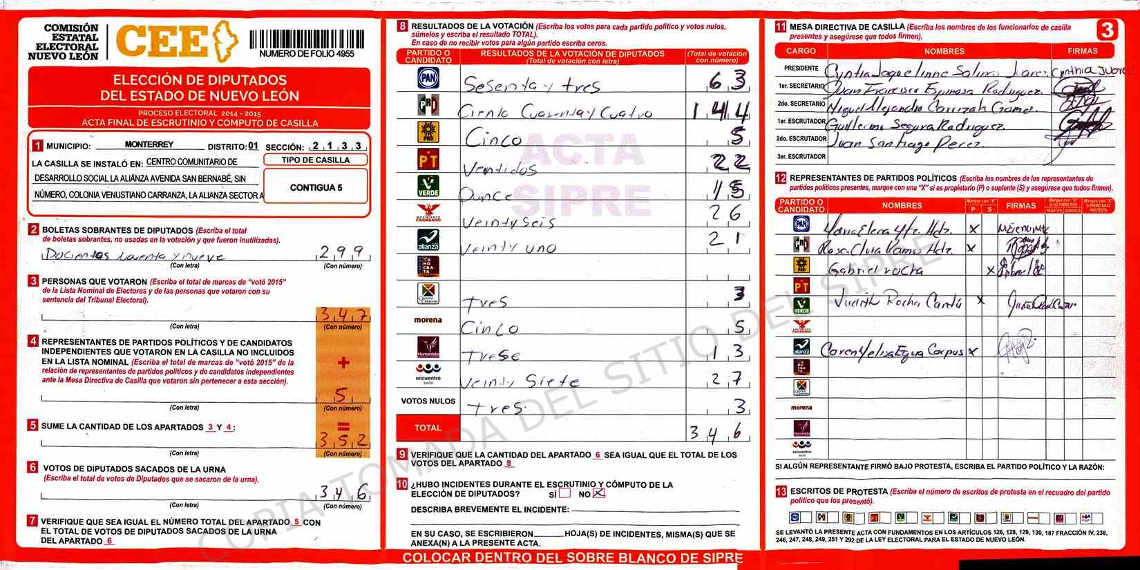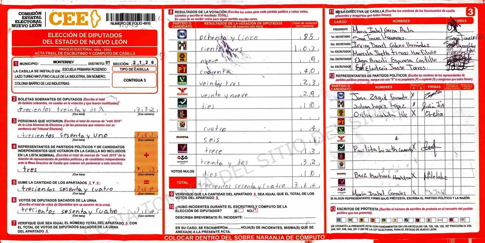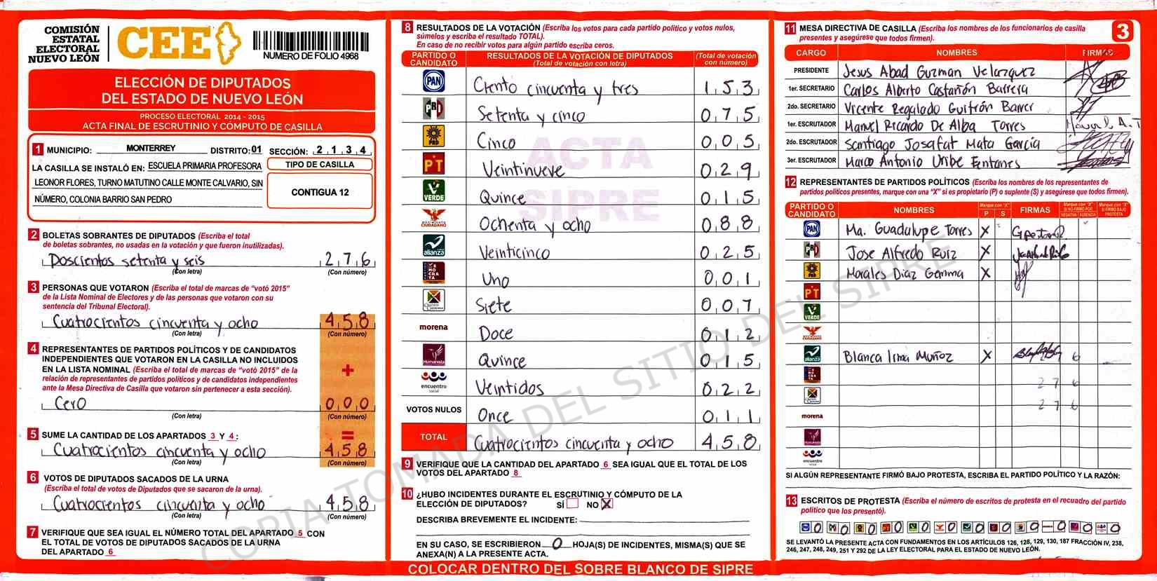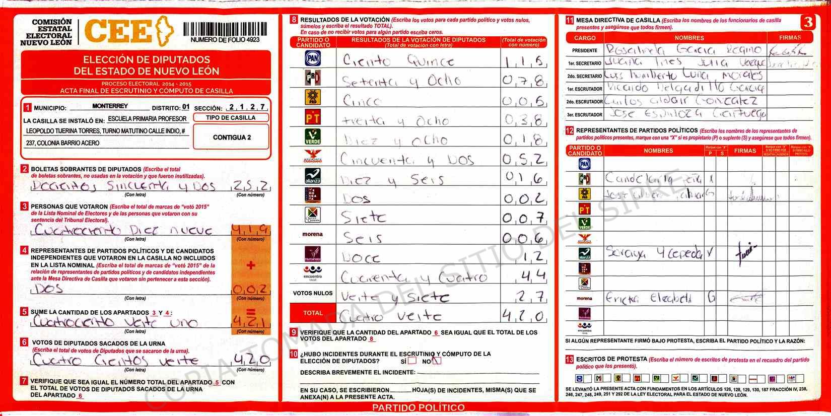 | Sección | Casilla | Hora | ![]() |