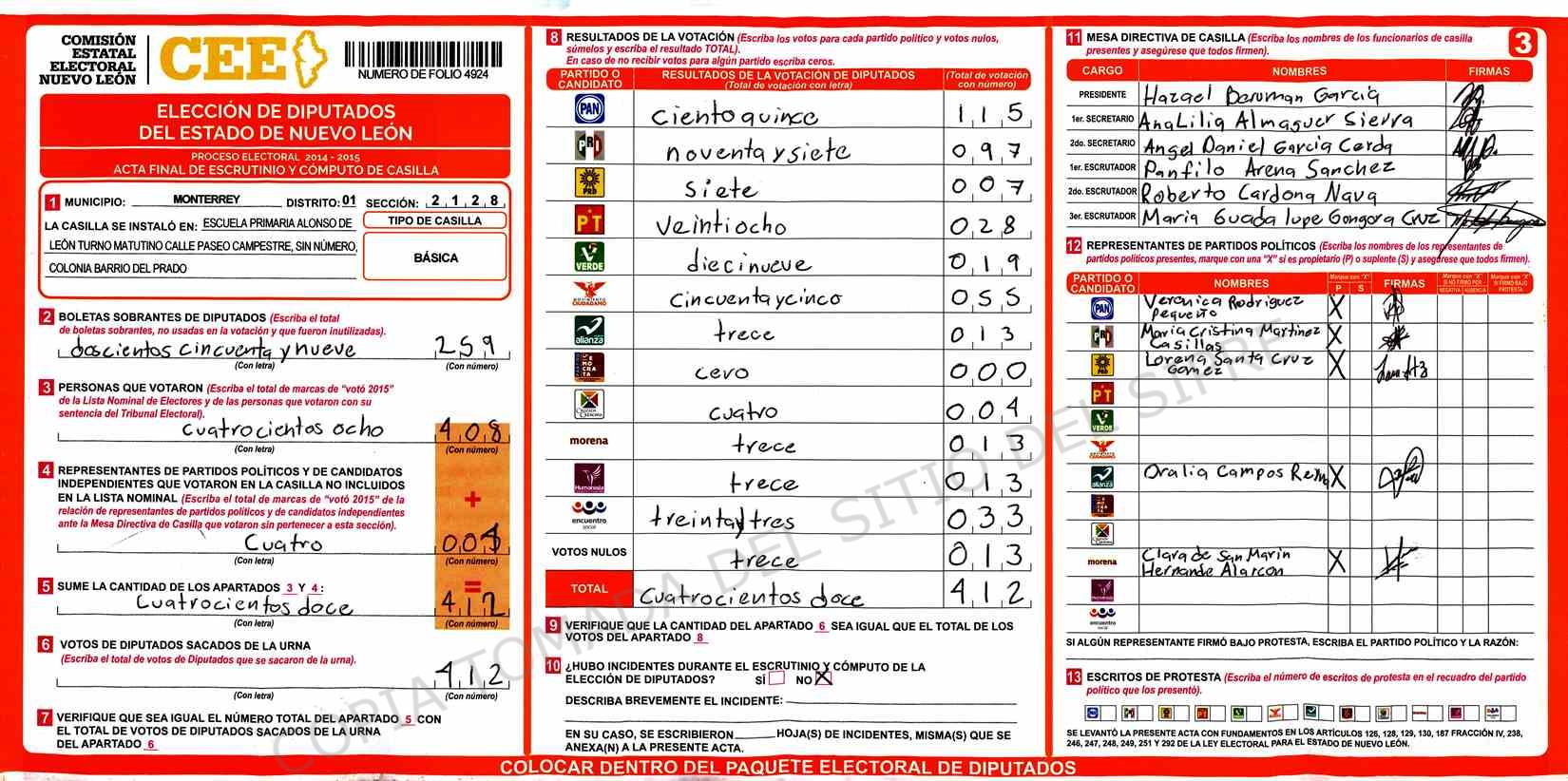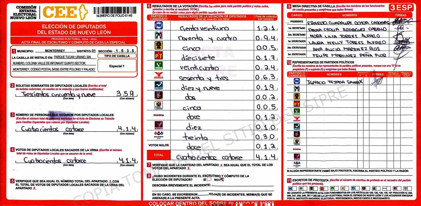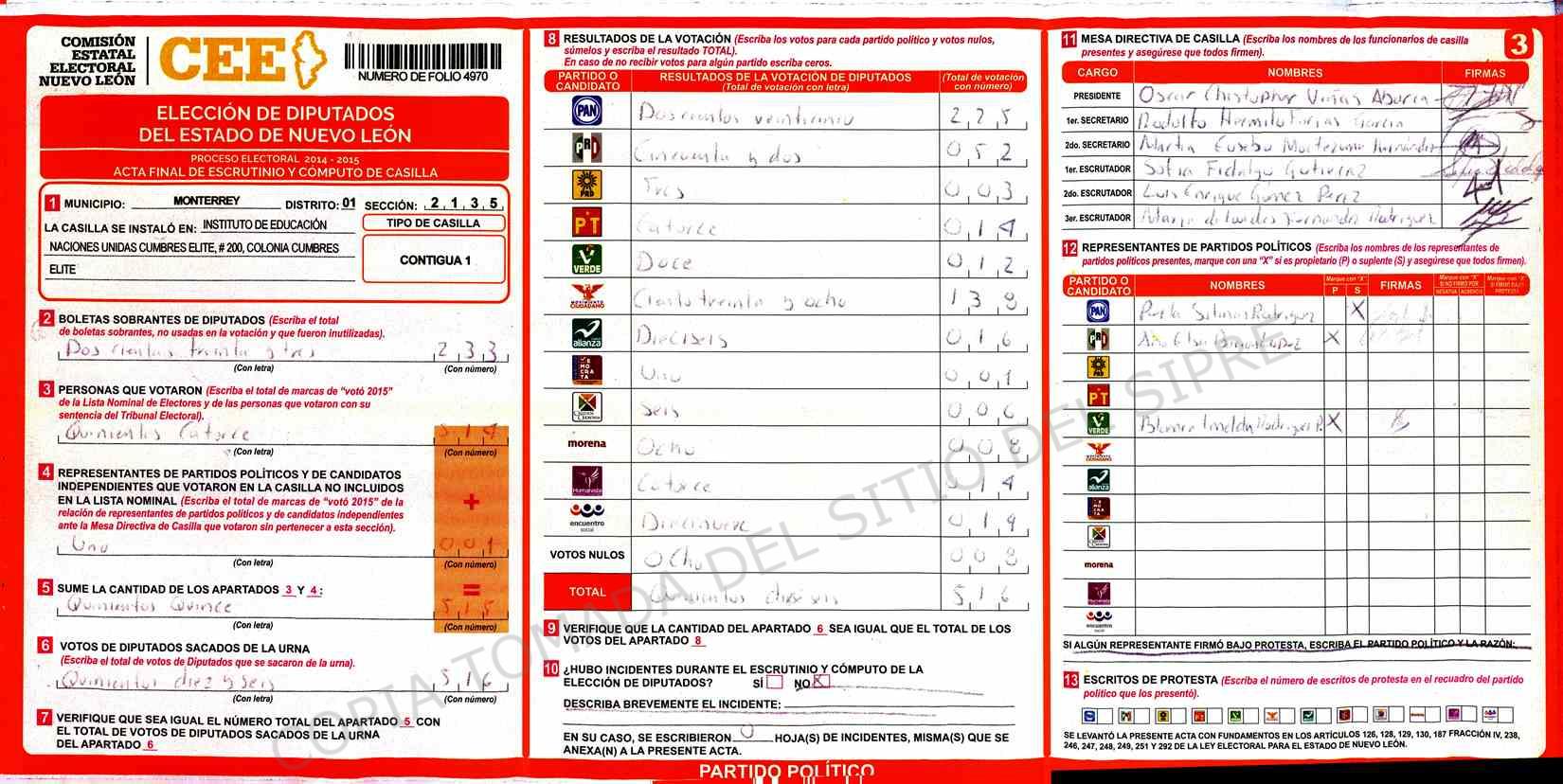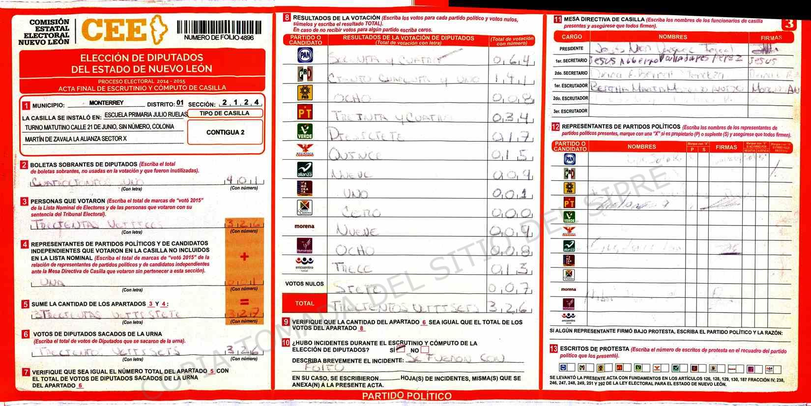 | Sección | Casilla | Hora | ![]() |