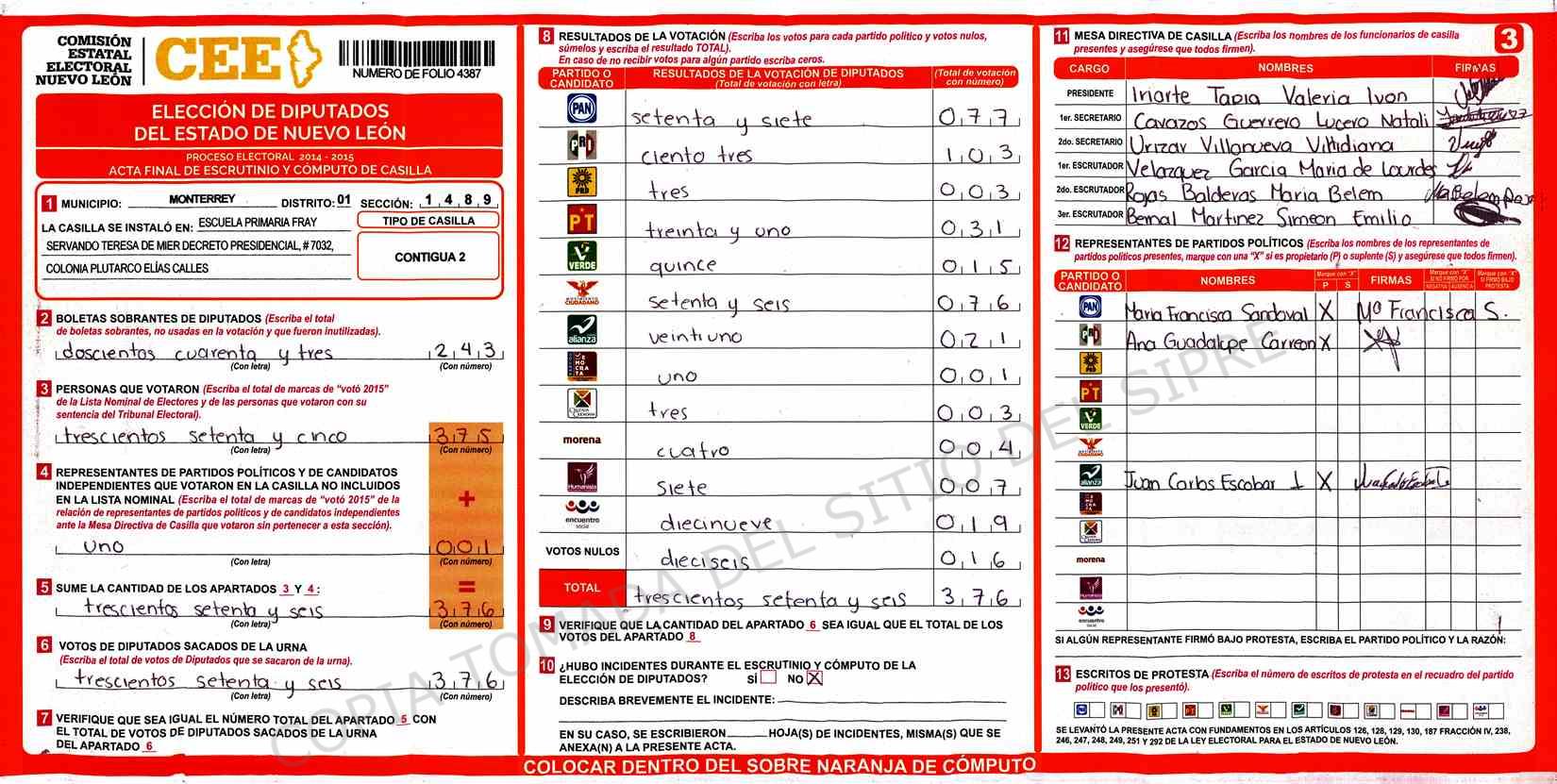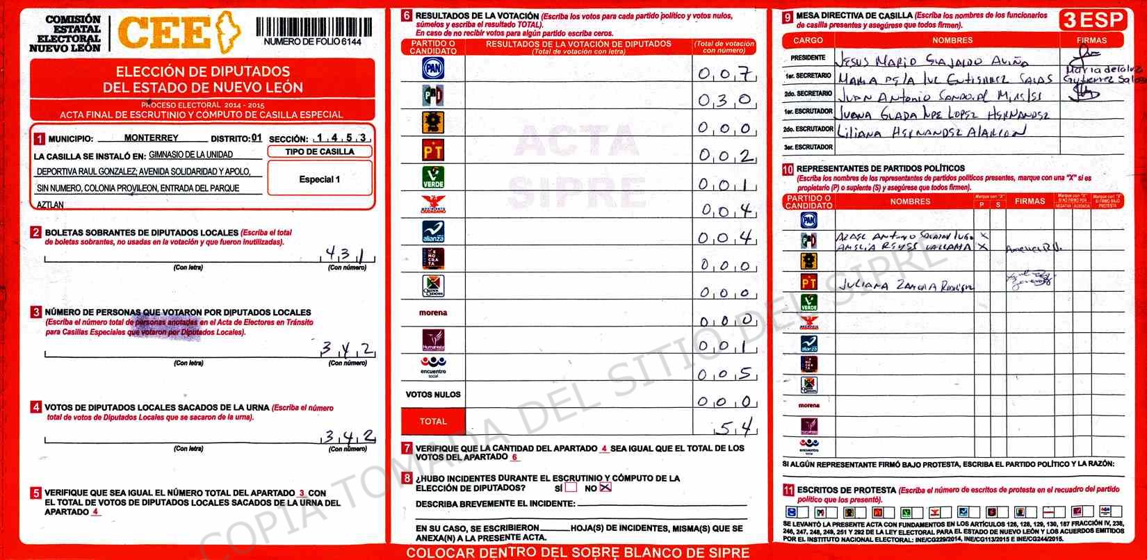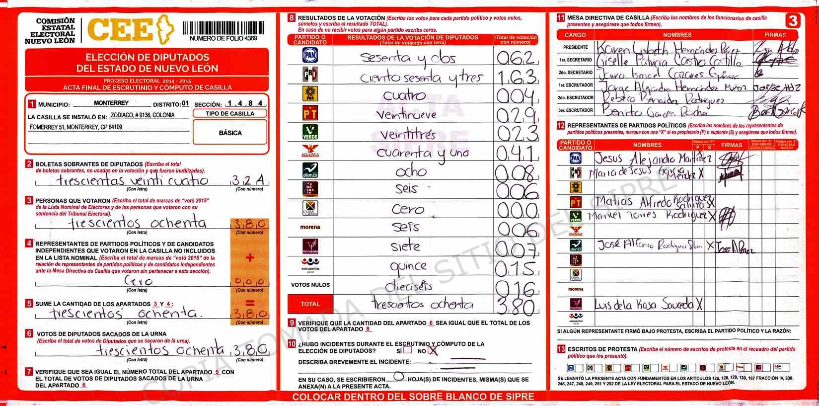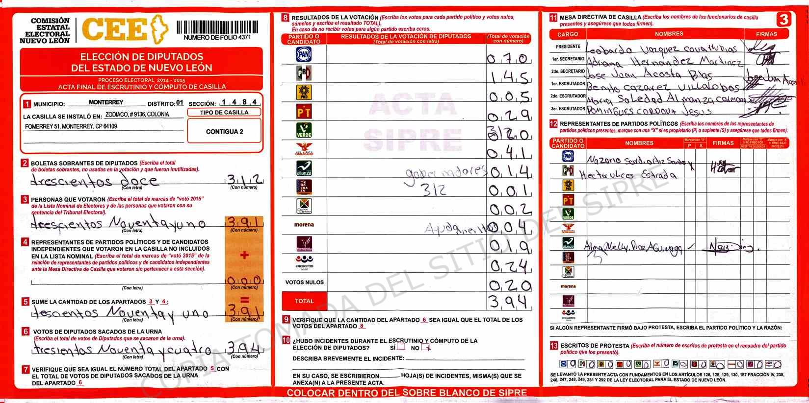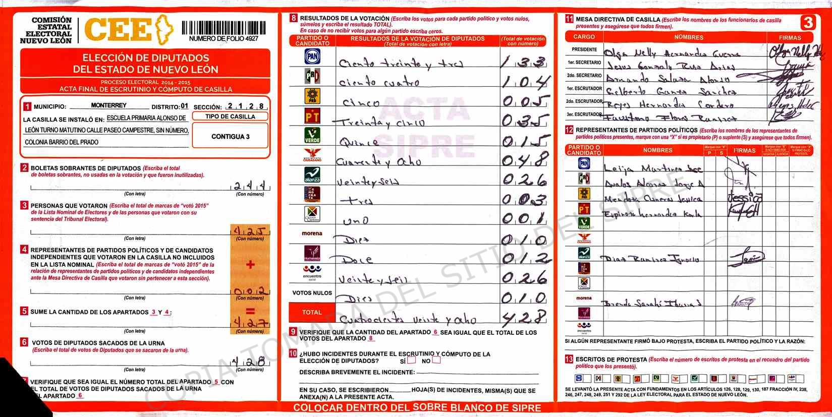 | Sección | Casilla | Hora | ![]() |