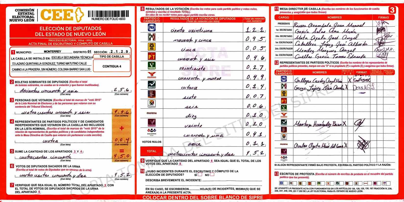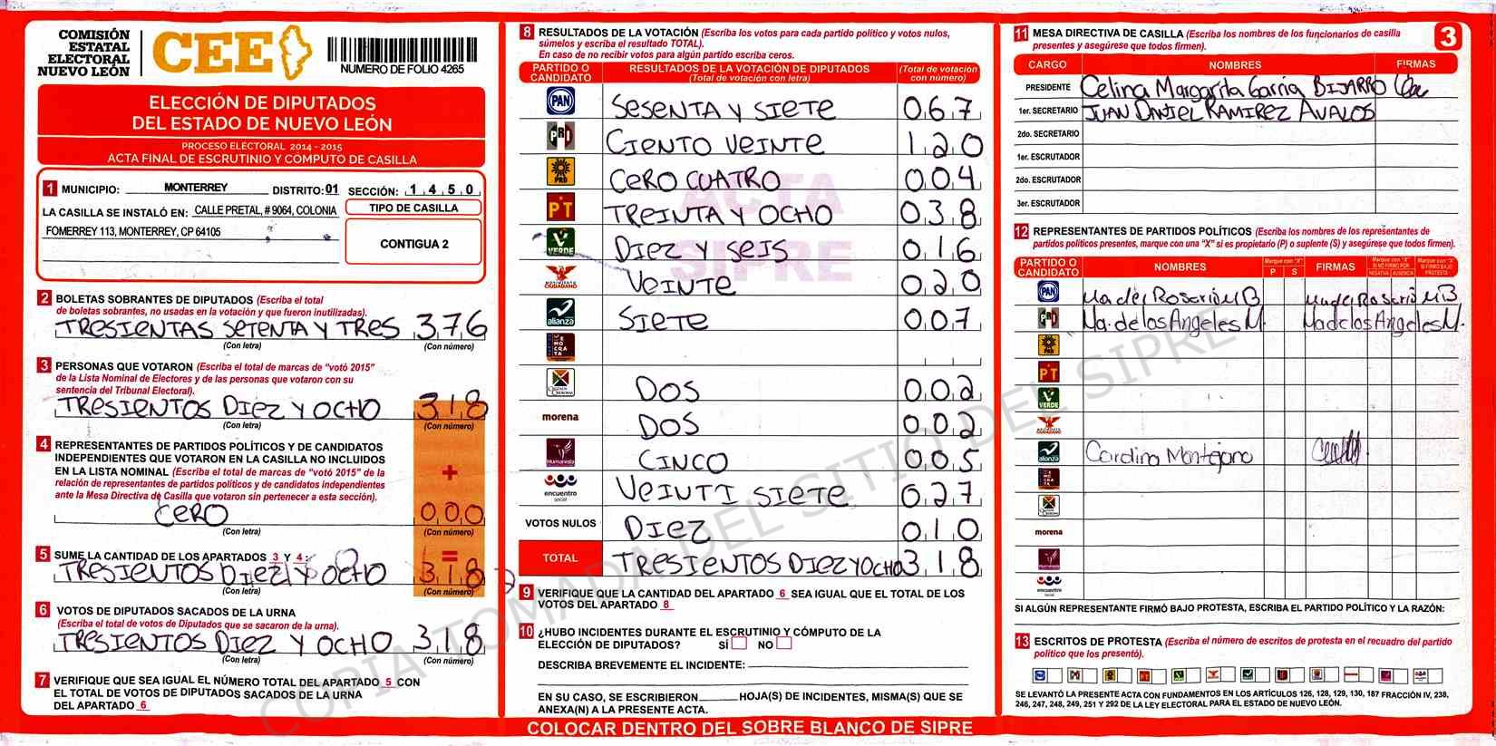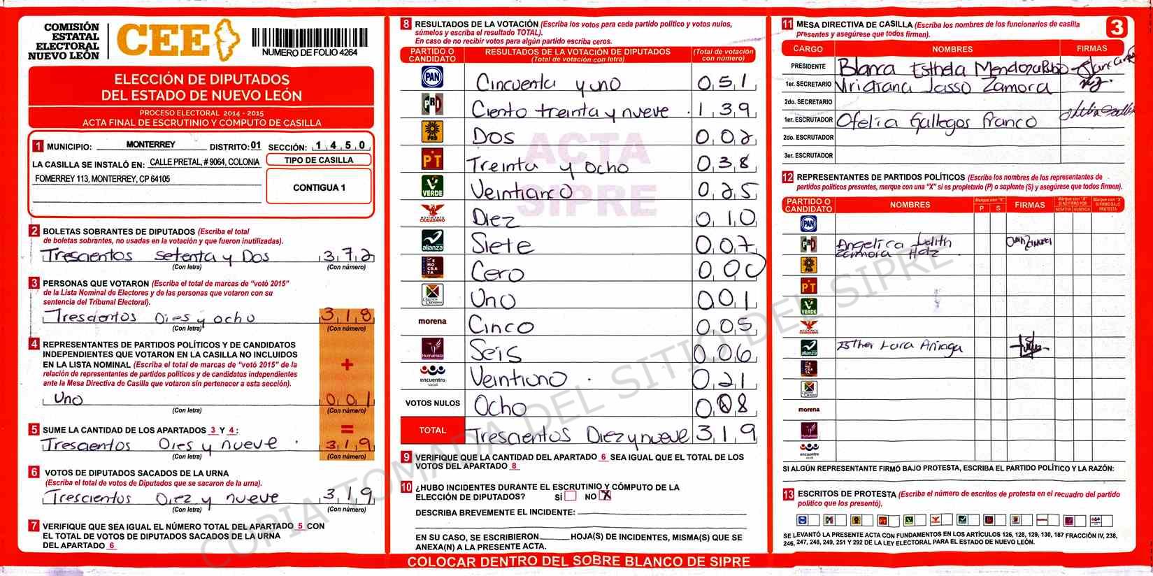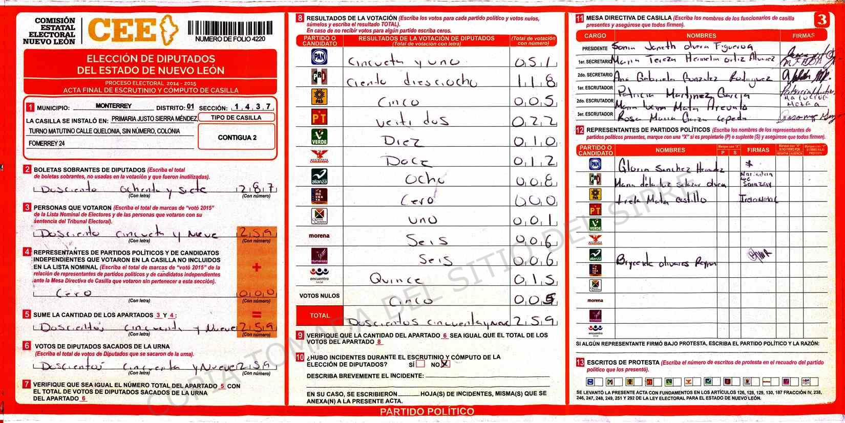 Diputados Locales, Primer Distrito |