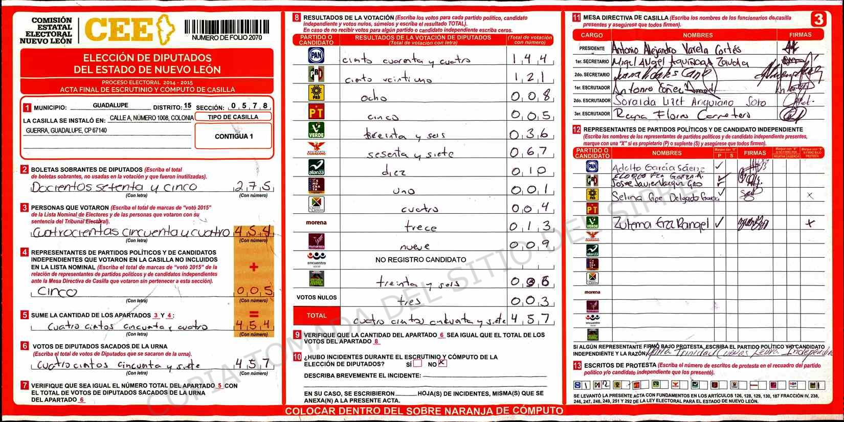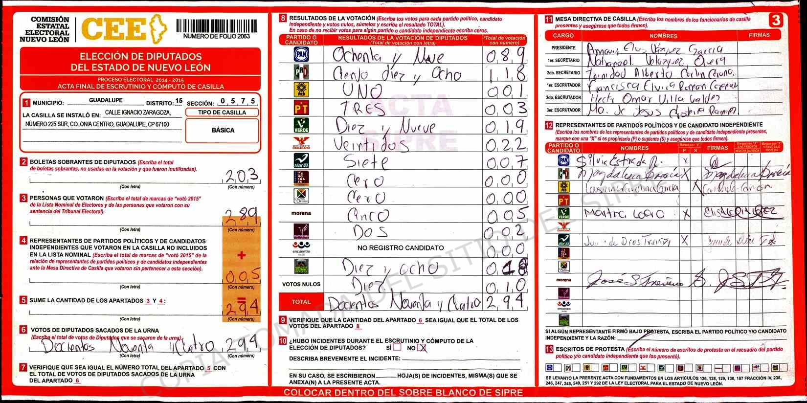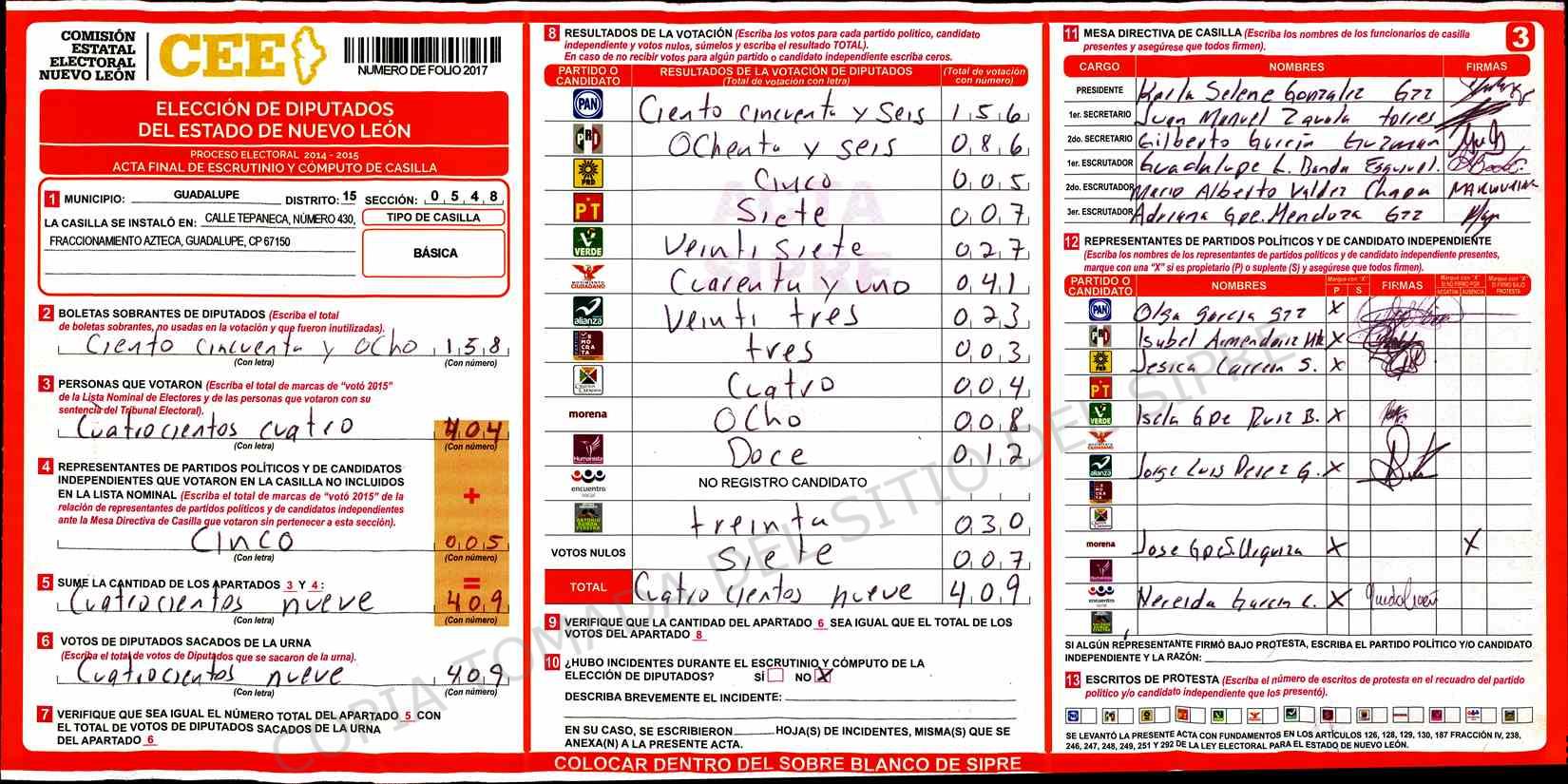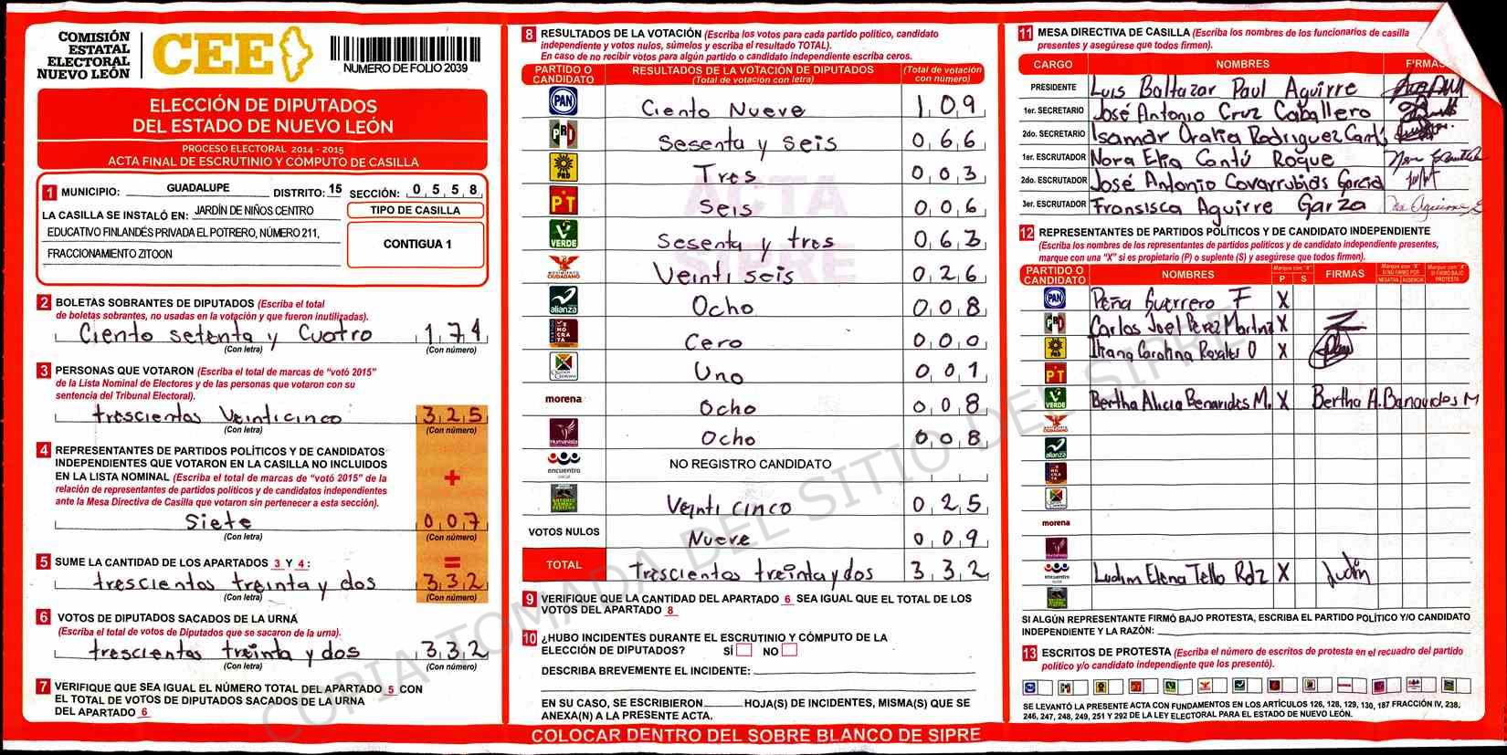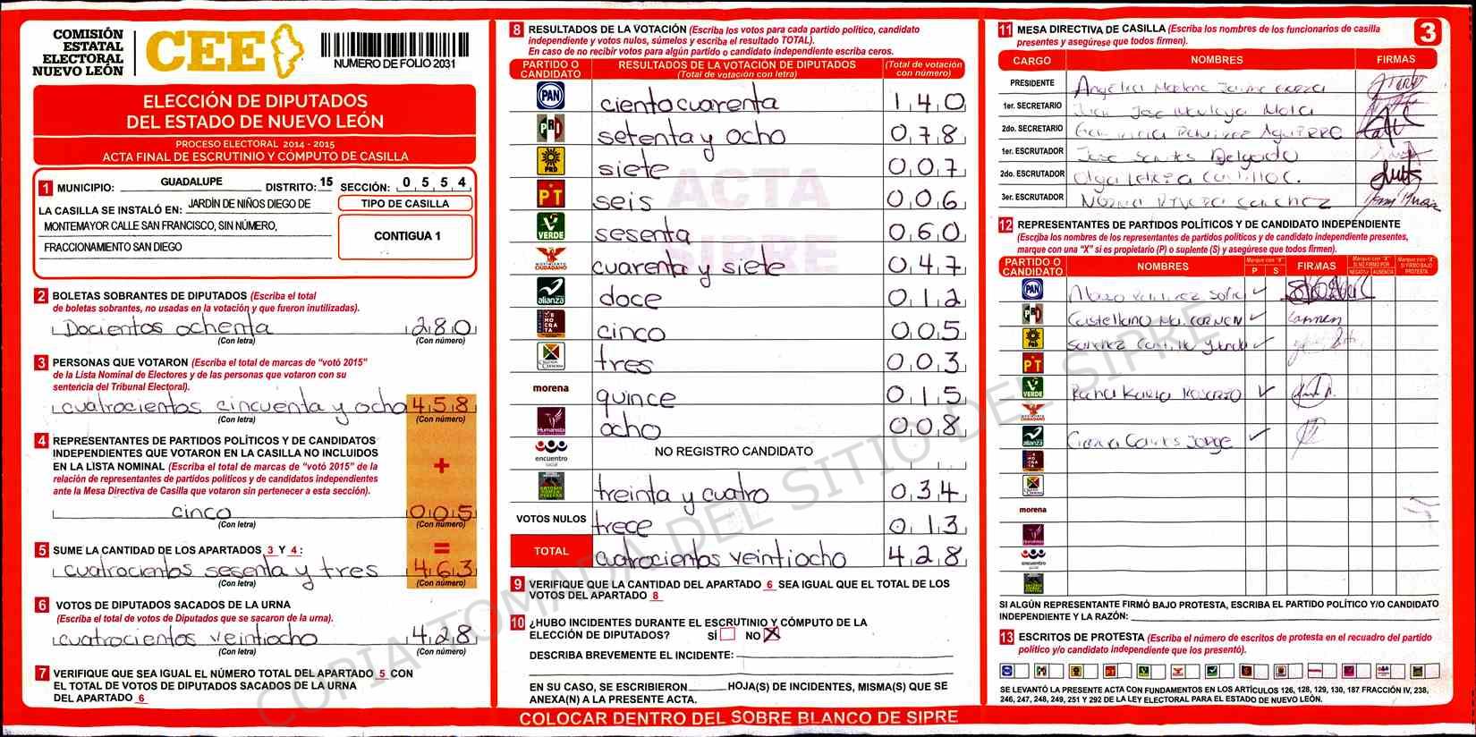 | Claves de Incidencia: | (1) Ilegible, (2) Mutilada, (3) Presenta Correcciones, (4) Presenta Borrones, (5) En Blanco, (6) Cifras Remarcadas, (7) Cifras de Mas, (8) Copiado Movido, (9) Con Signos Inválidos, (10) Excede Lista Nominal, (11) Otra |