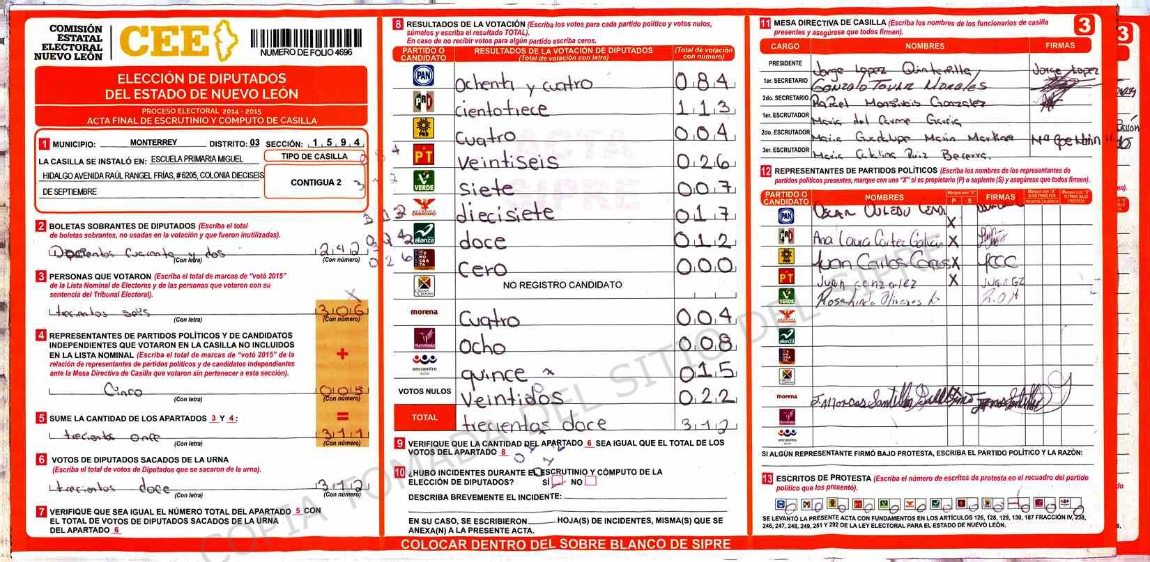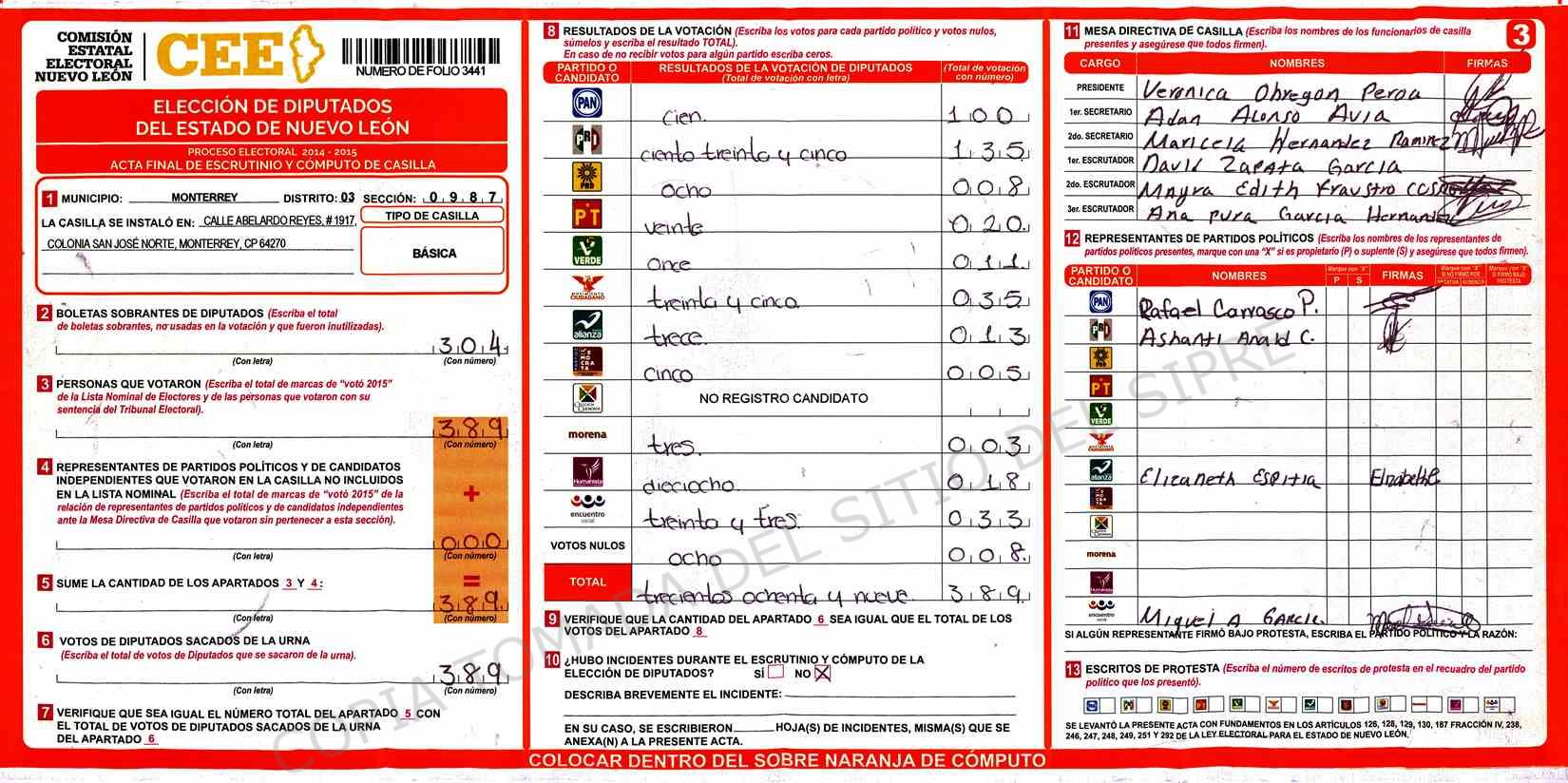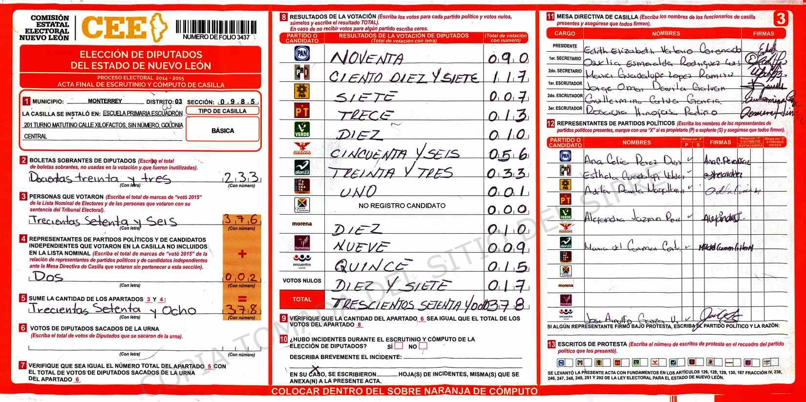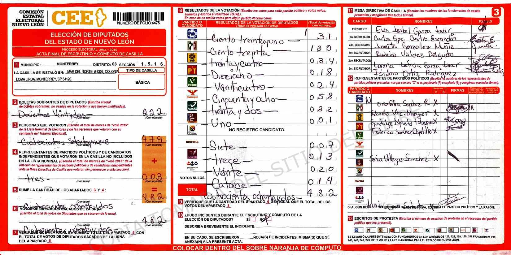 | Sección | Casilla | Hora | ![]() |