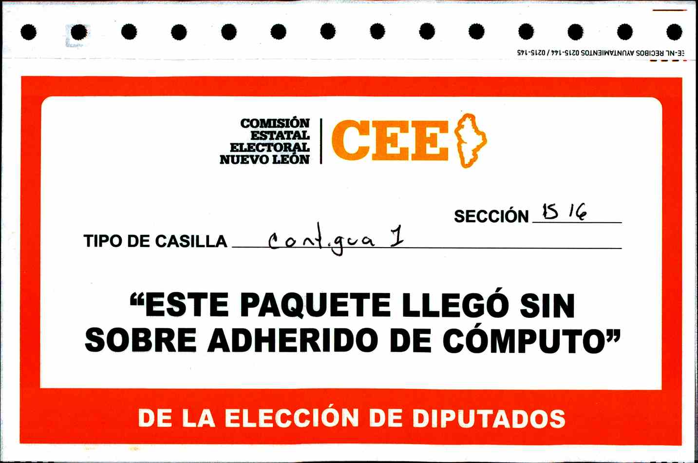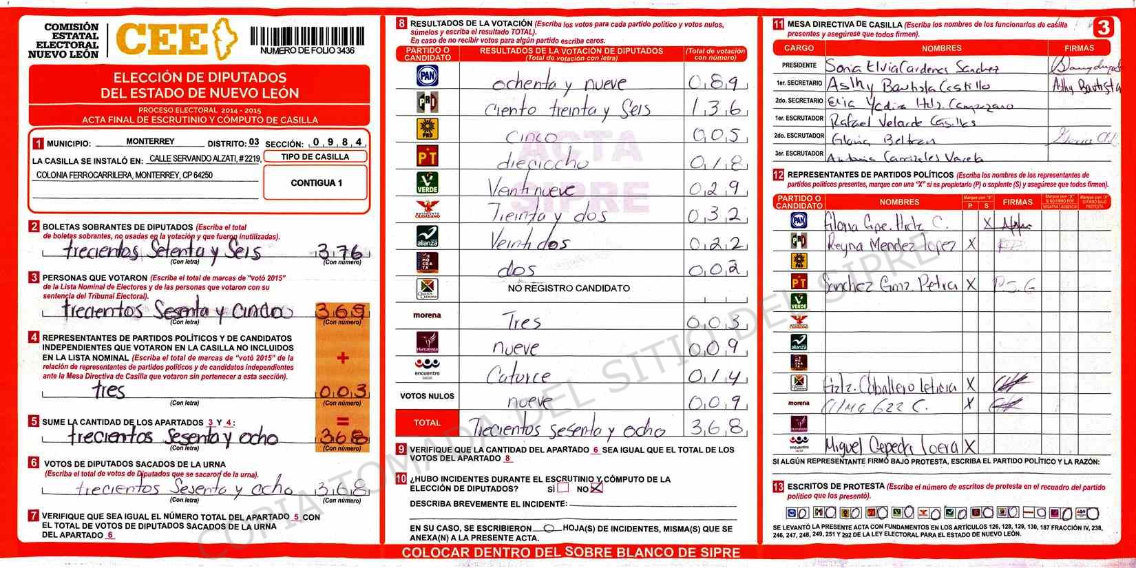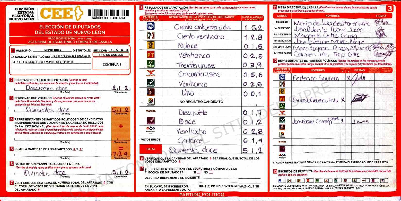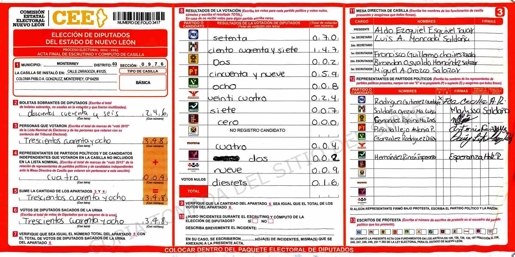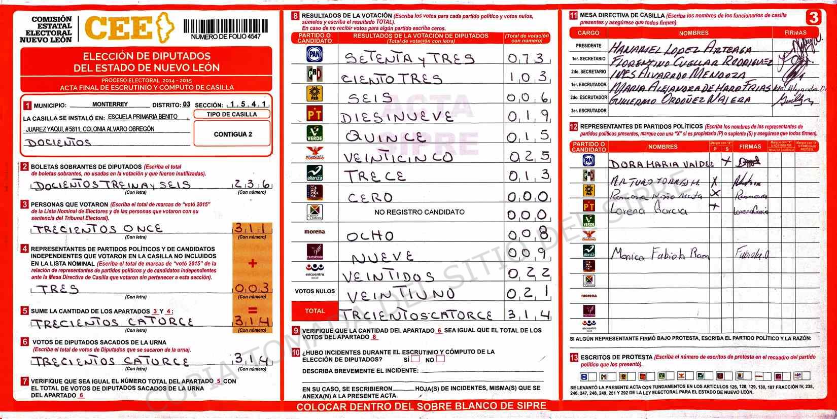| Sección | Casilla | Hora | ![]() |