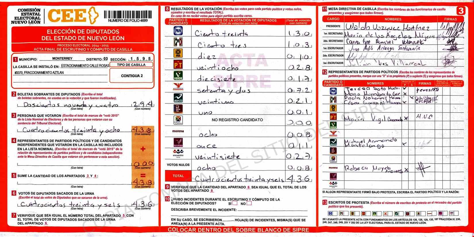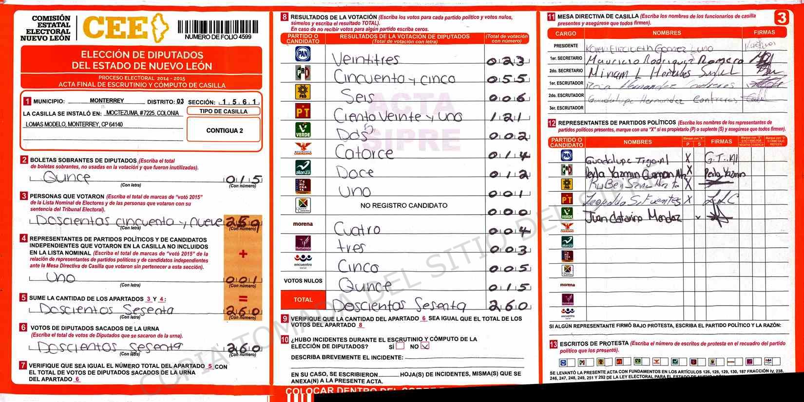 Acta con Incidencia: No hay acta |