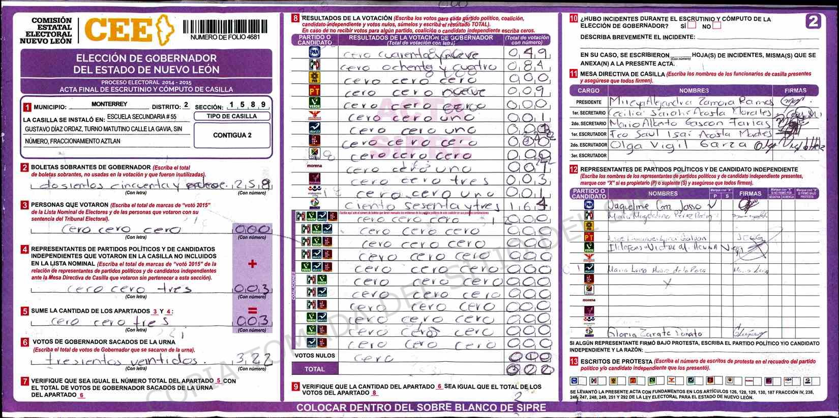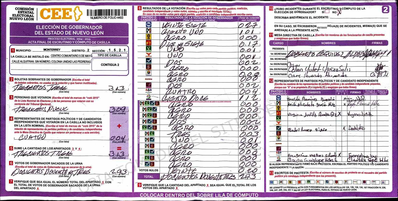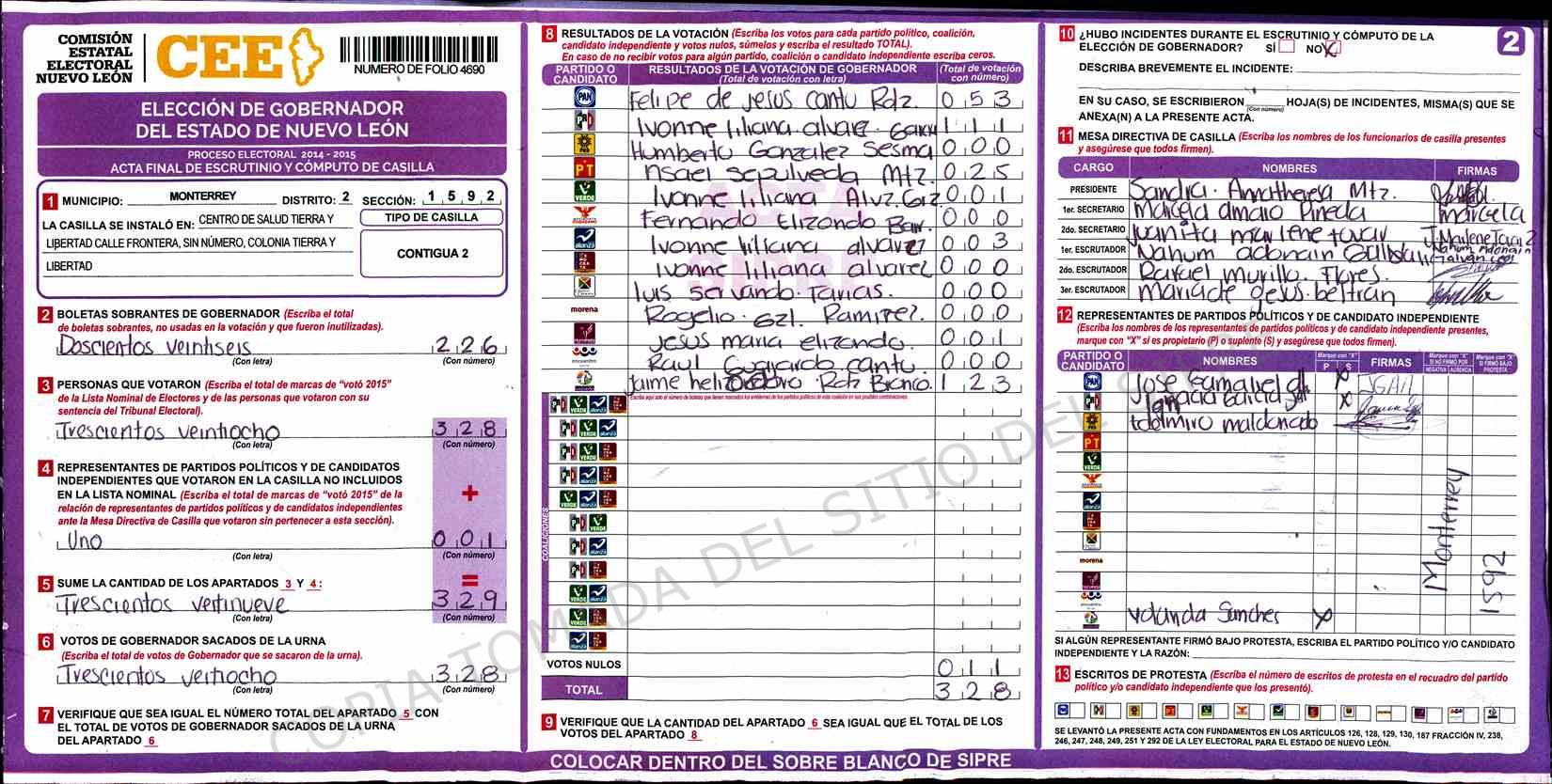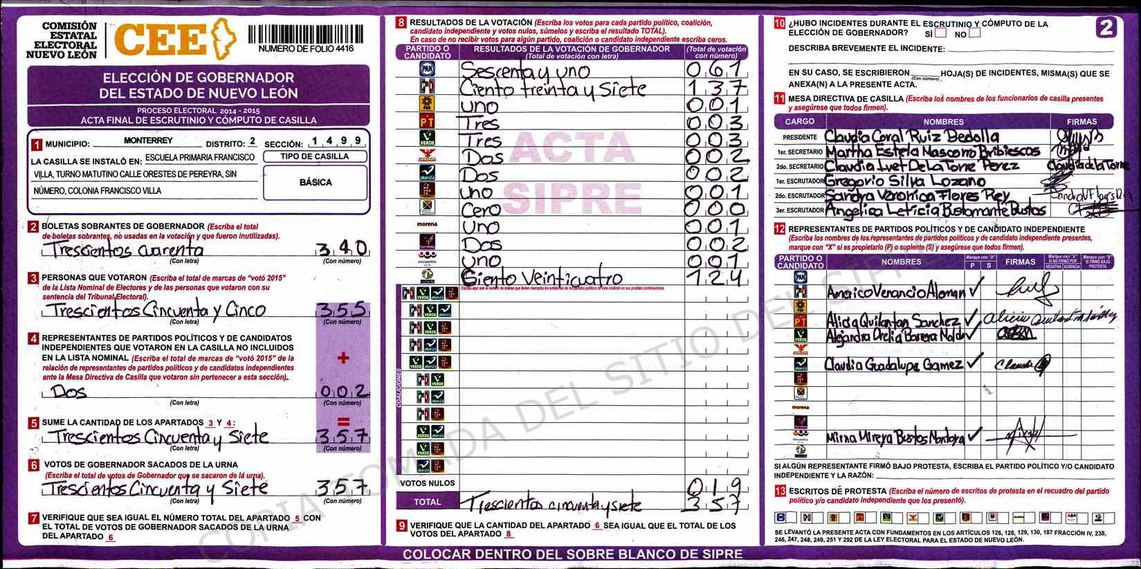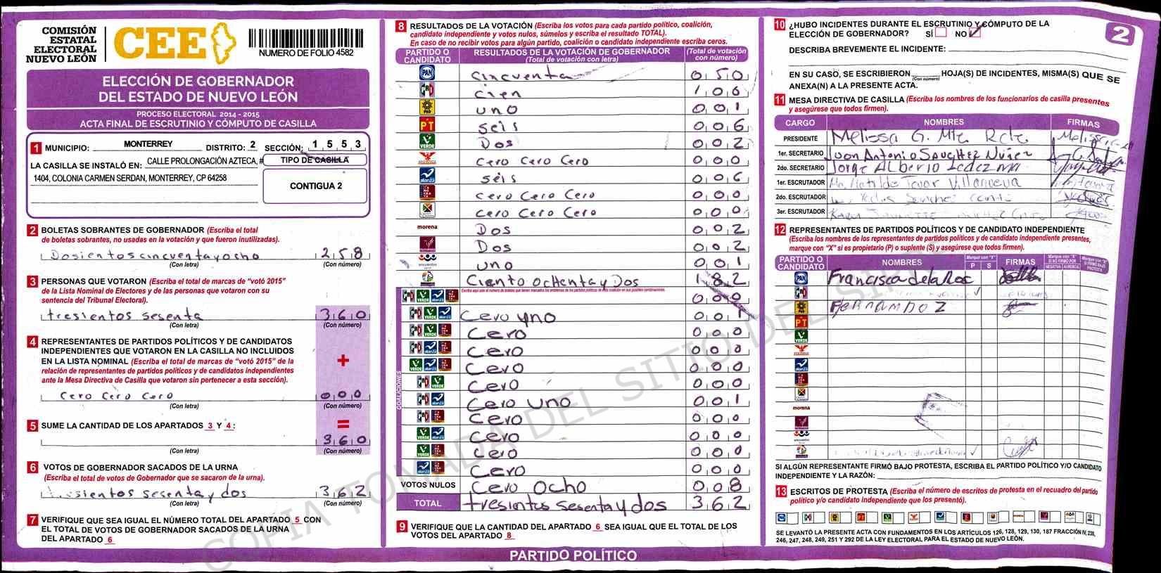 | Claves de Incidencia: | (1) Ilegible, (2) Mutilada, (3) Presenta Correcciones, (4) Presenta Borrones, (5) En Blanco, (6) Cifras Remarcadas, (7) Cifras de Mas, (8) Copiado Movido, (9) Con Signos Inválidos, (10) Excede Lista Nominal, (11) Otra |