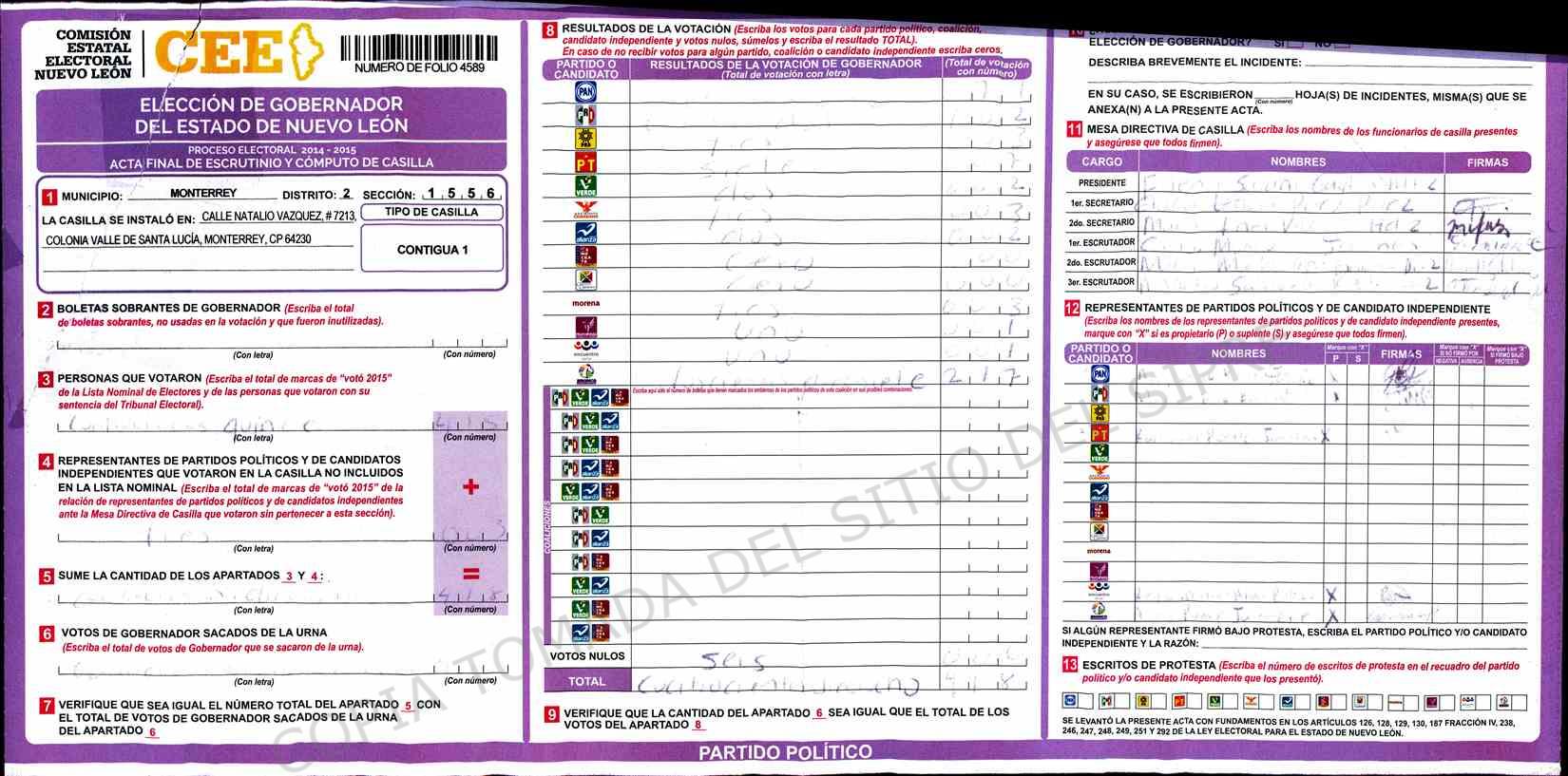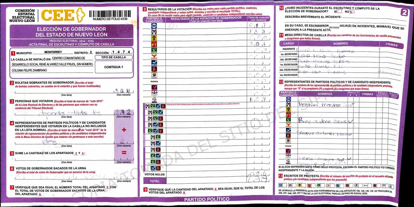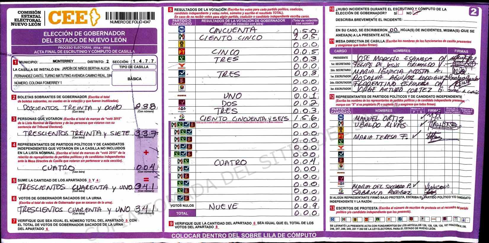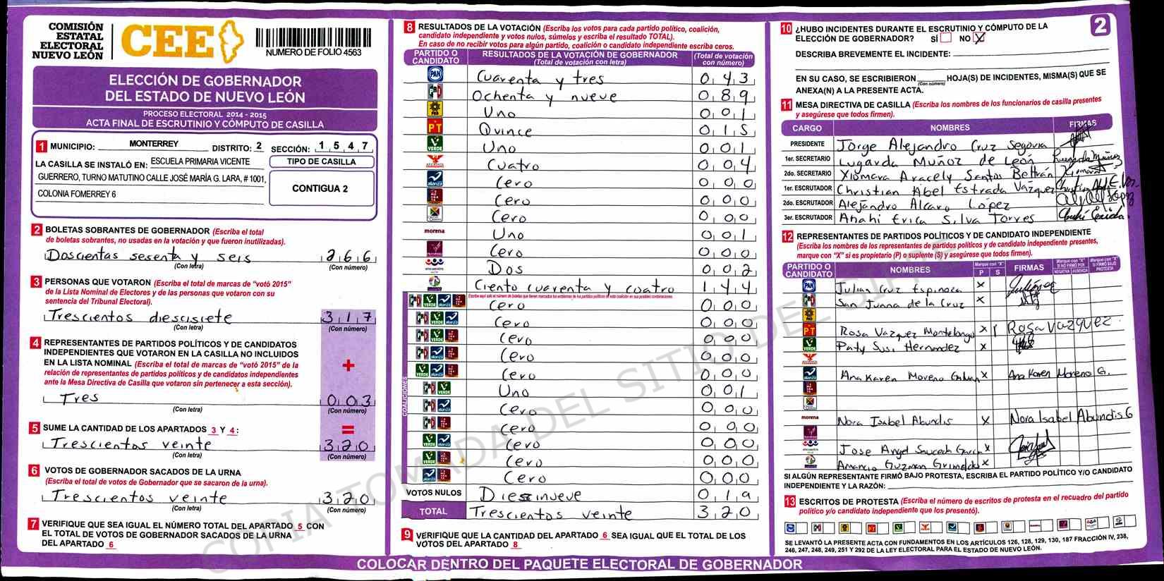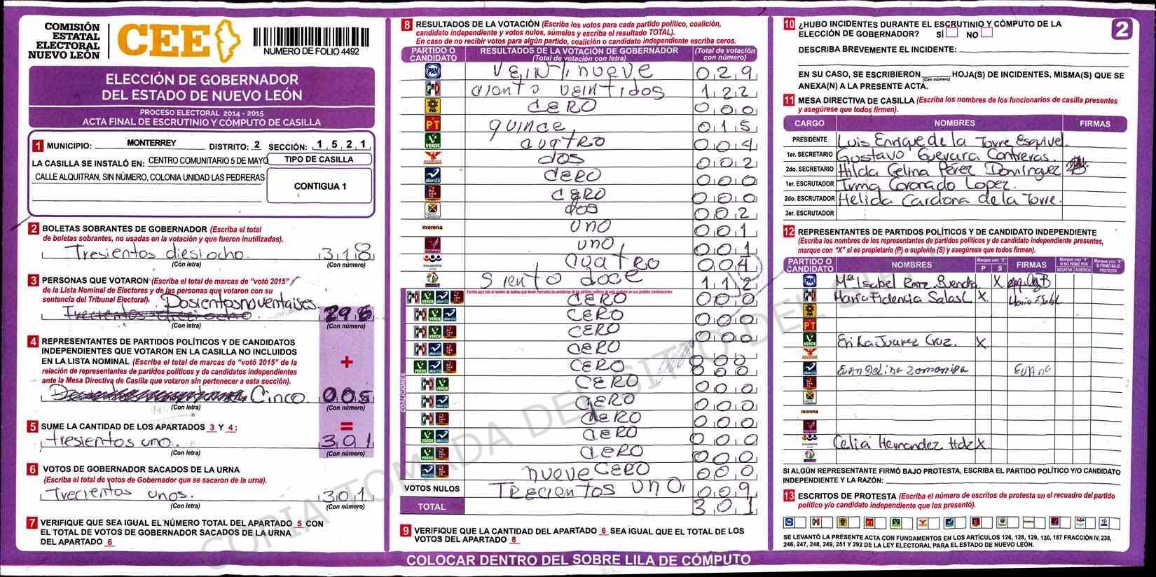 | Sección | Casilla | Hora | ![]() |