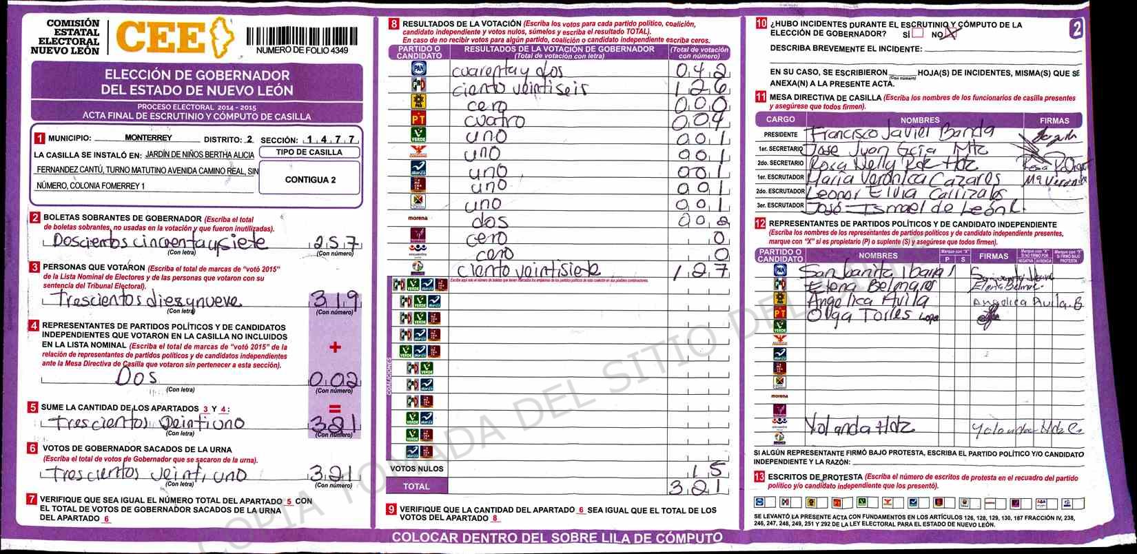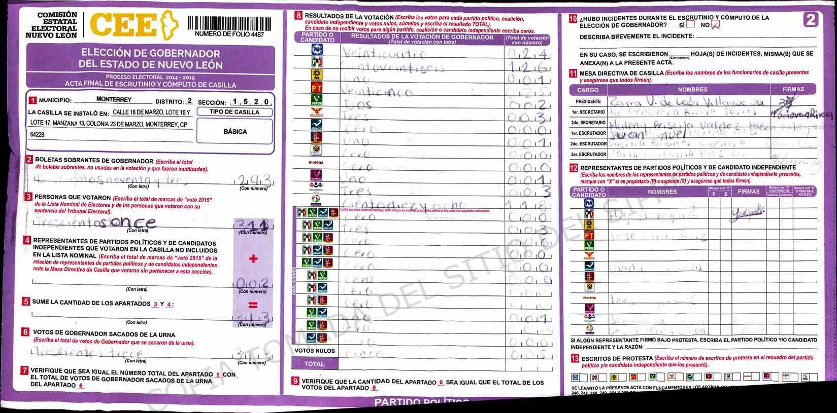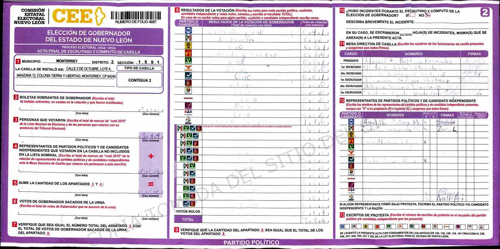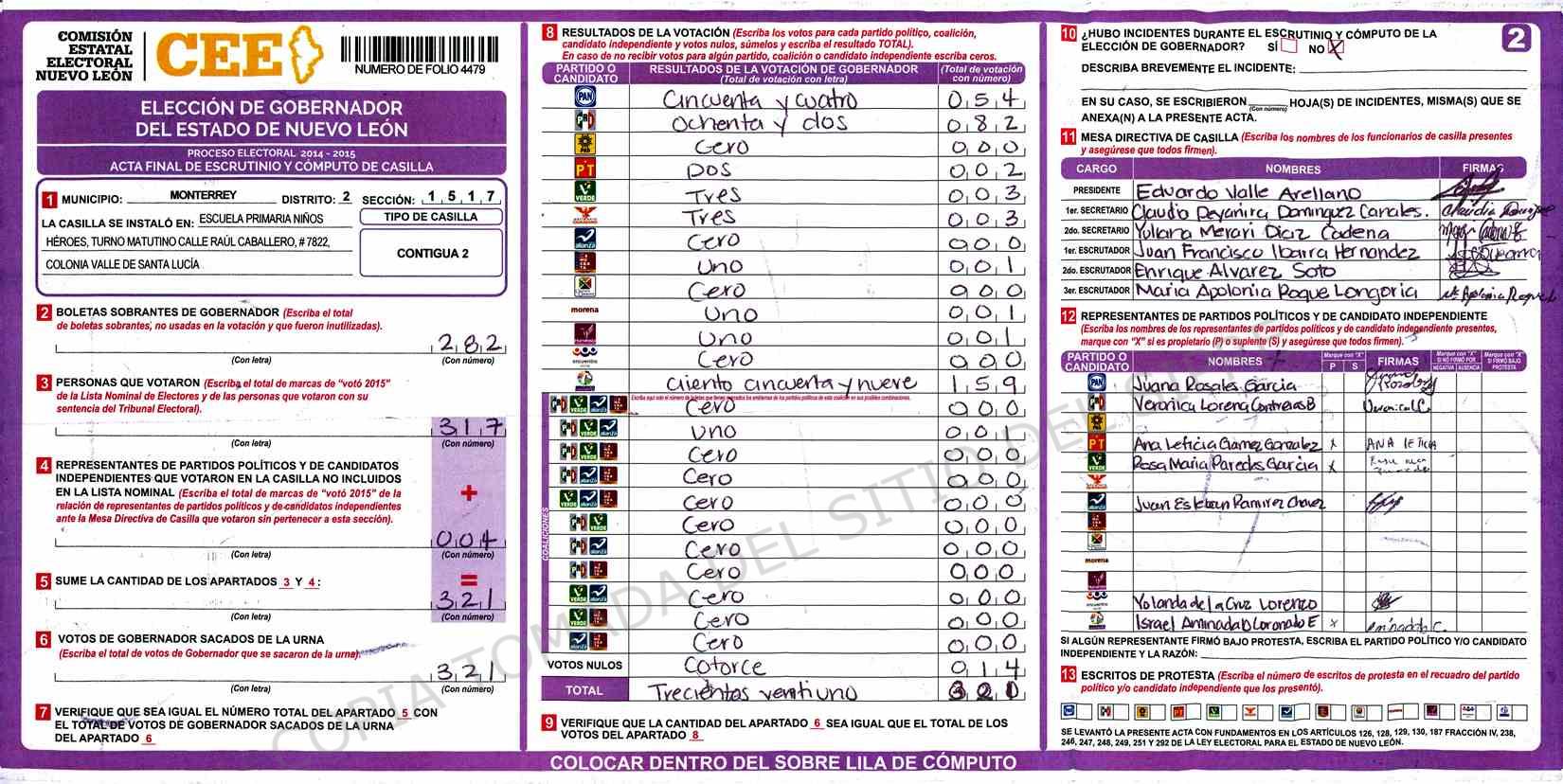 | Sección | Casilla | Hora | ![]() |