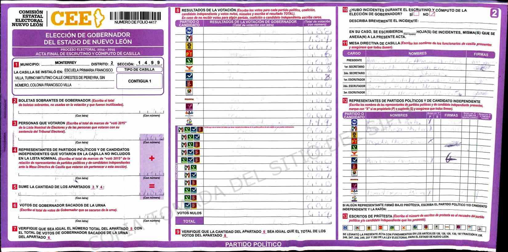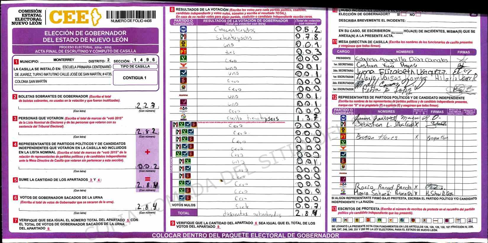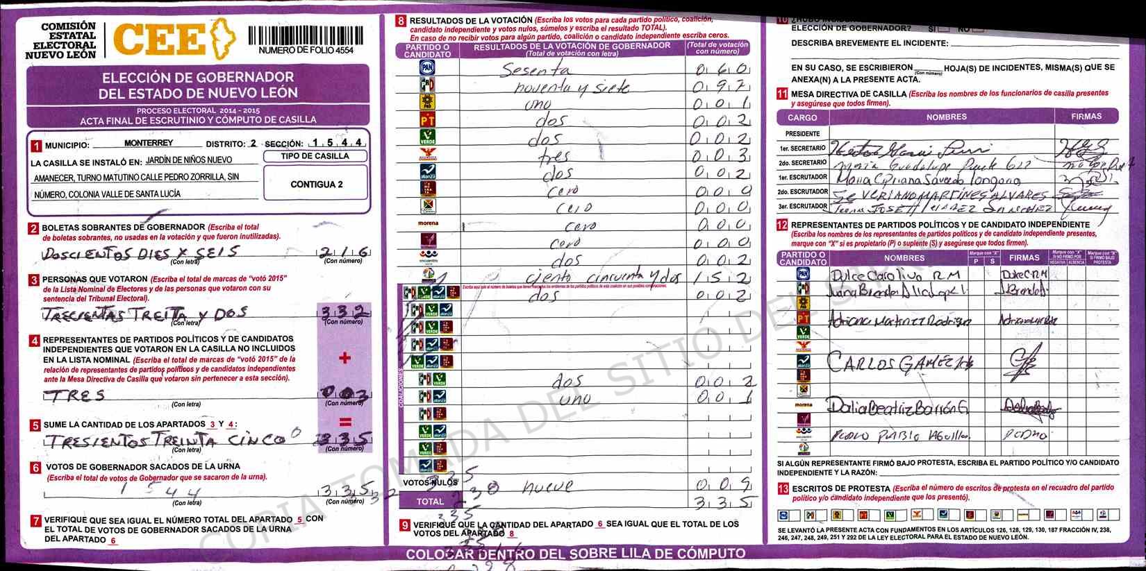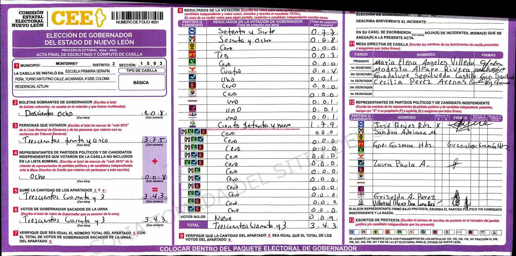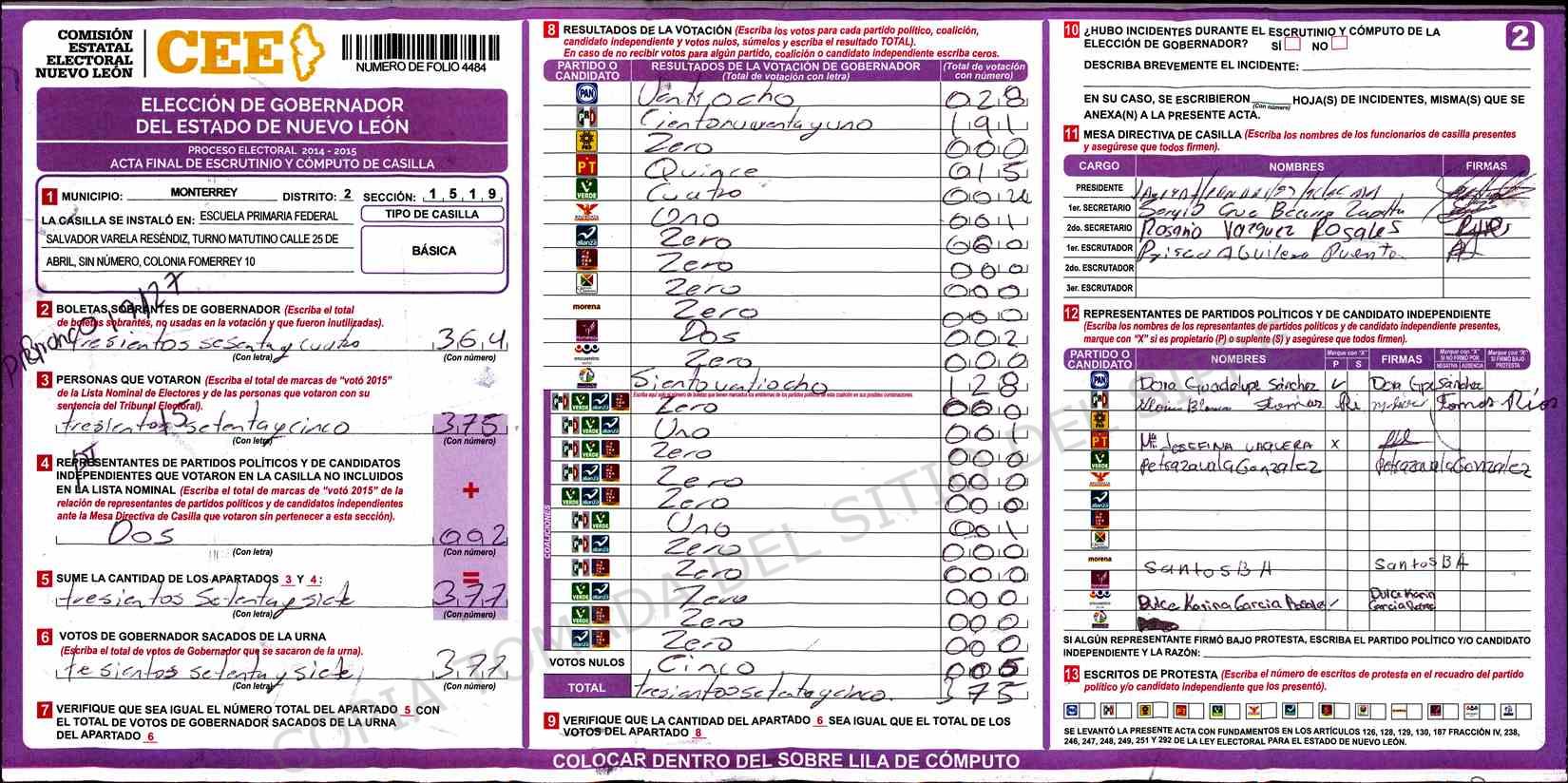 | Sección | Casilla | Hora | ![]() |