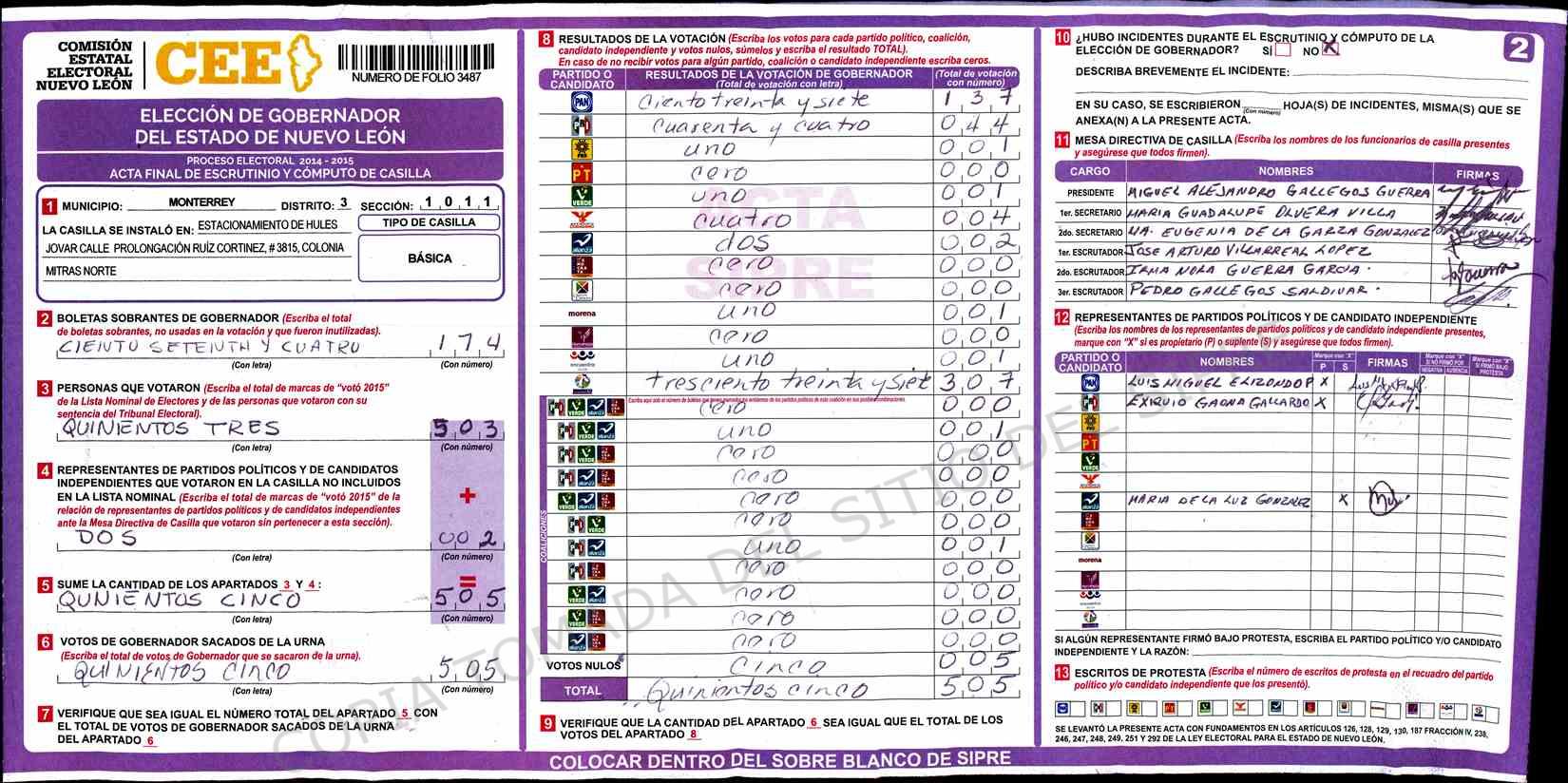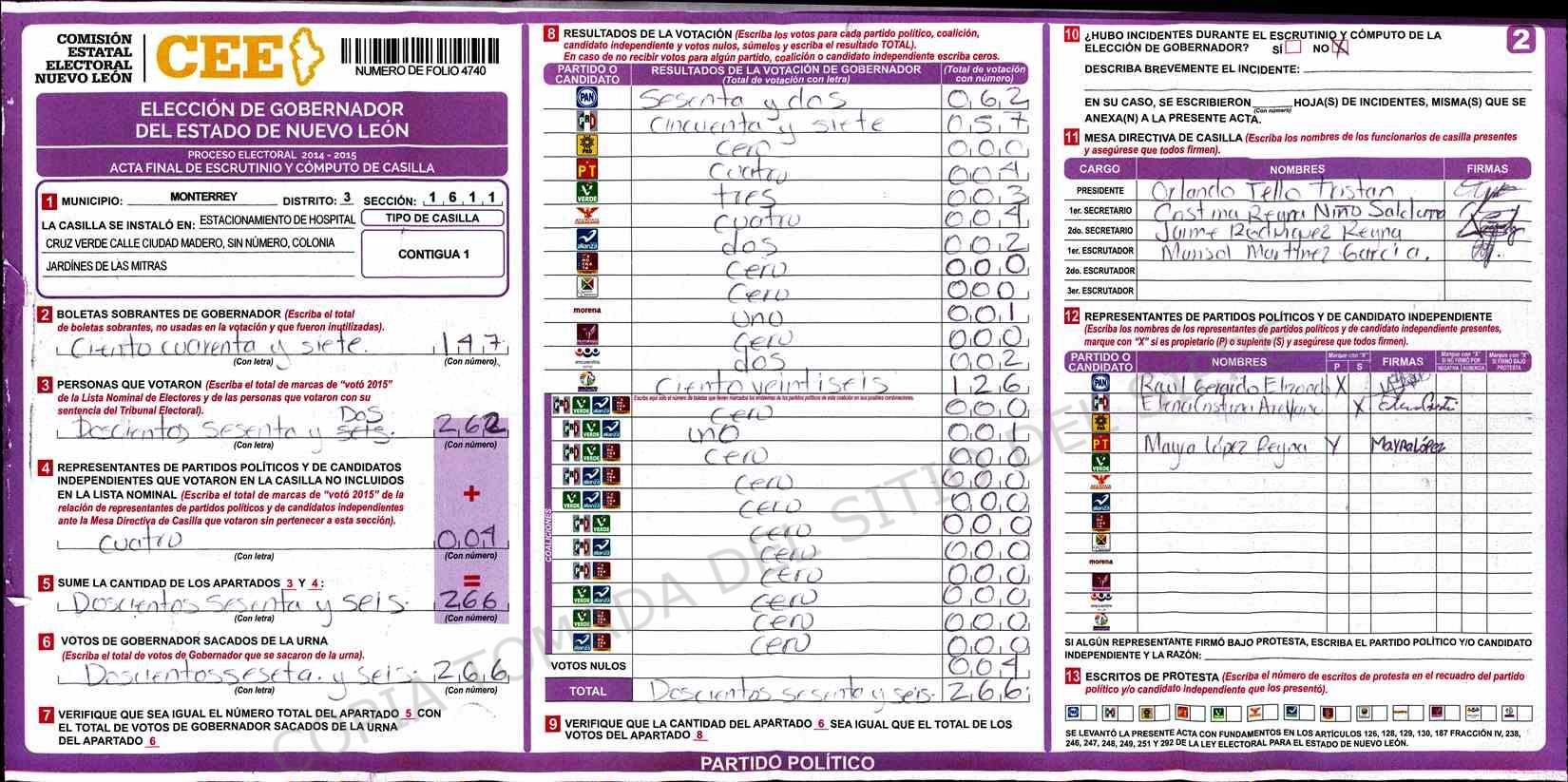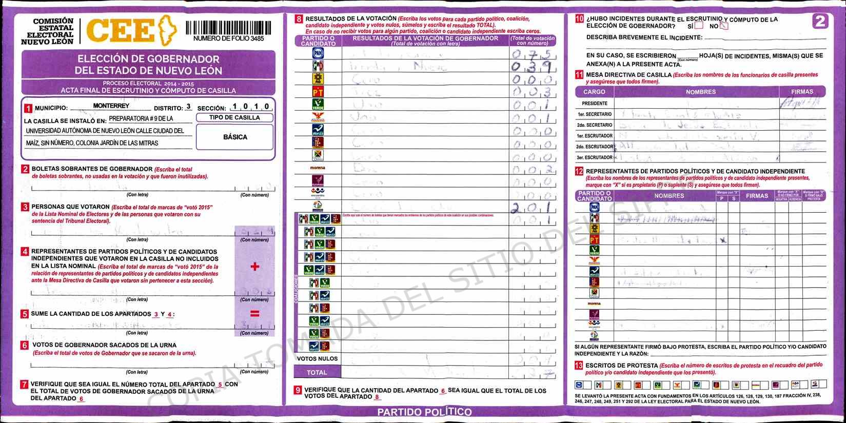 | Sección | Casilla | Hora | ![]() |