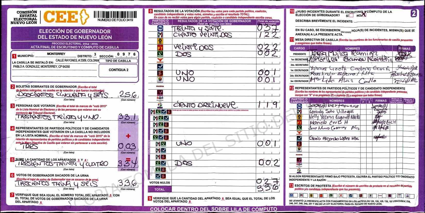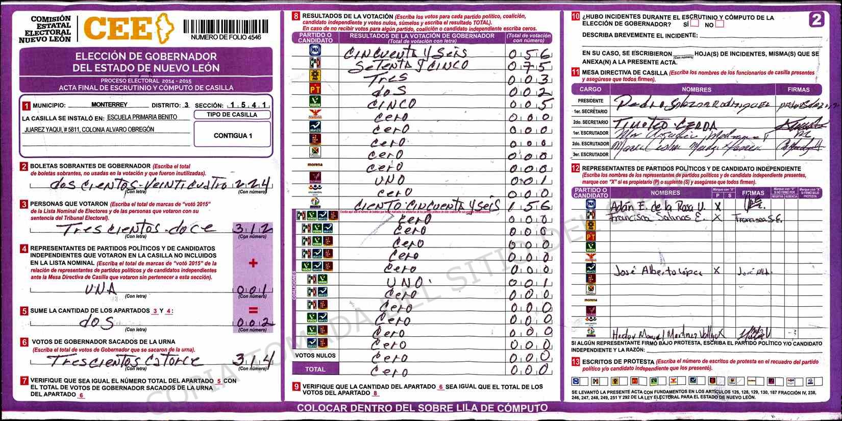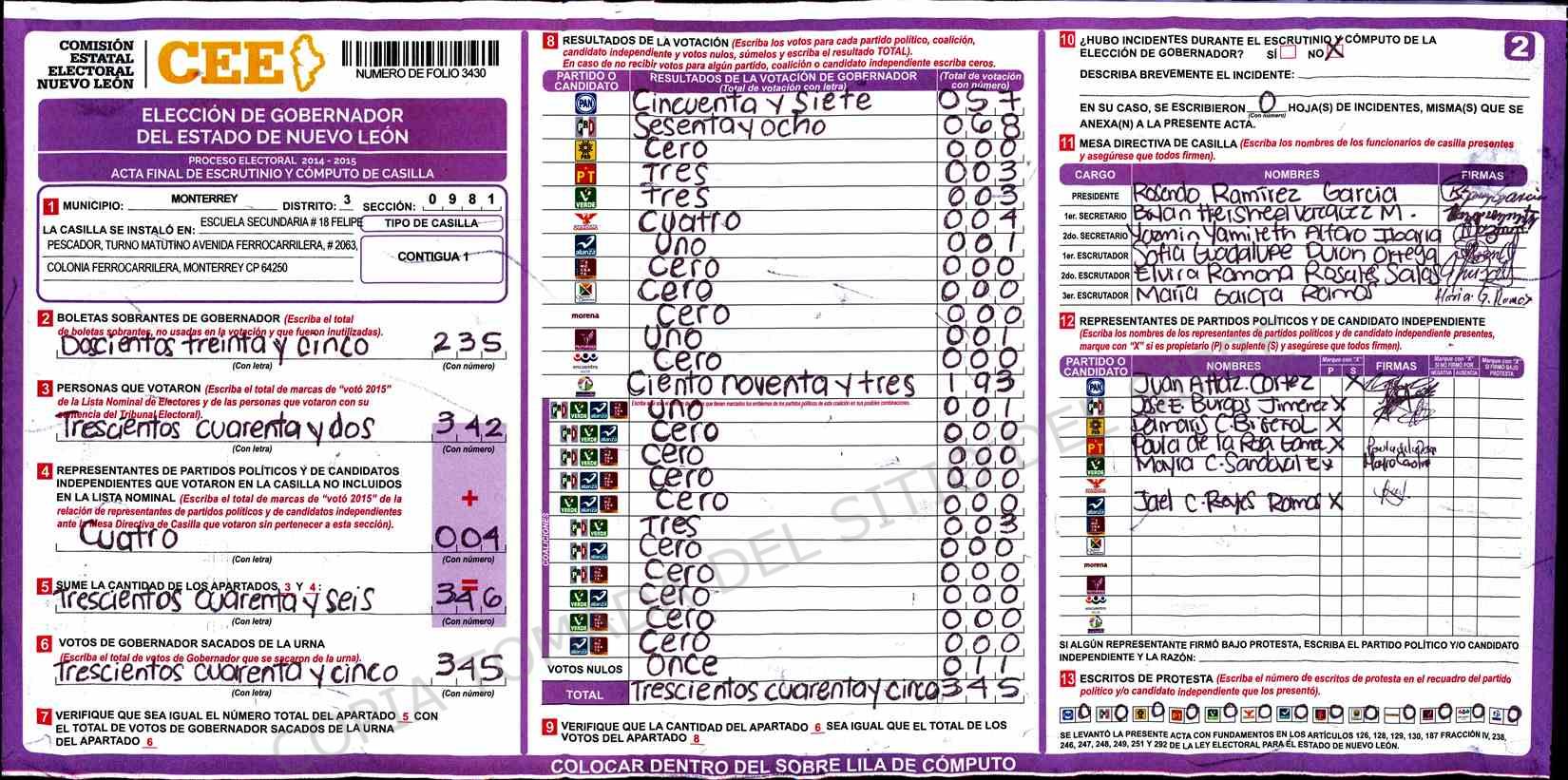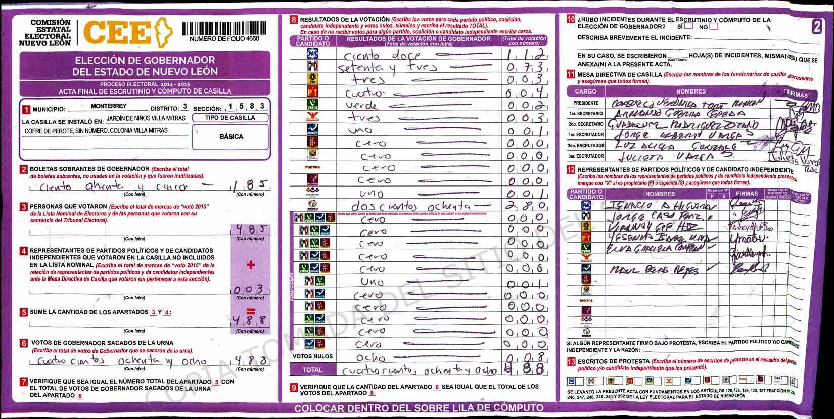 | Sección | Casilla | Hora | ![]() |