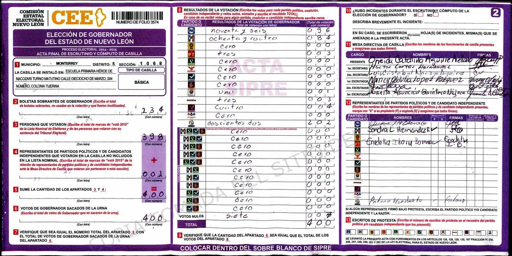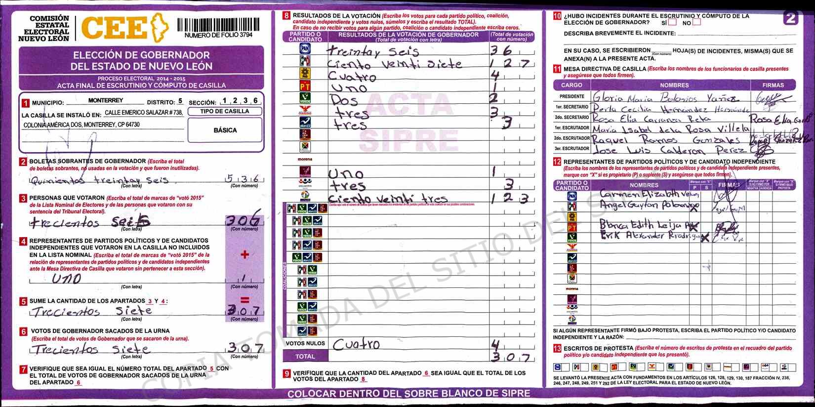 | BASICA (Mas votos de casilla 1194 Básica Fusionada)