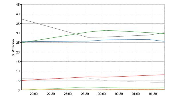 | Total de Votación | Por Candidato | Casillas | Tendencia Total de Votación | Tendencia por Candidato | TV Gráfica | TV Tendencia | Gráfica de Porcentajes |